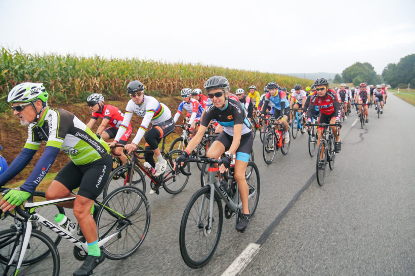 Le circuit de 60 km s’élançait quant à lui à 9h00 avec 81 engagés dans une ambiance tout aussi détendue. Les cyclistes pouvaient compter sur un service de sécurité à la hauteur de l’événement puisque la plupart des carrefours étaient protégés par des équipes de bénévoles, avec l’appui de motards habilités dans le monde des courses sur route.