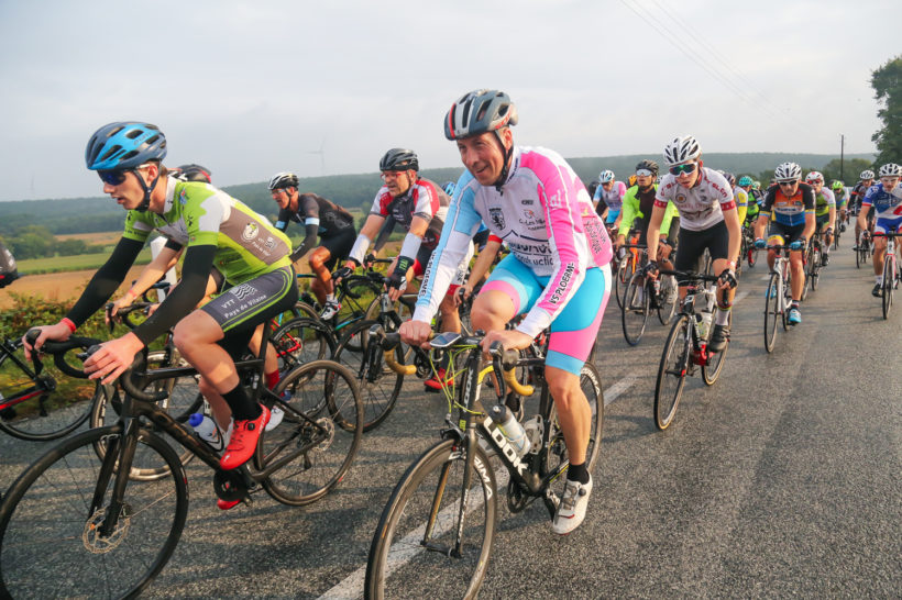 Il était donc 8h45 et le gros peloton de 244 unités était prêt pour le coup d’envoi de la grande boucle de 103 km. Après un bref discours sur le site de la Daufresne en tant que parrain de cette 15ème édition, Dorian Foulon ouvrait la route en direction de Ruffiac. Le moins que l’on puisse dire c’est que malgré cette date de fin de saison pour les amoureux de la petite reine, les conditions météorologiques auront été clémentes et l’allure était plutôt rapide pour le premier gros peloton puisque les meilleurs auront même parcourus la distance de 103 km à plus de 40 km/h de moyenne. Pourtant, ce n’était qu’une rando neutralisée à l’origine. Mais avec la présence d’un médaillé d’or olympique au cœur du peloton, a sans aucun doute transcendé la plupart des sportifs présents.