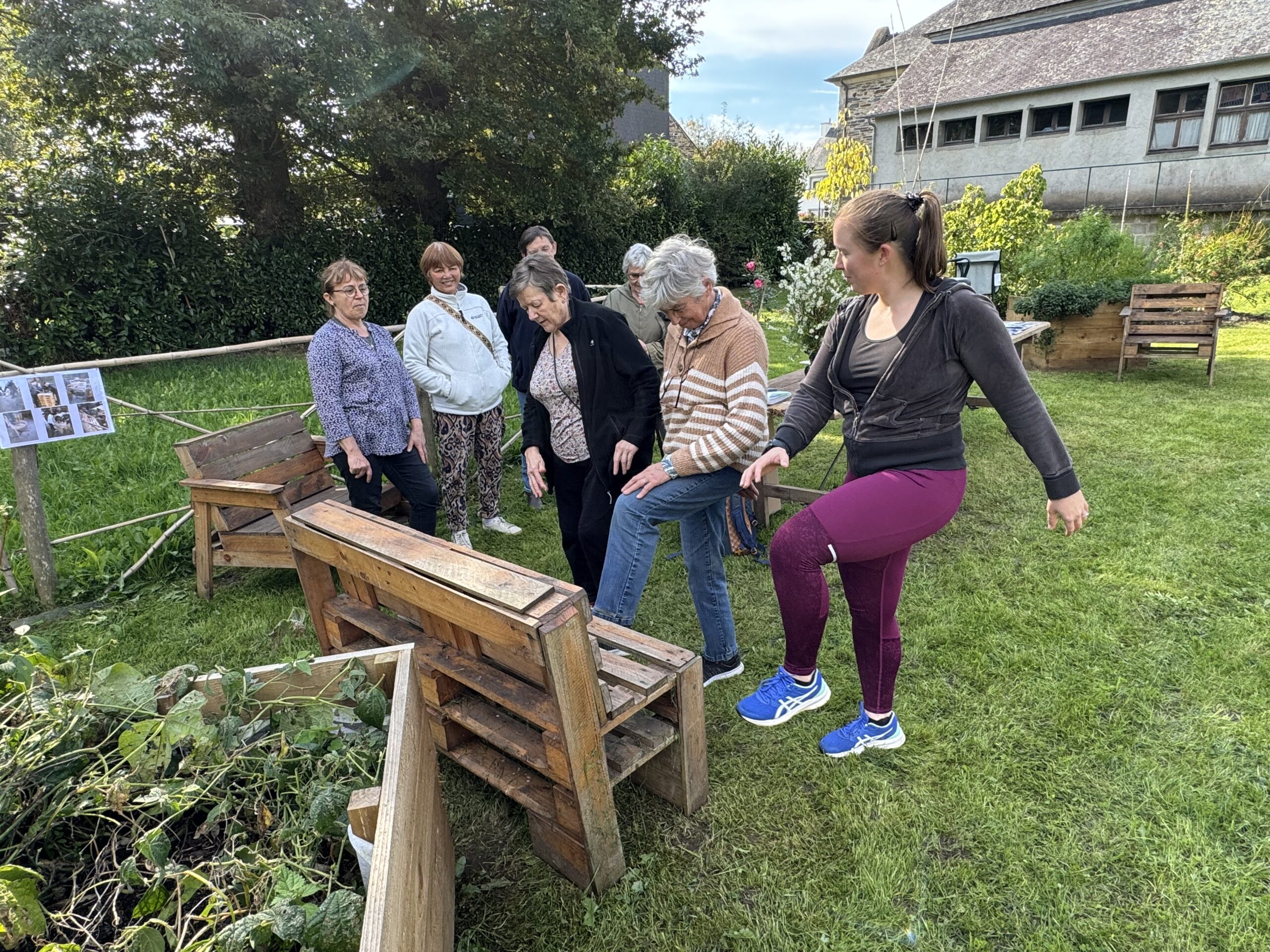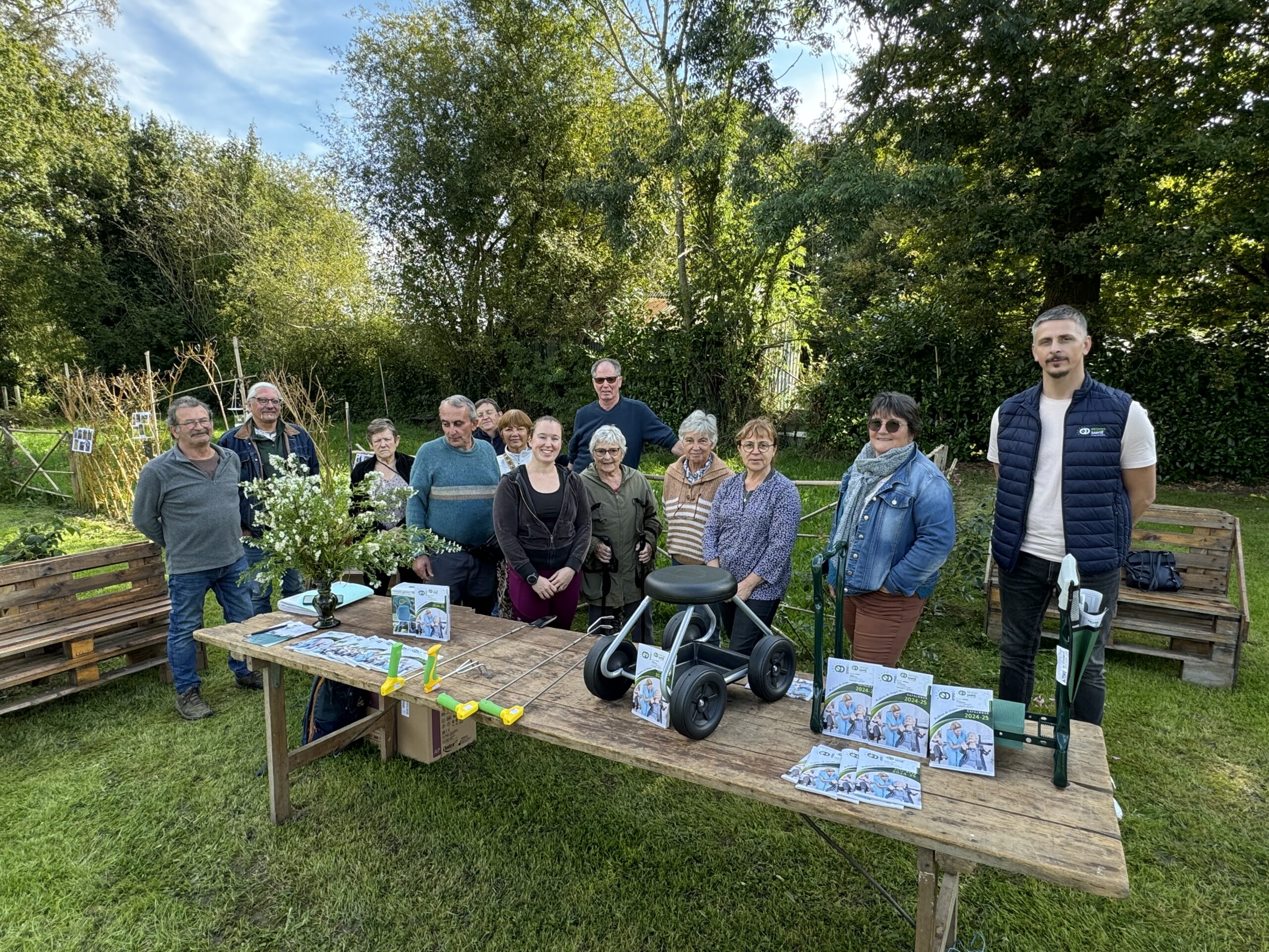 Deux intervenant(e)s extérieur(e)s participaient à cette animation. Louise Carro est enseignante spécialisée en activités physiques adaptées au sein de son entreprise « Apa de lou » de Beignon. Elle intervient déjà chaque vendredi matin à l’espace socio culturel de Saint-Martin sur Oust pour les personnes âgées de plus de 60 ans. Vendredi après-midi, elle a expliqué que les conseils qu’on donne en général pour la pratique d’un sport s’applique aussi au jardinage. « Il est très important avant de jardiner de renforcer ses muscles, de s’échauffer », indique-t-elle. Quelle posture adopter, comment se relever, conserver l’équilibre… La dizaine de participants à l’animation de vendredi ont pu pratiquer divers exercices pratiques avec ses conseils éclairés. Mais parfois, il peut aussi être utile d’avoir recours à du matériel pour se faciliter la tache. C’est ce qu’était venu présenter le représentant de Redon Santé, un magasin spécialisé dans le matériel médical parmi lequel on ne s’attend pas forcément à trouver des outils de jardinage aux manches allongés -pour éviter de se baisser- et ergonomiques -pour faciliter la prise en main ou bien encore des petits bancs modulables pour s’agenouiller ou s’assoir…