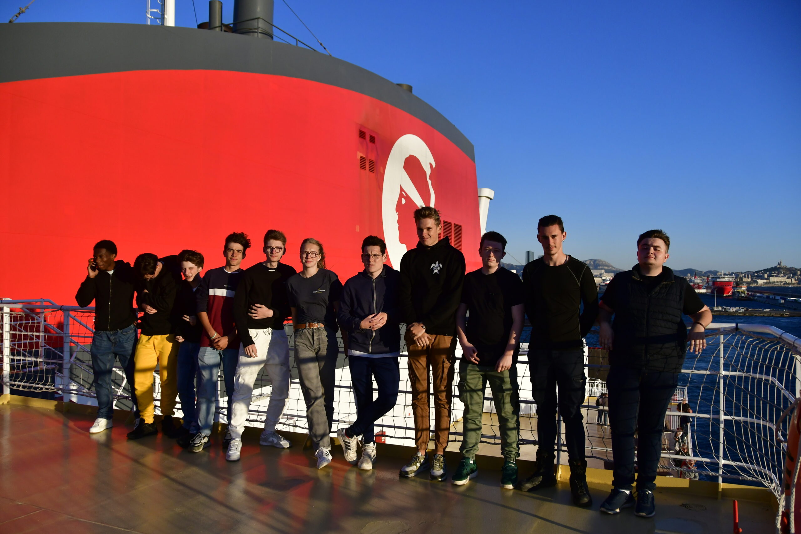 Le lendemain nous somme repartis direction Aubenas avec la première difficulté, la descente du col de la Chavade avant Aubenas (10km de descente à 10%). Nous avons livré 10 palettes de gâteaux chargées le lundi aux Pâtisseries Gourmandes à Loudéac (22) à la banque alimentaire d’Avignon vers 12h30. Deuxième livraison à la banque alimentaire de Marseille de 8 palettes de gâteaux et rechargement sur places de 16 palettes de poids chiche dans 2 camions pour la banque alimentaire de Pacé (35) notre donneur d’ordre. Déchargement, chargement et lettres de voitures effectués par nos élèves. Nous avons ensuite rejoint le port de Marseille pour embarquer direction Bastia.
