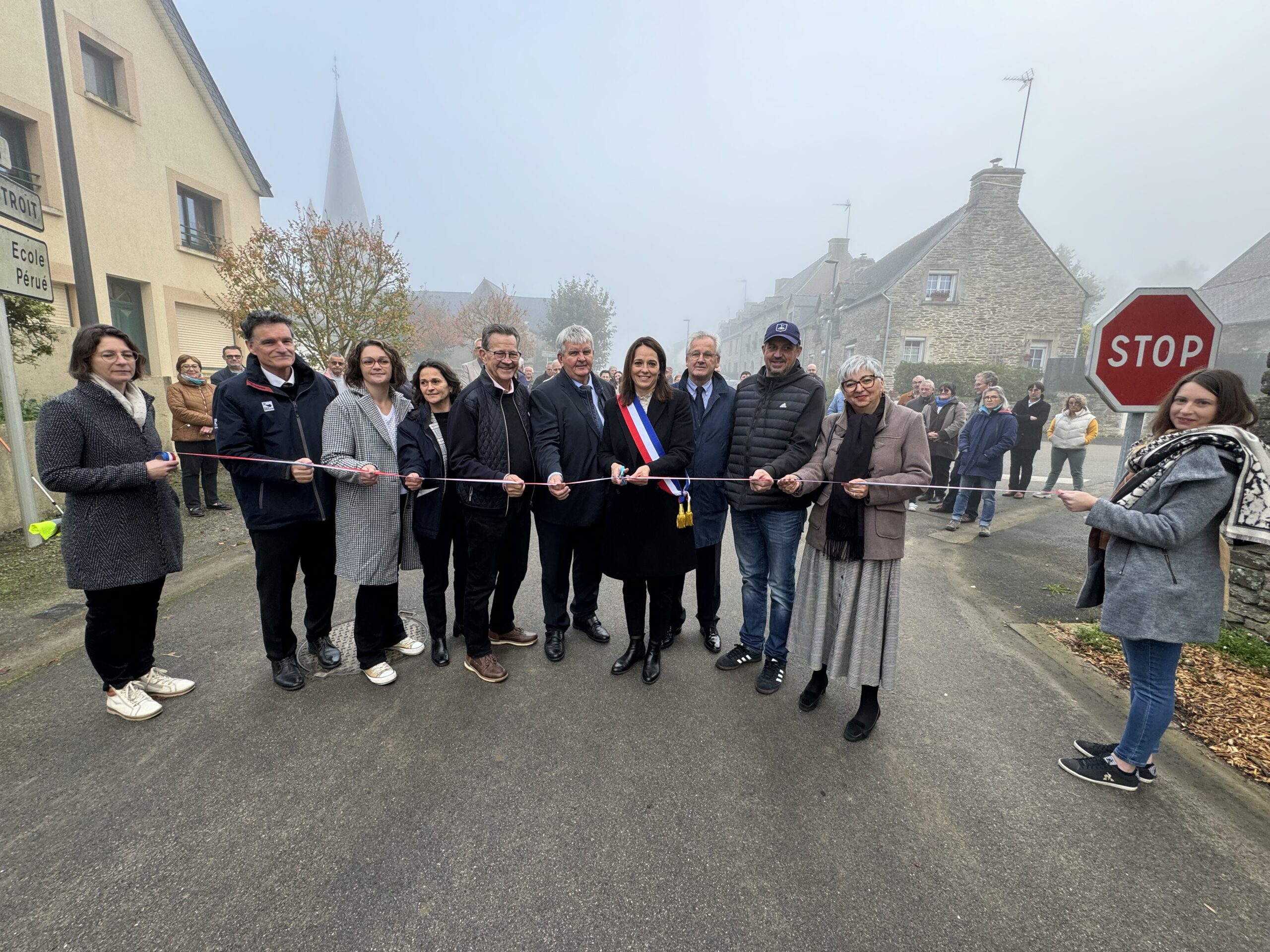 Les toilettes publiques de Saint-Abraham qui ont fait couleur beaucoup d’encre après avoir été épinglées par le Canard Enchainé sont enfin inaugurées. Mais pas seulement car ce samedi matin ce ne sont pas moins de 4 équipements qui ont été inaugurés en une seule matinée… C’est le marathon -tranquille- auquel se sont livrés de bonne grâce derrière leur maire, Gaëlle stricot, les habitants et les invité(e)s de la municipalité parmi lesquels un sénateur, Yves Bleunven, une sénatrice récemment nommée présidente de la commission des lois à l’Assemblée nationale, également conseillère départementale Murielle Jourda, un député, une conseillère départementale, Rozenn Guégan ou bien encore le président de l’OBC, Jean-Luc Bléher et des habitant(e)s.