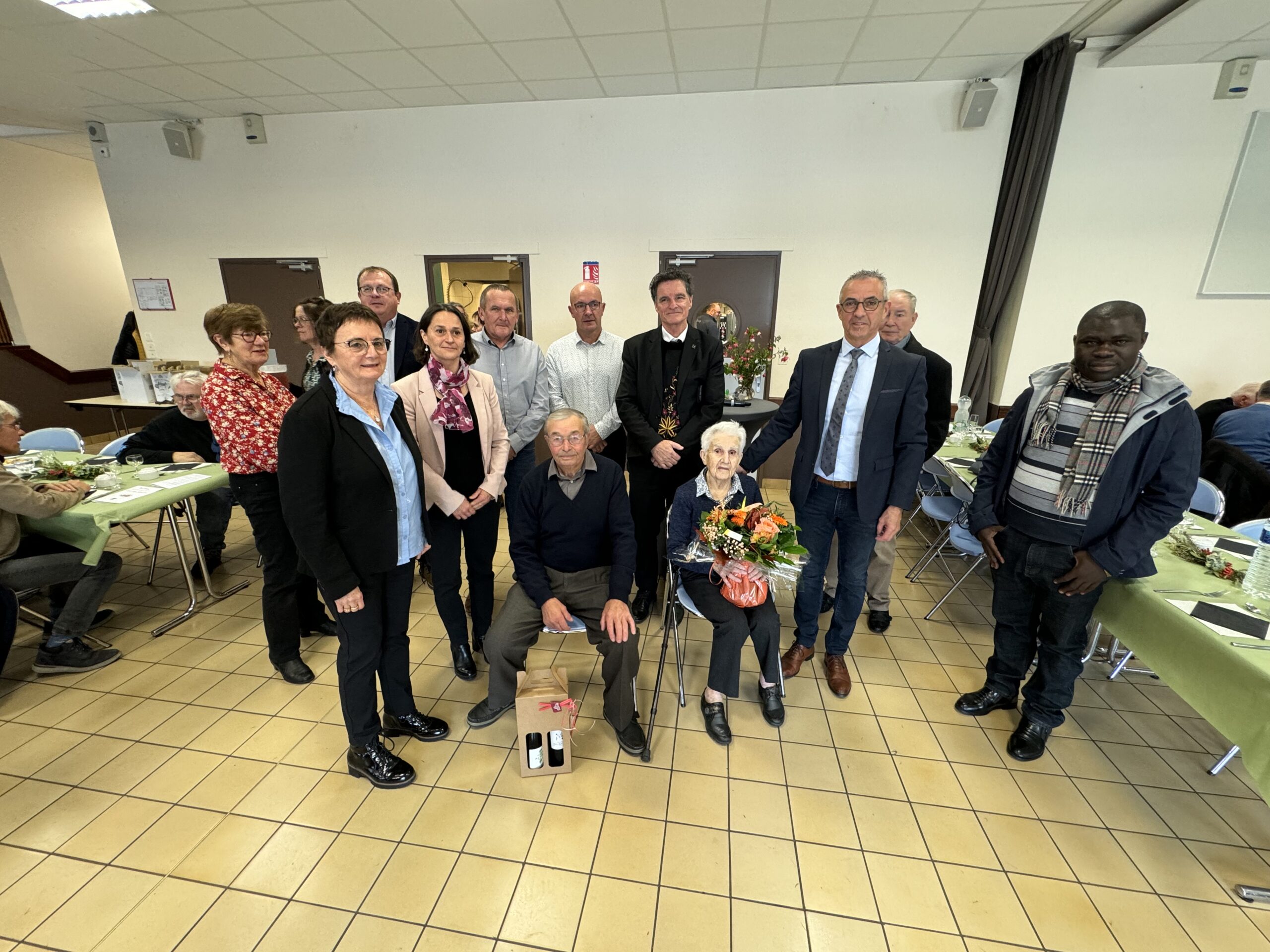 Le repas des aînés de Ruffiac a rassemblé 178 convives, ce dimanche à la salle polyvalente de la commune dans une ambiance très chaleureuse. Le député Paul Molac et la conseillère départementale Rozenn Guégan étaient aux côtés du maire Thierry Gué pour accueillir ces invités dont deux ont été particulièrement mis à l’honneur, Simone Pondard, 98 ans, la doyenne de l’assemblée et Pierre Rolland, 91 ans, le doyen. Le doyen de la commune Antoine Rubaud, 96 ans n’avait pas pu faire le déplacement. Dans son intervention, le maire a fait le point sur les différents projets de la commune (voir en cliquant ici) et notamment l’arrivée d’un nouveau médecin qui était d’ailleurs présent au repas et celle d’un dentiste le 1er mars prochain (à écouter dans notre vidéo).