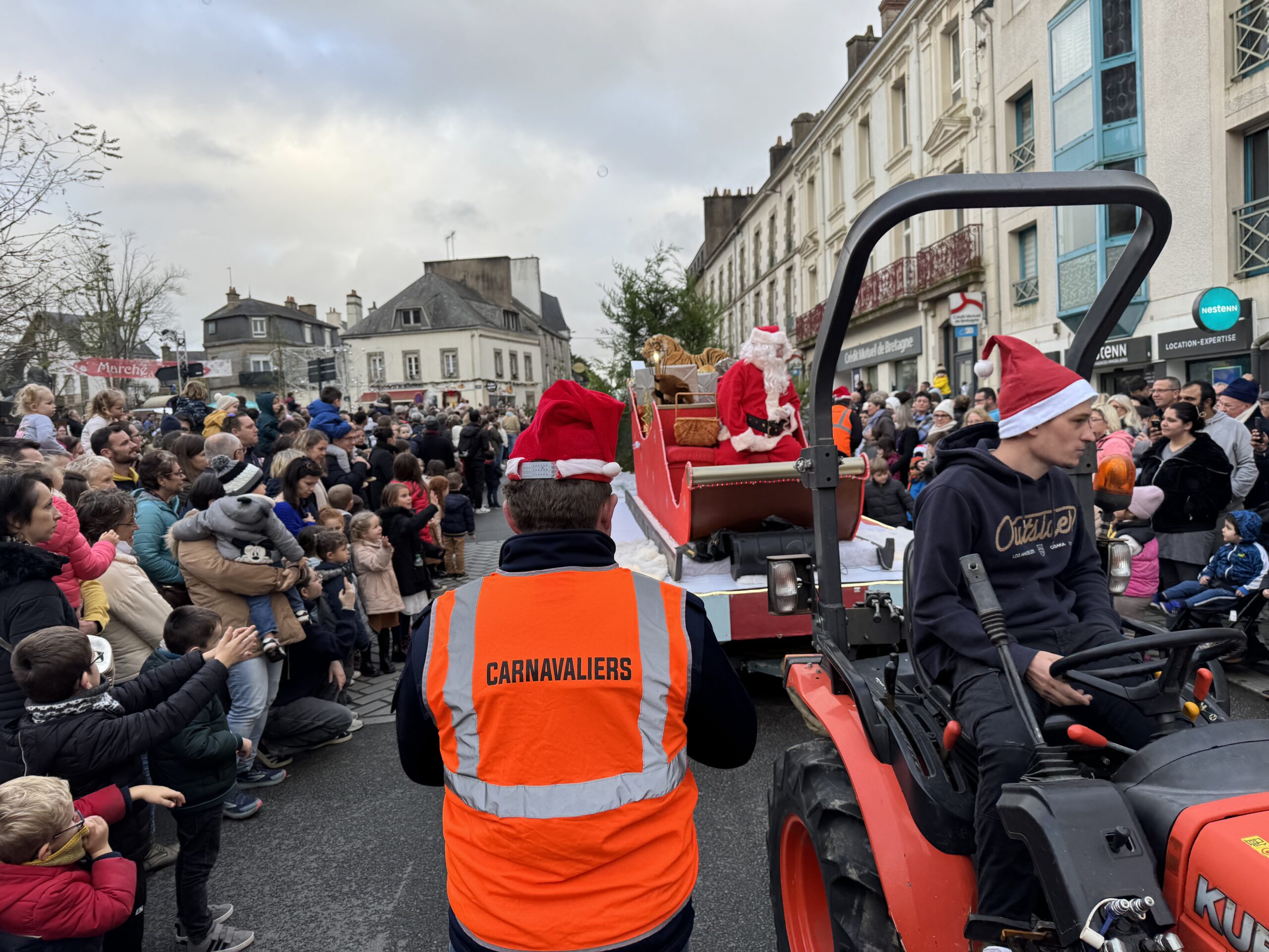 Le moins que l’on puisse dire c’est que la Père Noël a fait une arrivée tonitruante à Ploërmel, ce dimanche après-midi. Pour lancer officiellement la quinzaine commerciale, l’association Les Vitrines de Ploërmel organisait une parade de Noël avec la complicité des Carnavaliers. Ces derniers proposaient un défilé de chars dont un transportait notamment les Reines de Ploërmel et un autre… le Père Noël.