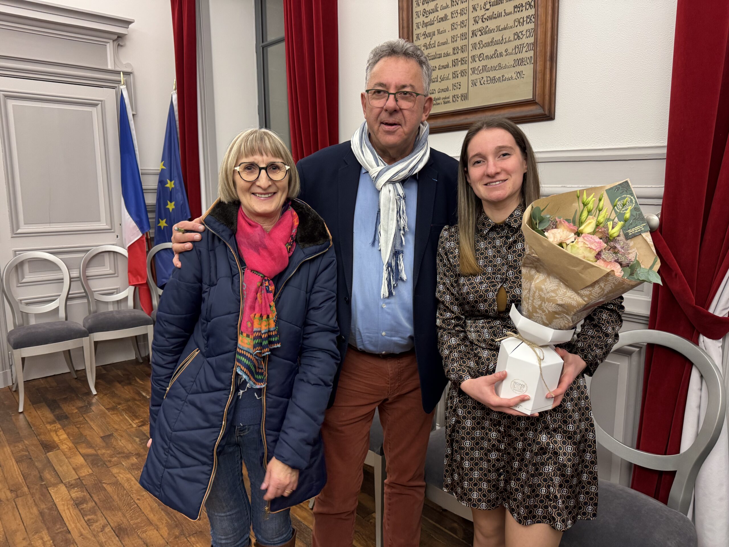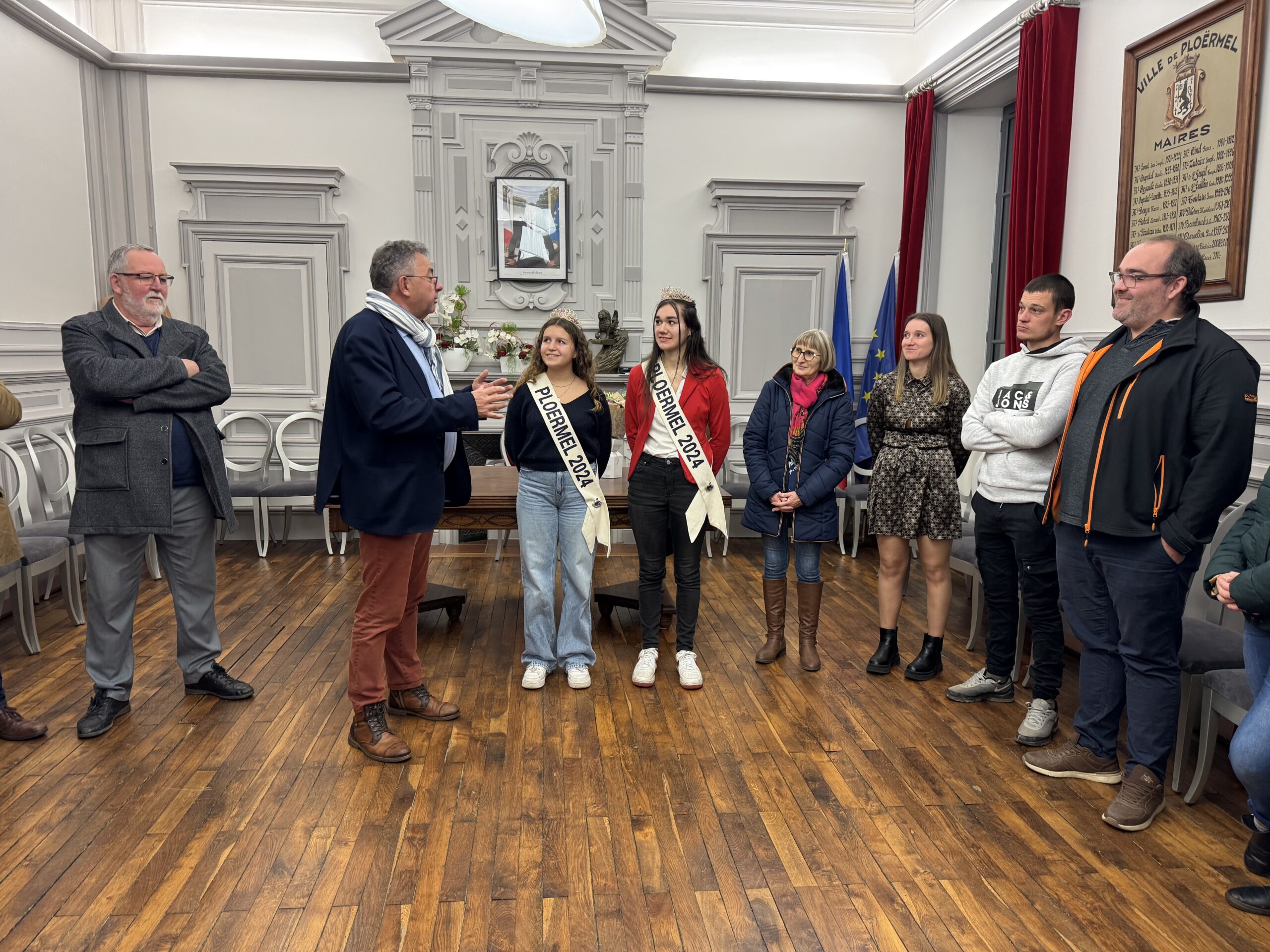 Oui, il n’y a qu’une reine de Ploërmel et une dauphine. Mais par galanterie on les appellera toutes les deux les reines de Ploërmel. Depuis leur élection, elles ont représenté leur ville dans bien des manifestations dont beaucoup à l’extérieur de ses murs. Elles méritent donc bien d’être considérées comme de véritables ambassadrices de Ploërmel. Et c’est bien l’avis du maire, Patrick Le Diffon qui, entouré de plusieurs membres de son conseil municipal, a reçu Océane Billard et Jeanne Joubier ce vendredi soir à la mairie. Il a souligné le fait qu’elles étaient l’image de la ville et a rendu hommage à leur implication dans ce rôle, soulignant le fait qu’il s’agit d’un poste pas si simple que cela à tenir. Il a également remercié les carnavaliers qui organisent chaque année l’élection et accompagnent les reines tout au long de l’année. Il y a fait dans la salle une personne particulièrement émue en la personne de la maman de Jeanne Joubier qui a été elle-aussi dauphine de la reine de Ploërmel il y a quelques années.