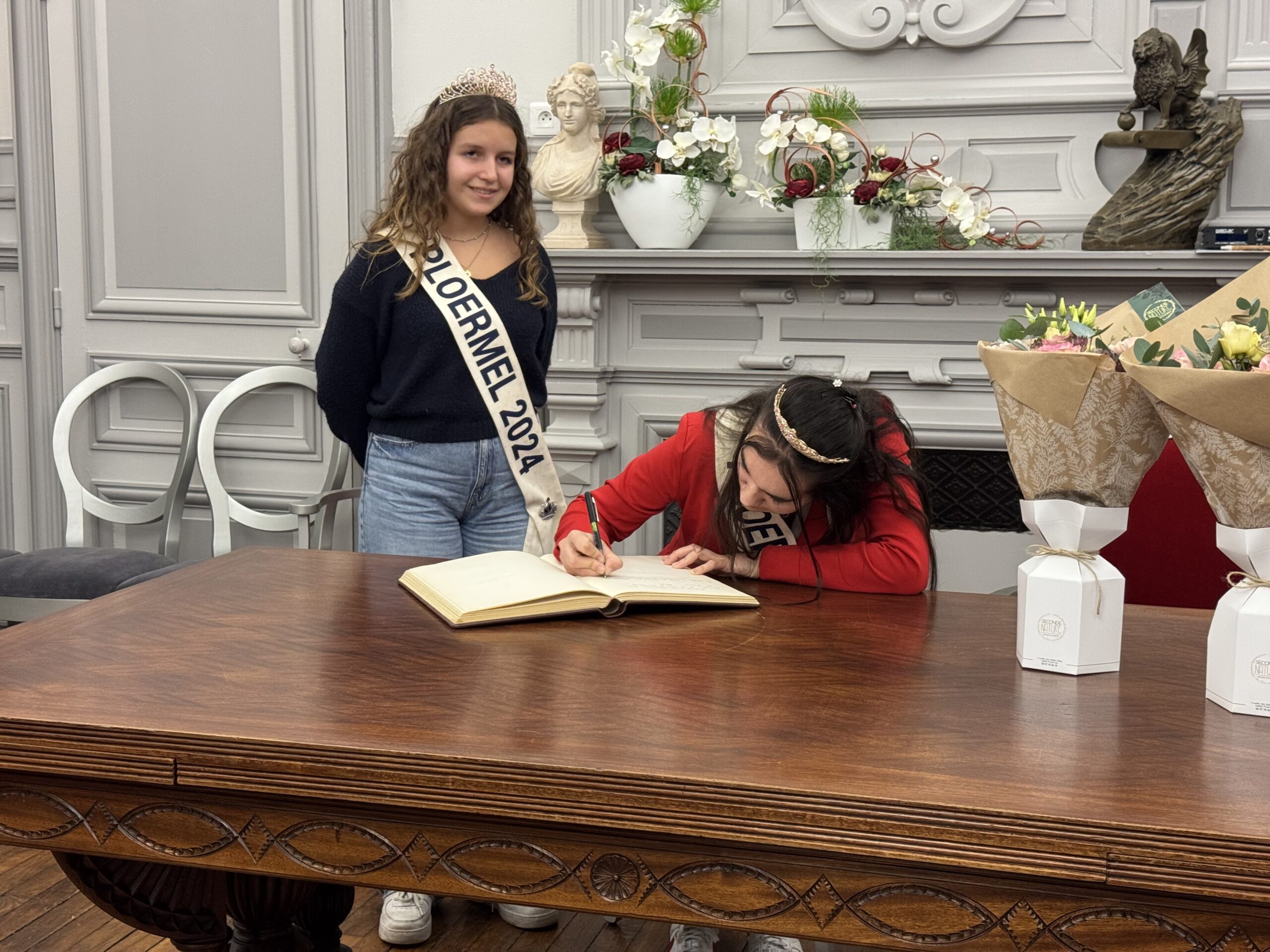 Comme le veut la tradition, la reine et sa dauphine ont reçu un magnifique bouquet et ont signé le livre d’or de la ville en compagnie du maire.