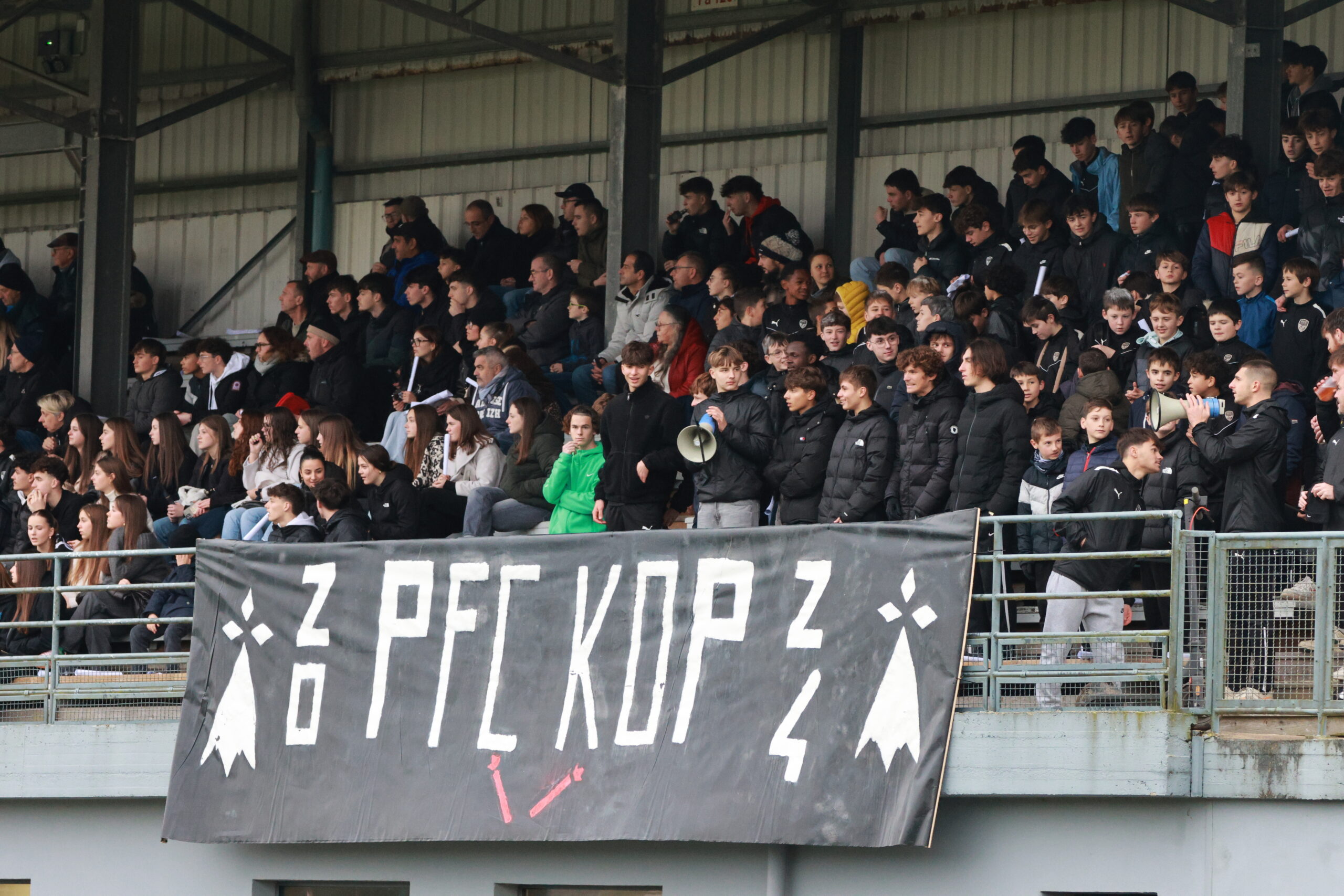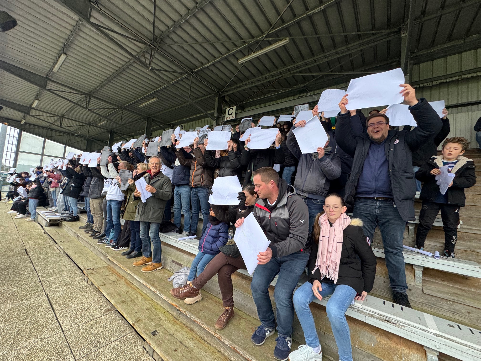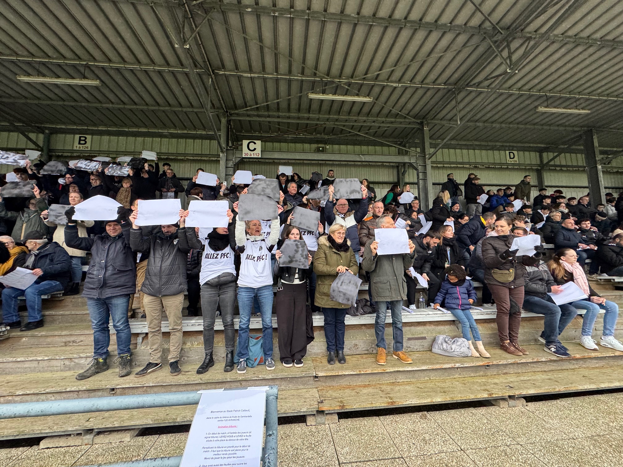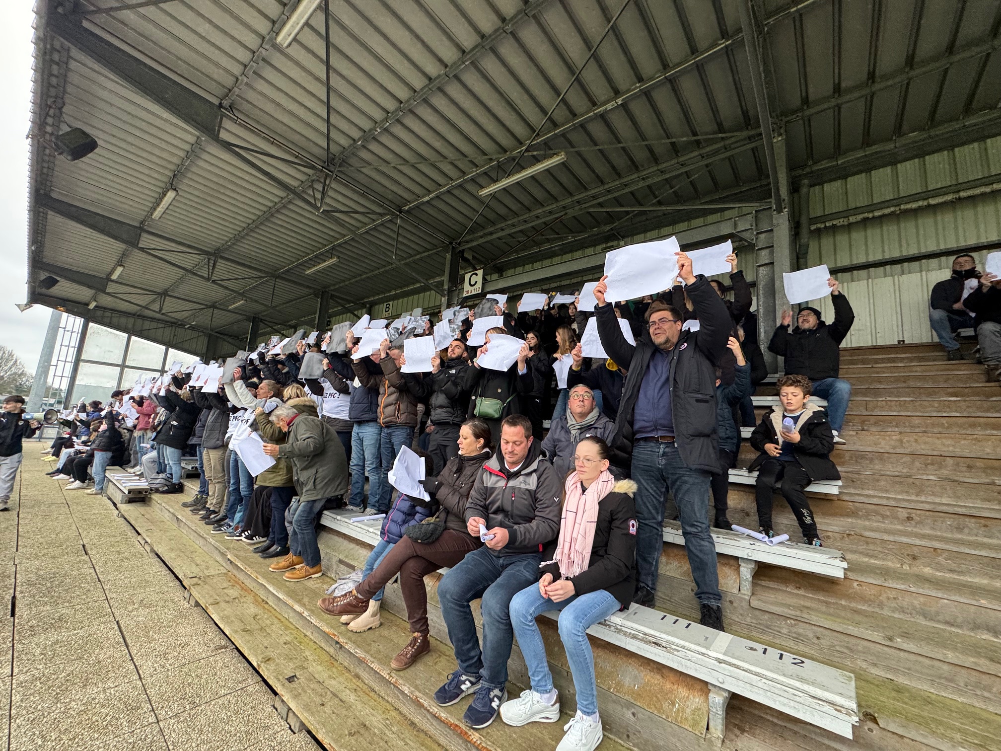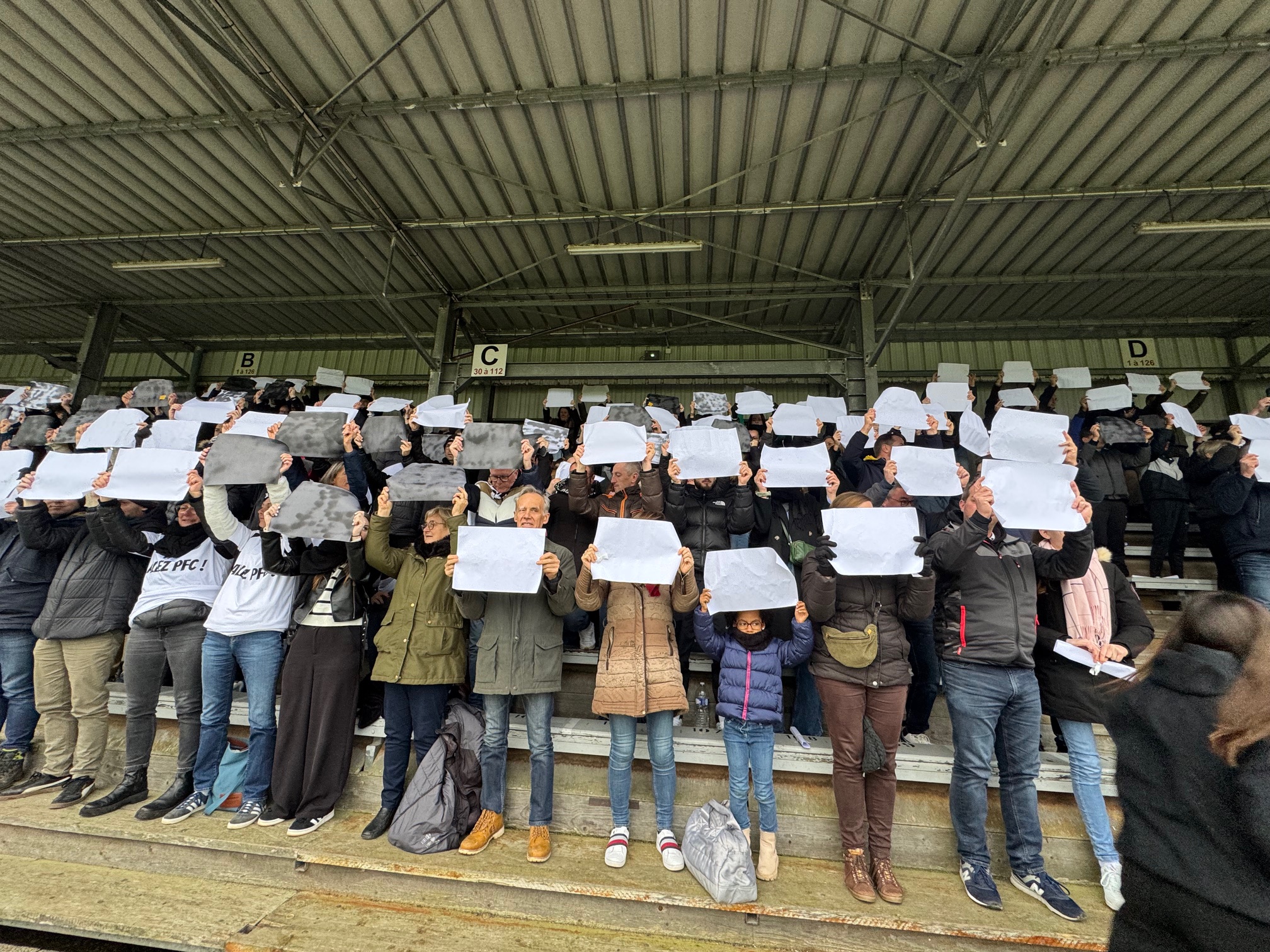 Il y a en tous cas une ambiance de feu dans le stade Jacques Caillaud et les joueurs du PFC peuvent compter sur le soutien enthousiaste de leurs supporters. Les tribunes sont pleines et les spectateurs se sont prêtés de bonne grâce au rituel qui leur était proposé de brandir une pancarte blanche au début du match dont la retransmission vidéo est interdite…