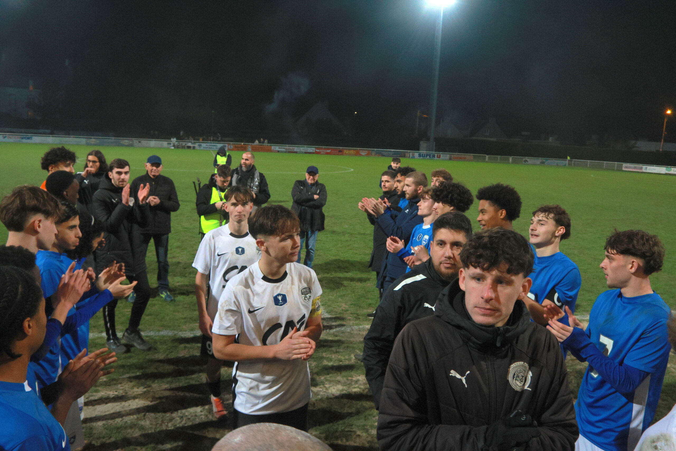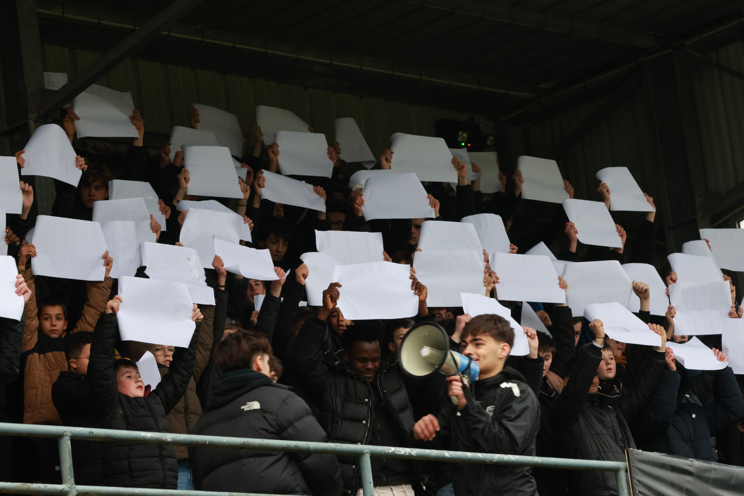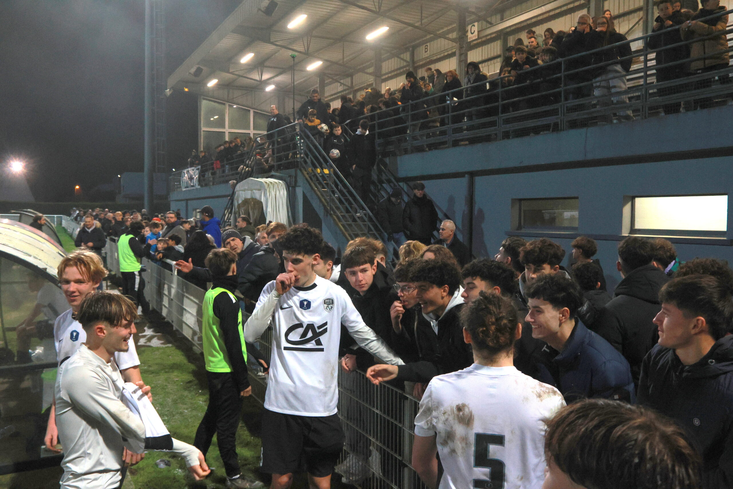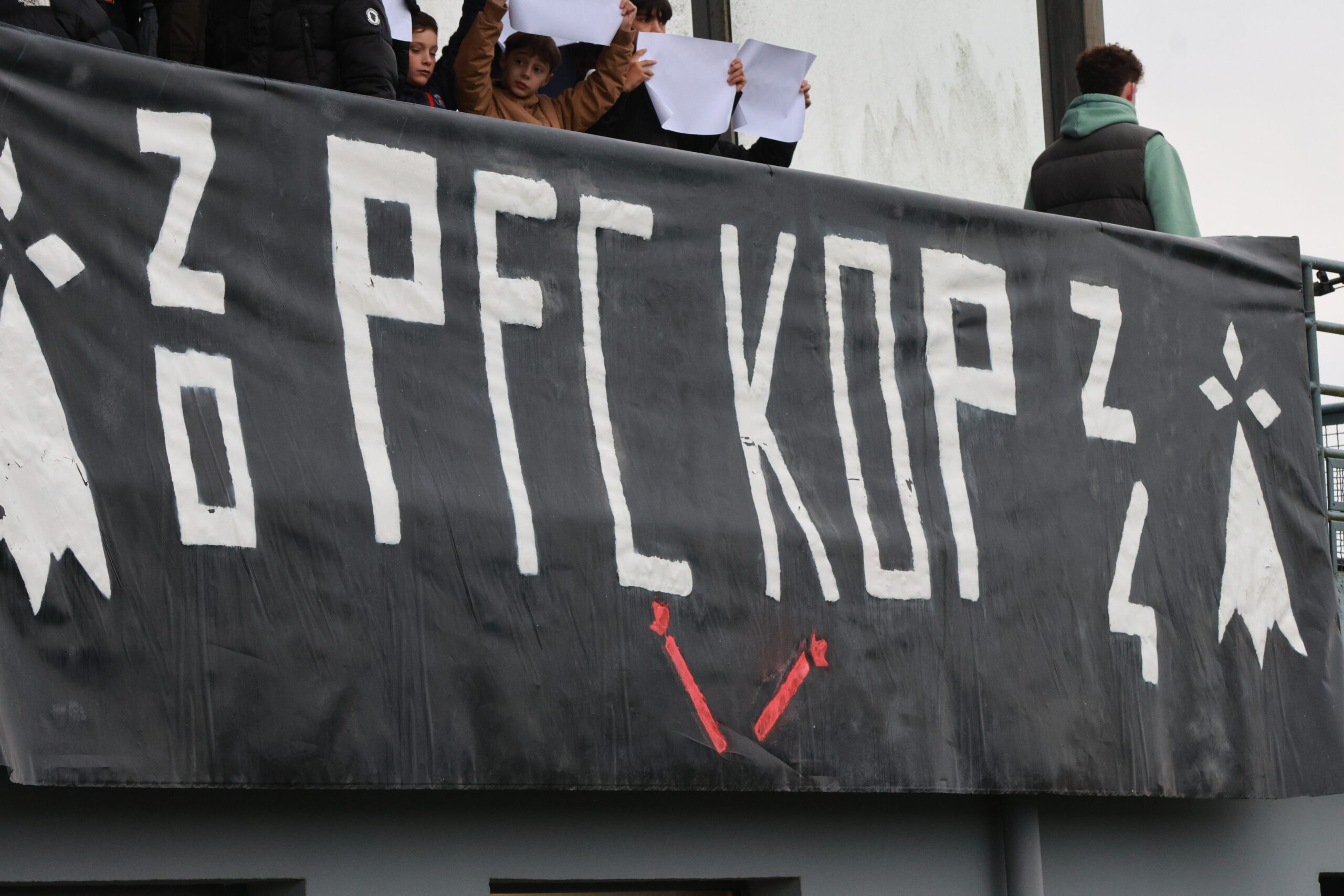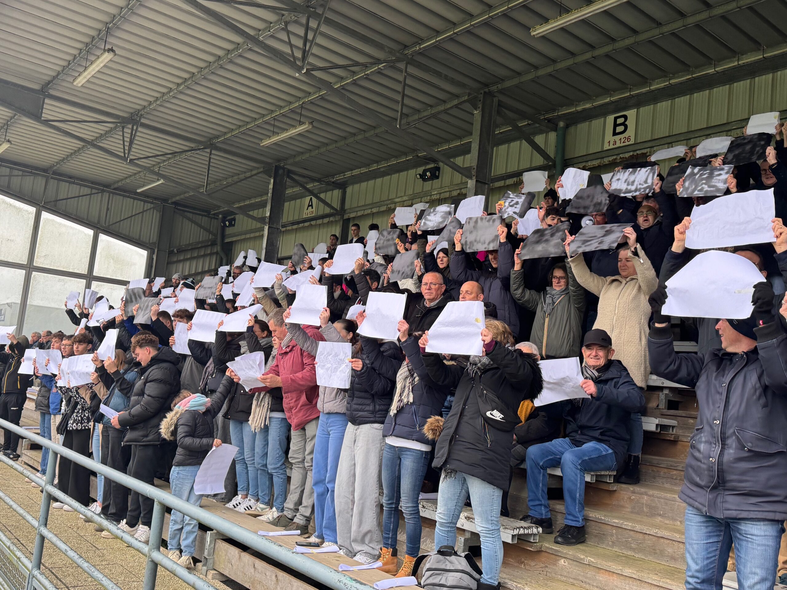 Il y a en tous cas une ambiance de feu dans le stade Jacques Caillaud et les joueurs du PFC peuvent compter sur le soutien enthousiaste de leurs supporters. Les tribunes sont pleines et les spectateurs se sont prêtés de bonne grâce au rituel qui leur était proposé de brandir une pancarte blanche au début du match dont la retransmission vidéo est interdite…