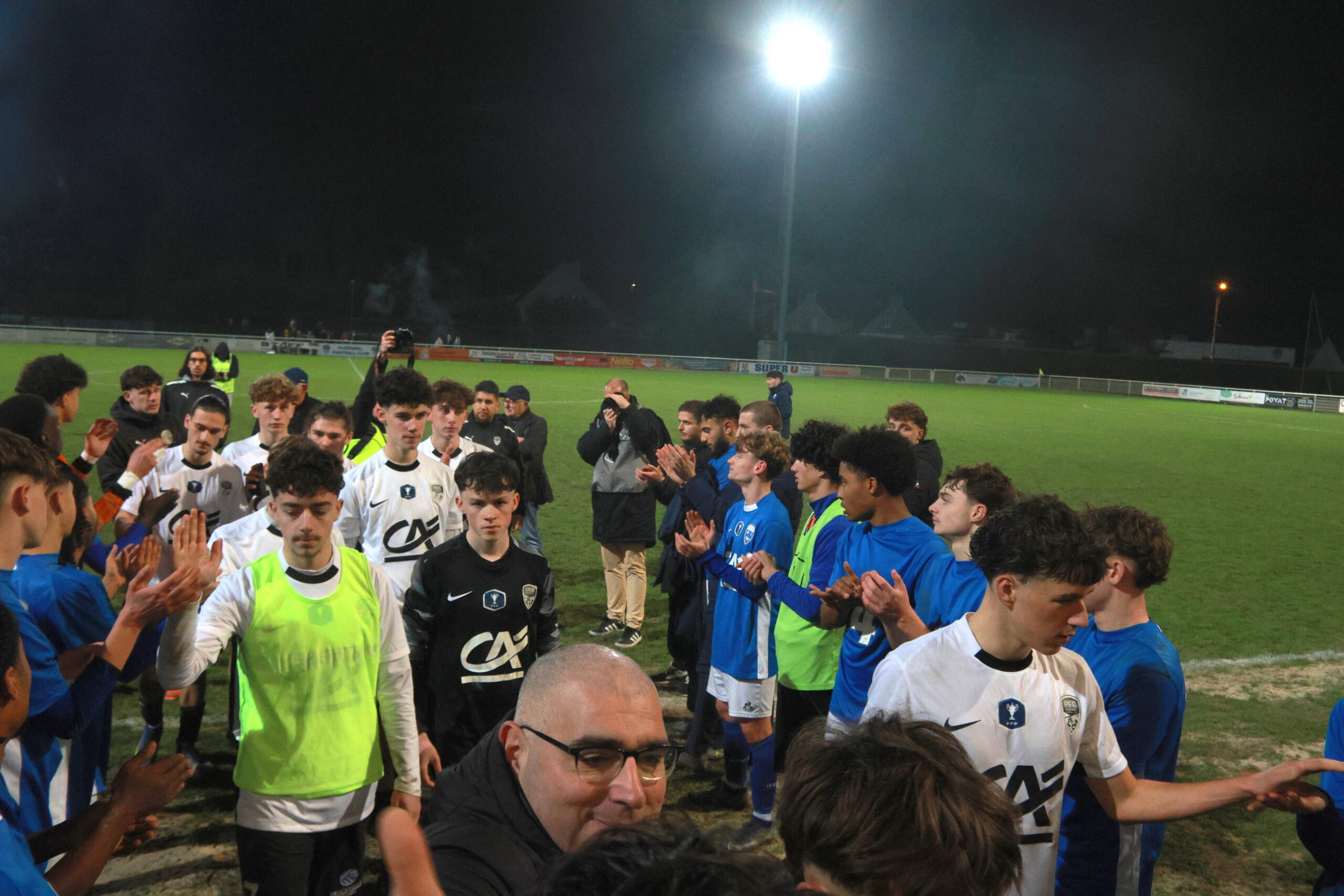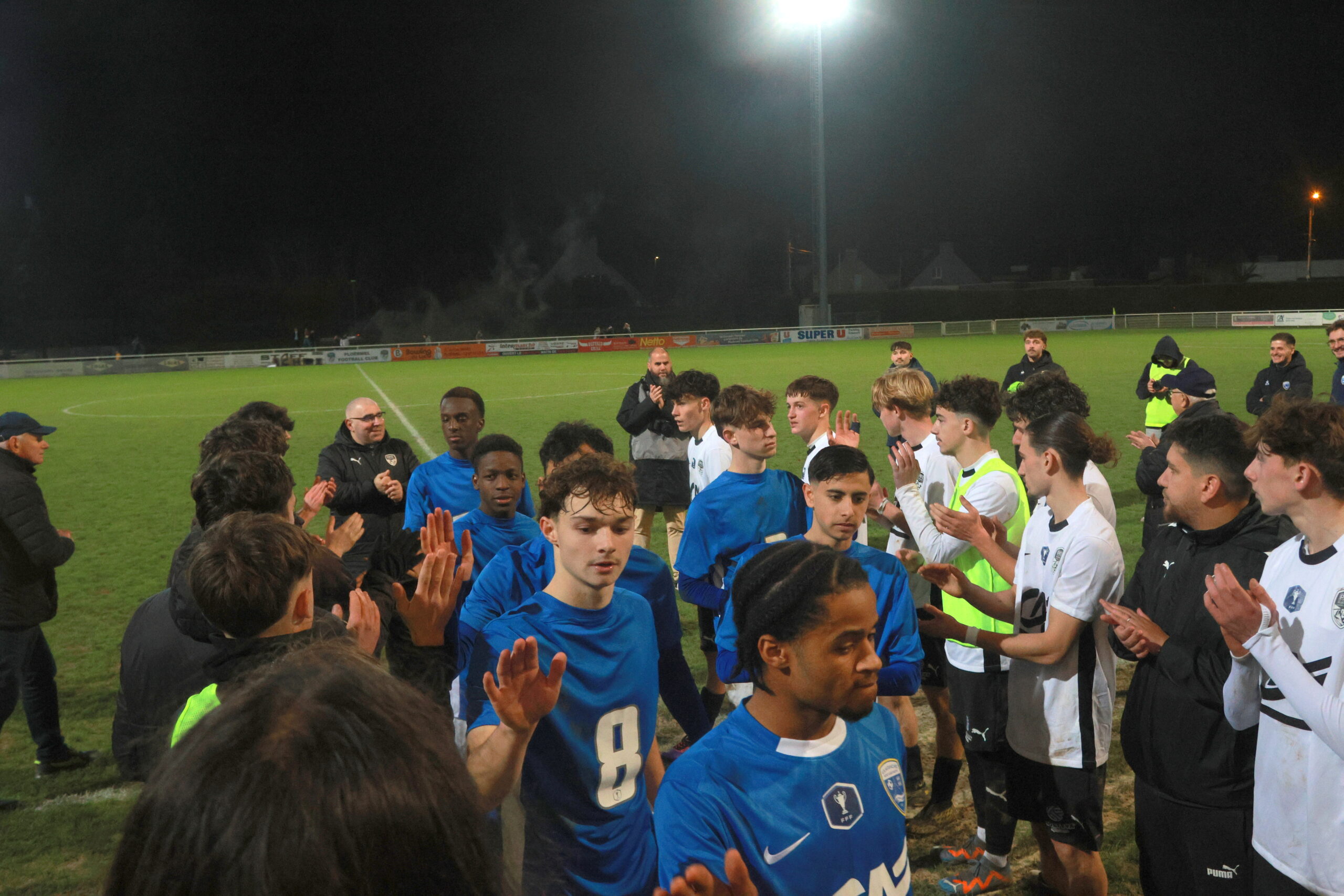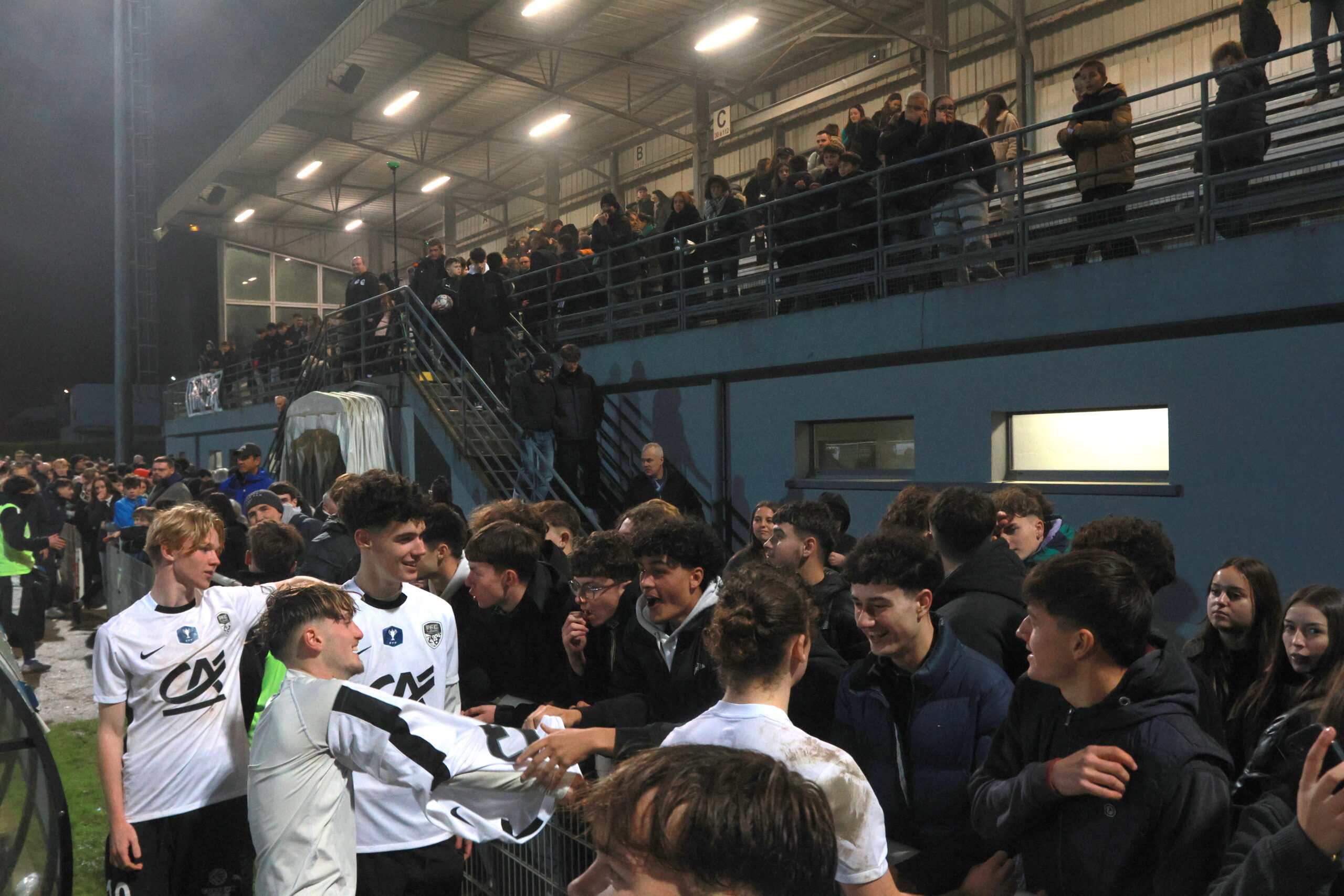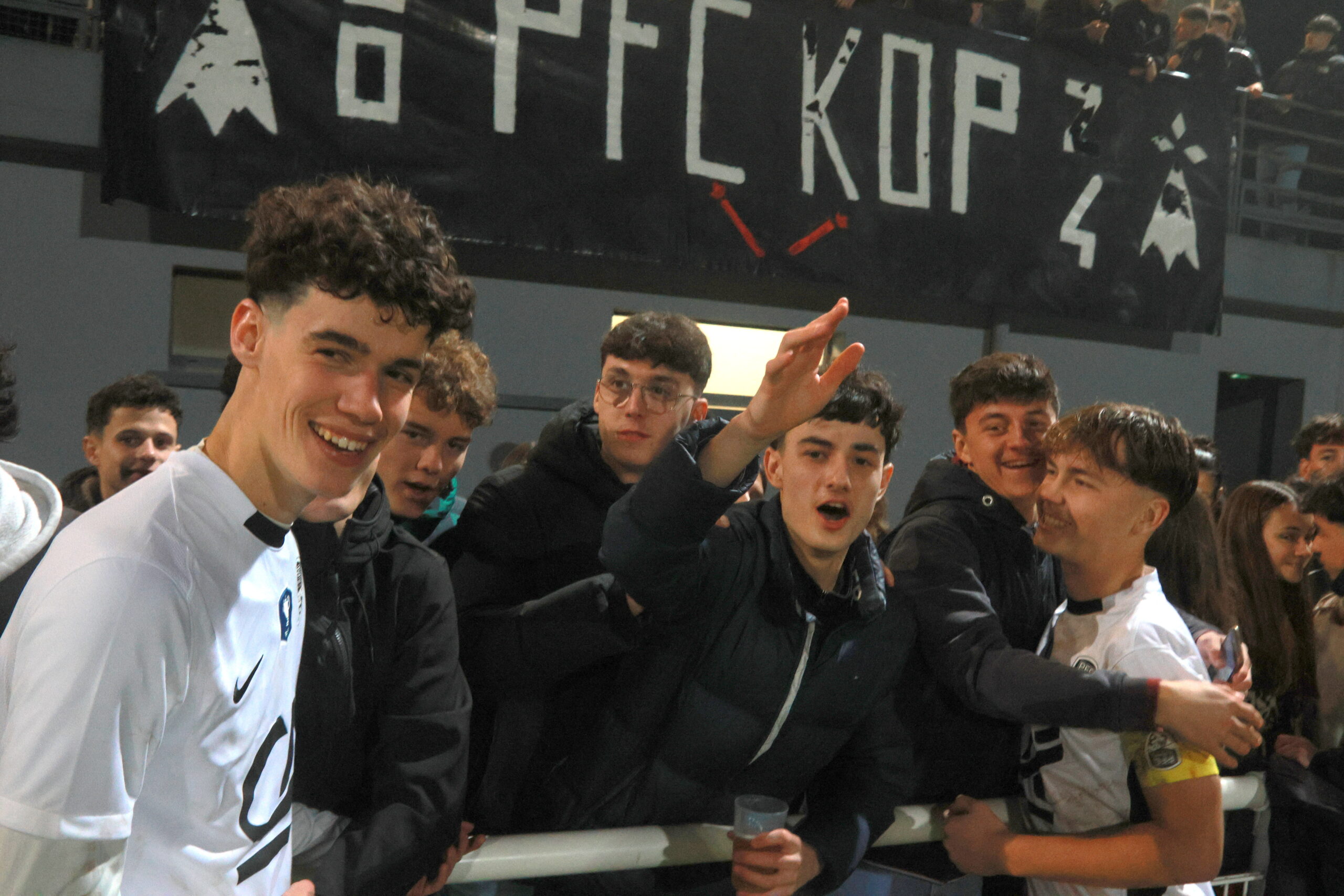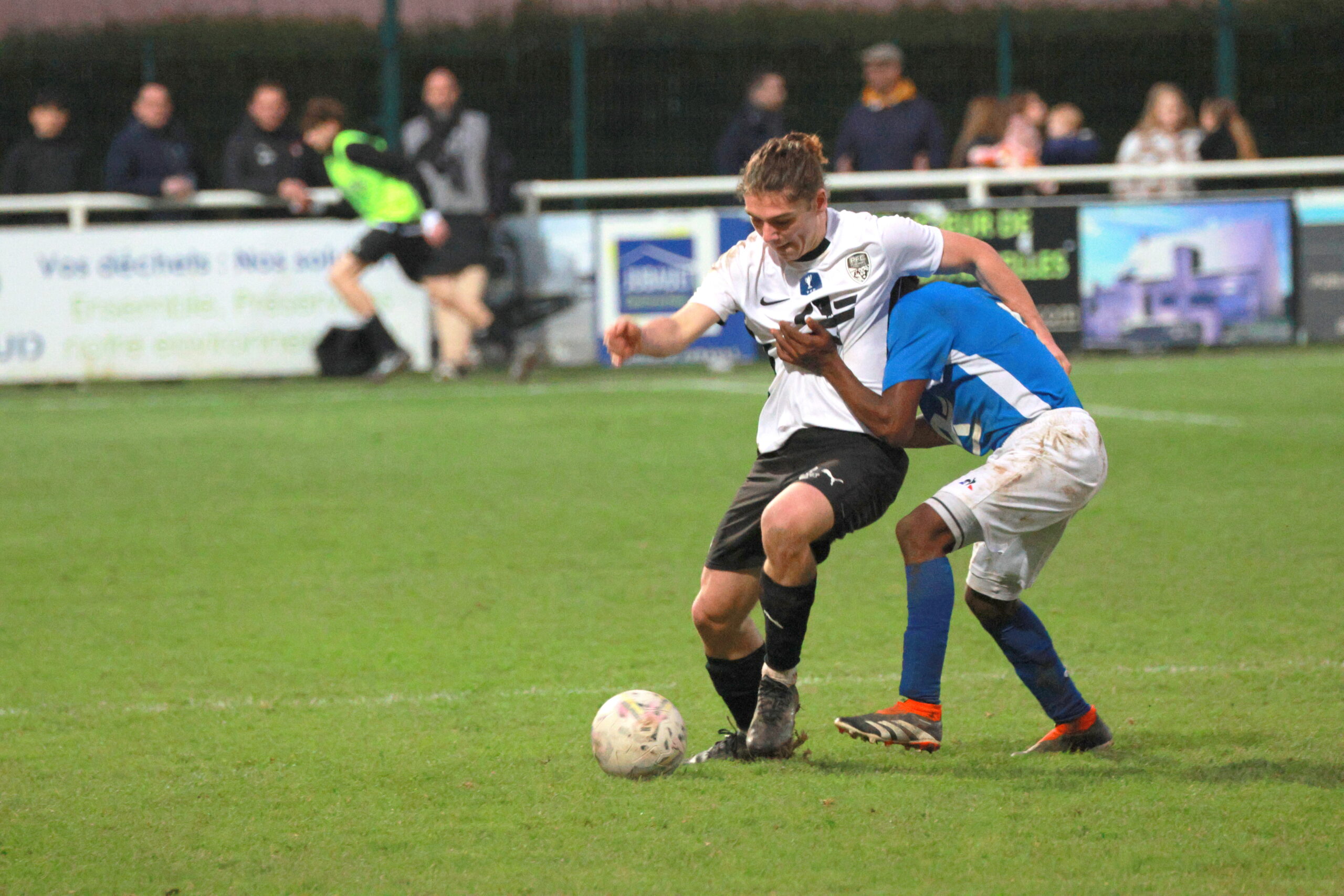 Il y a en tous cas une ambiance de feu dans le stade Jacques Caillaud et les joueurs du PFC peuvent compter sur le soutien enthousiaste de leurs supporters. Les tribunes sont pleines et les spectateurs se sont prêtés de bonne grâce au rituel qui leur était proposé de brandir une pancarte blanche au début du match dont la retransmission vidéo est interdite…