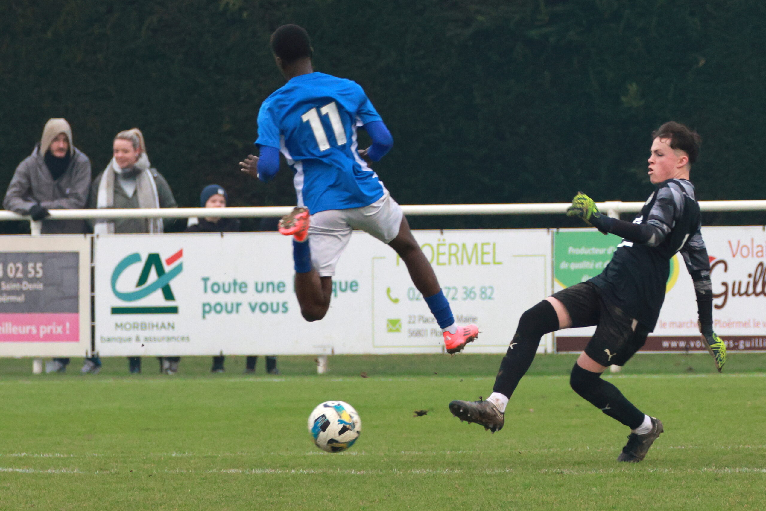 A la 58è minute de jeu, un joueur d’Avranches écope d’un carton rouge à la suite d’une faute sur le gardien ploërmelais. Dans les tribunes l’espoir renait et sur le terrain, les ploermelais se lancent à l’assaut du but averse : il reste 32 minutes pour remonter deux buts