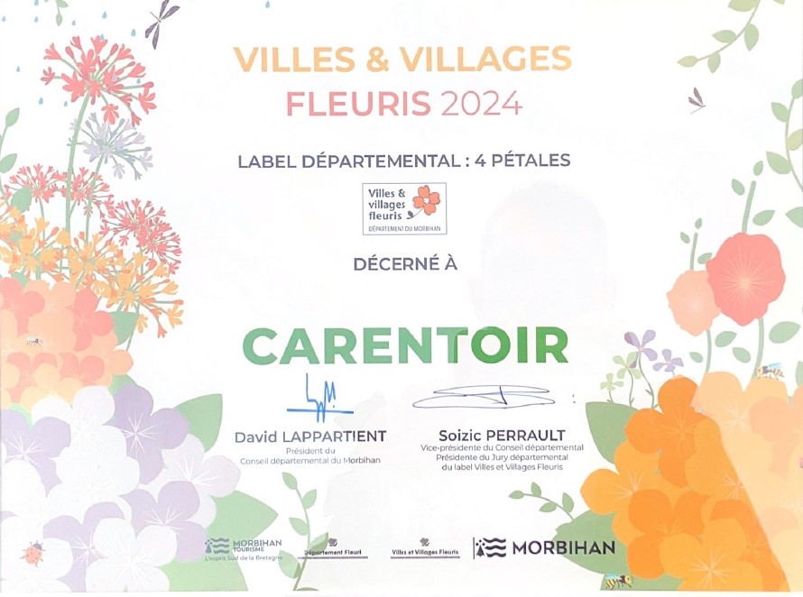 En 2024, Carentoir a obtenu son 4e et dernier pétale au concours départemental, un passage obligé avant de pouvoir prétendre au prestigieux label national « Villes et Villages Fleuris ».