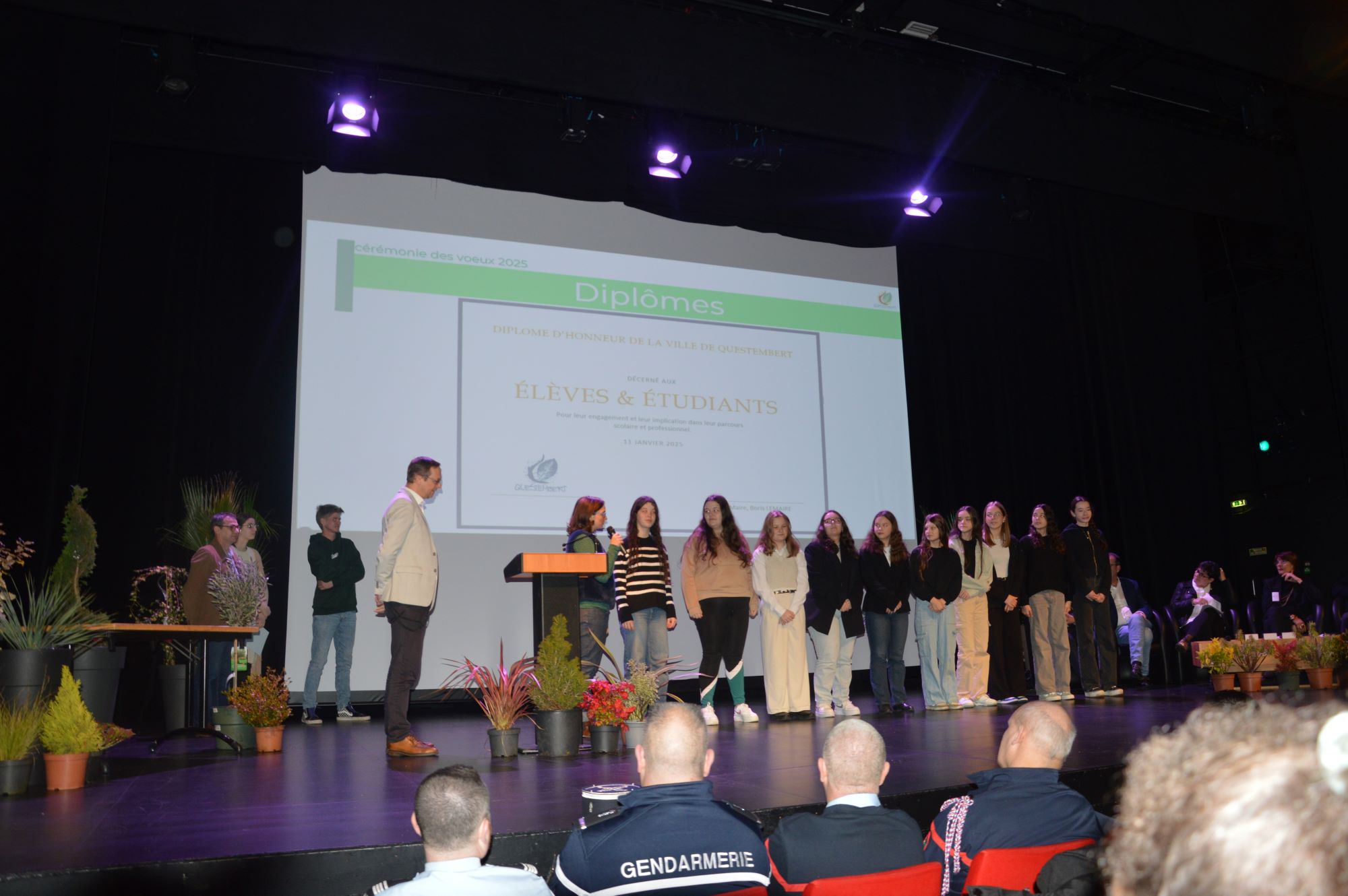 Lors des vœux de 2025, la municipalité a voulu valoriser la jeunesse en débutant la cérémonie des vœux, une fois n’est pas coutume, par récompenser les jeunes pour leurs excellents résultats.