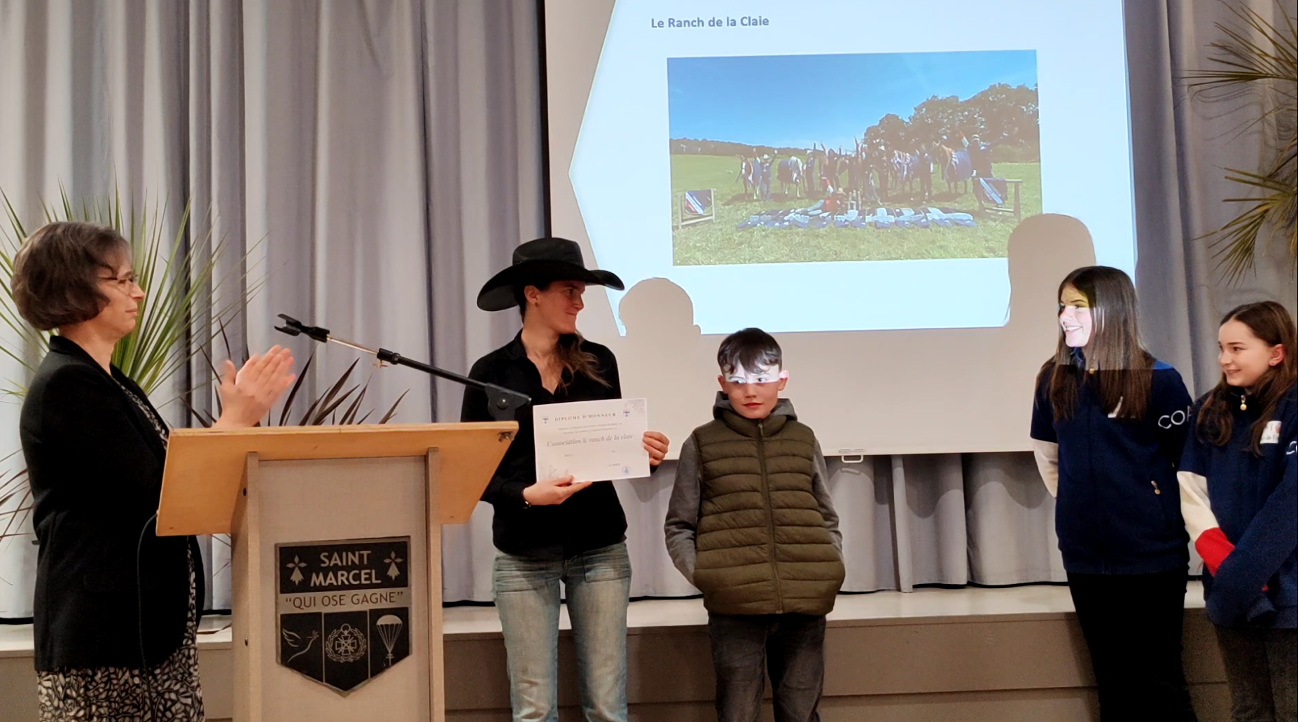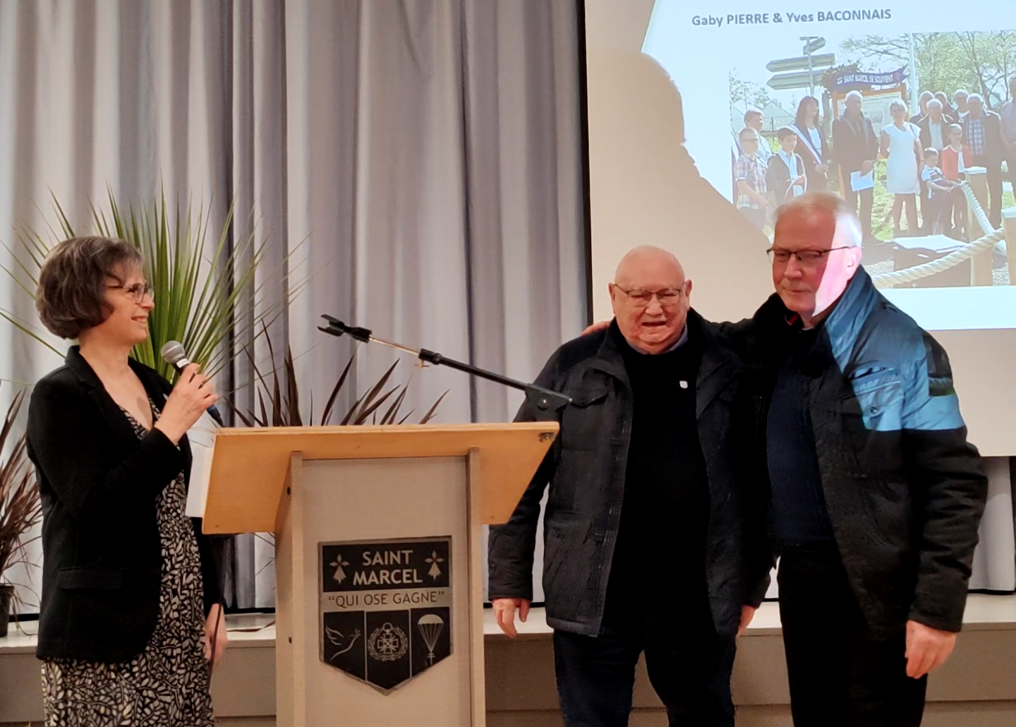 Revivez en intégralité la cérémonie des voeux de Armelle Robert, maire de Saint-Marcel. Celle-ci est revenue sur les principaux évènements qui ont rythmé l’année écoulée avec notamment les cérémonies commémorant le 40è anniversaire de la création du musée de la résistance 80è anniversaire des combats et de la libération de Saint-Marcel. Elle a souligné la cohésion de l’équipe municipale et présenté les deux projets majeurs de l’année à venir à savoir la finalisation du bâtiment périscolaire dont la première botte de paille a été posée récemment et la passerelle de La Née, un dossier partagé avec Saint-Abraham. Armelle Robert a rendu hommage aux deux agents recenseurs et remis le diplôme d’honneur de la commune à l’équipe du ranch de la Claie qui a décroché le titre de champion de France Western club en juillet dernier et dont plusieurs adhérents sont retenus en équipe de France. Elle a enfin mis à l’honneur deux Marcellais qui ont joué un rôle important dans la transmission de l’histoire de la commune, Gaby Pierre et Yves Baconnais.
