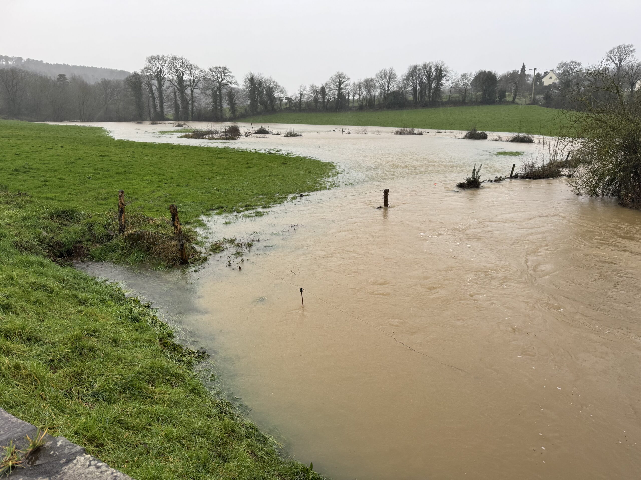 A Quelneuc, l’Aff a dépassé sa crue de novembre 2000 et plusieurs routes du secteur ont été submergées. A Hélléan, le Ninian s’étale dans le pré communal. C’est aussi le cas de la Claie à Bohal ou du ruisseau des Arches à Caro…
