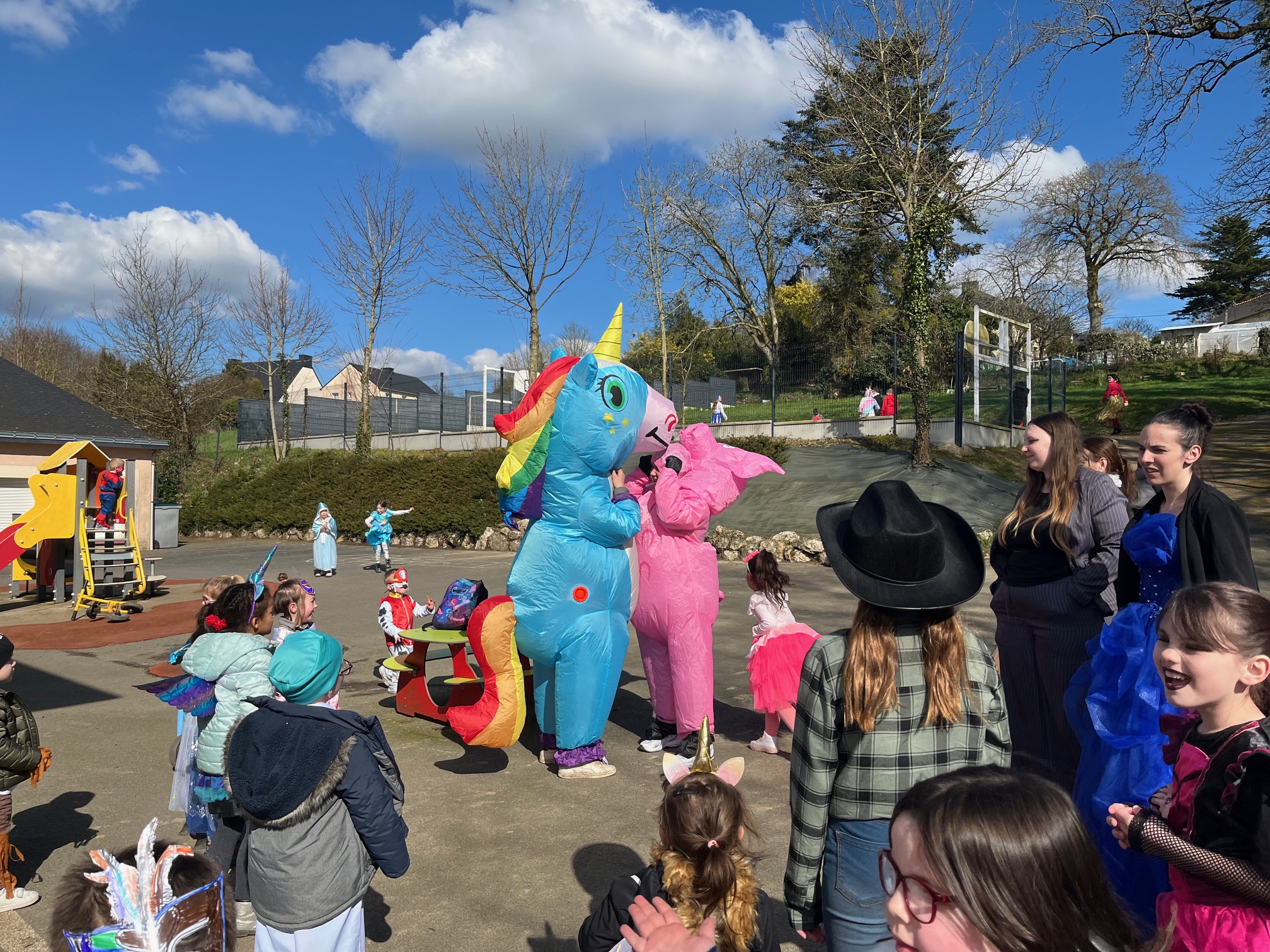 Après le repas à la cantine, place aux déguisements et au maquillage. Princesses, super-héros, personnages de contes et créatures fantastiques ont envahi les rues du centre-ville de La Trinité-Porhoët sous un soleil radieux. Le cortège musical a attiré de nombreux spectateurs qui n’ont pas hésité à applaudir et à encourager les participants.