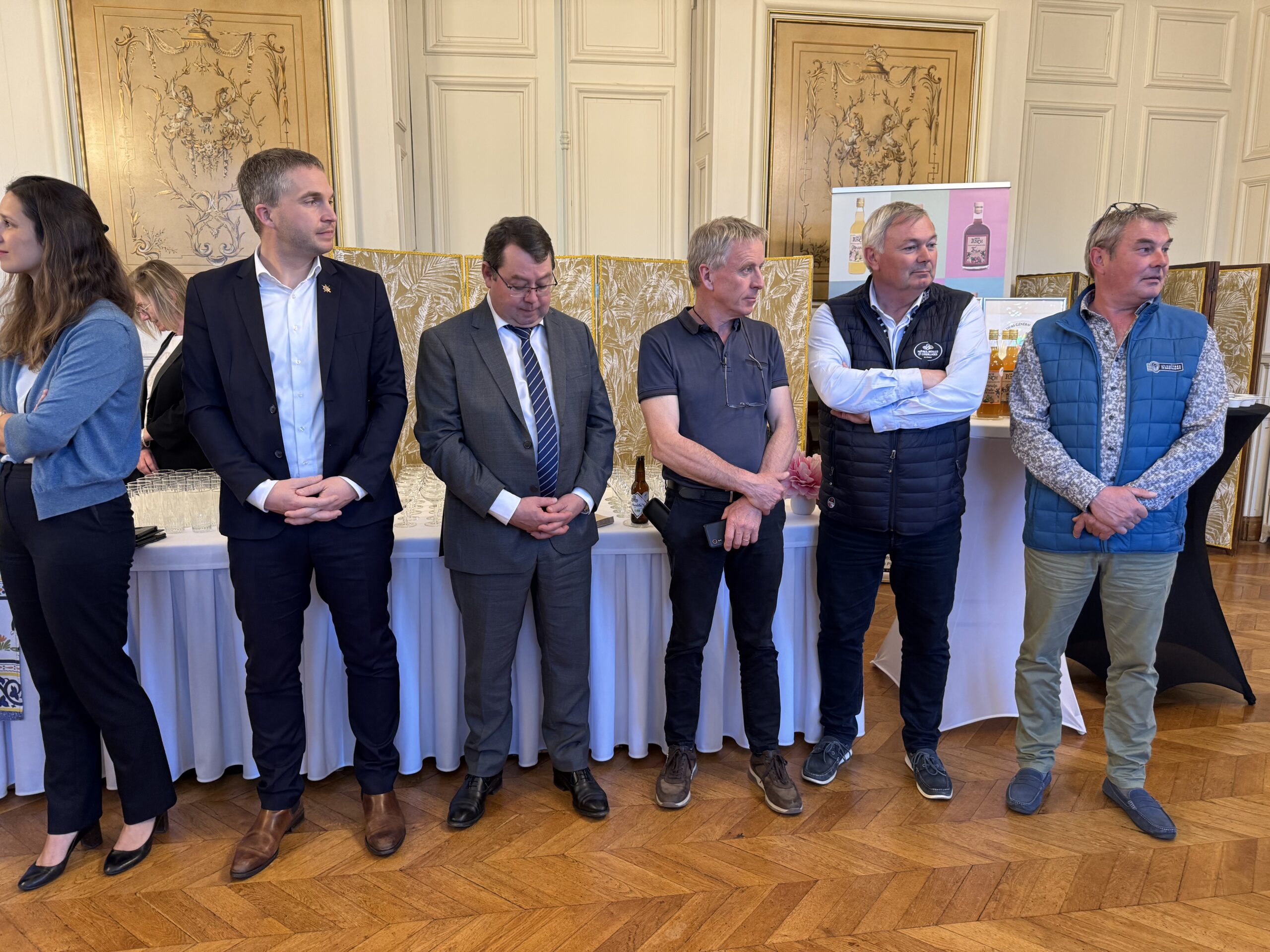 Sur les 157 producteurs bretons médaillés lors du dernier salon international de l’agriculture, 47 sont morbihannais. Ces derniers ont été reçus ce lundi soir à la préfecture à Vannes par le préfet. L’occasion de découvrir l’étendue de la palette des productions du Morbihan. Il y a les incontournables comme les huîtres, le cidre, l’élevage, mais on sait moins que dans le Morbihan, on produit aussi du Gin, du punch… Entre les deux il y a les producteurs de confiture, de charcuterie, de fromages mais aussi les éleveurs de chevaux, d’ânes et de chiens. La plupart d’entre eux ont répondu à l’invitation du préfet et ils ne sont pas venus les mains vides. Ils ont apporté avec eux des échantillons de leurs productions qui constituent le buffet très appétissant de la soirée. Parmi les lauréats, le pays de Ploërmel était plutôt bien représenté avec les confitures de fraises de Plougastel fabriquées par l’ESAT de Carentoir, le cidre et la bière du Val d’Oust, de Malestroit, de Saint-Martin sur Oust. Du côté des animaux on retrouve l’élevage Robin-Picard de Caro (double médaille d’or), la GAEC Monneraye Holstein de Sérent, l’EARL Danet Morel de Guilliers…