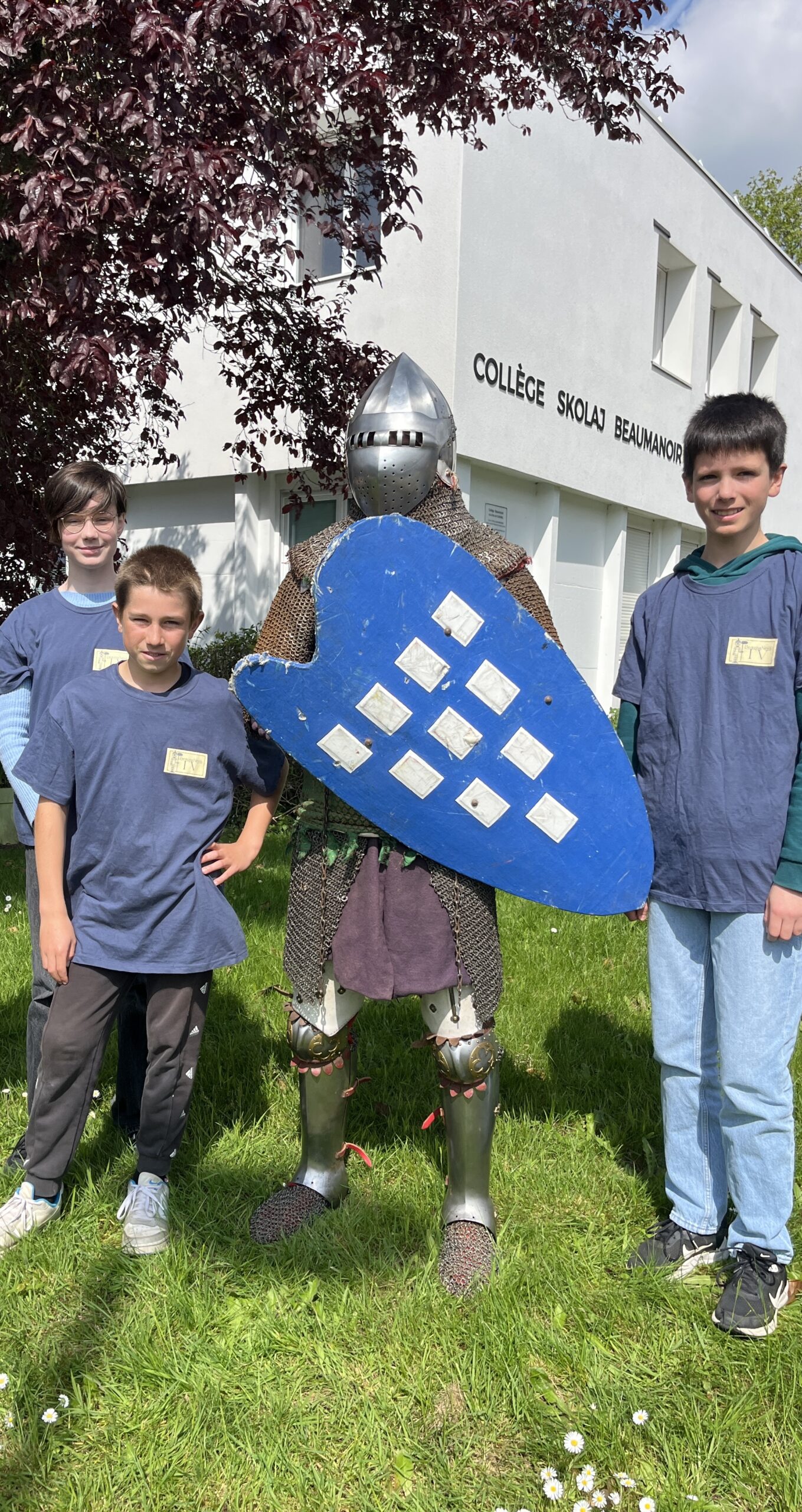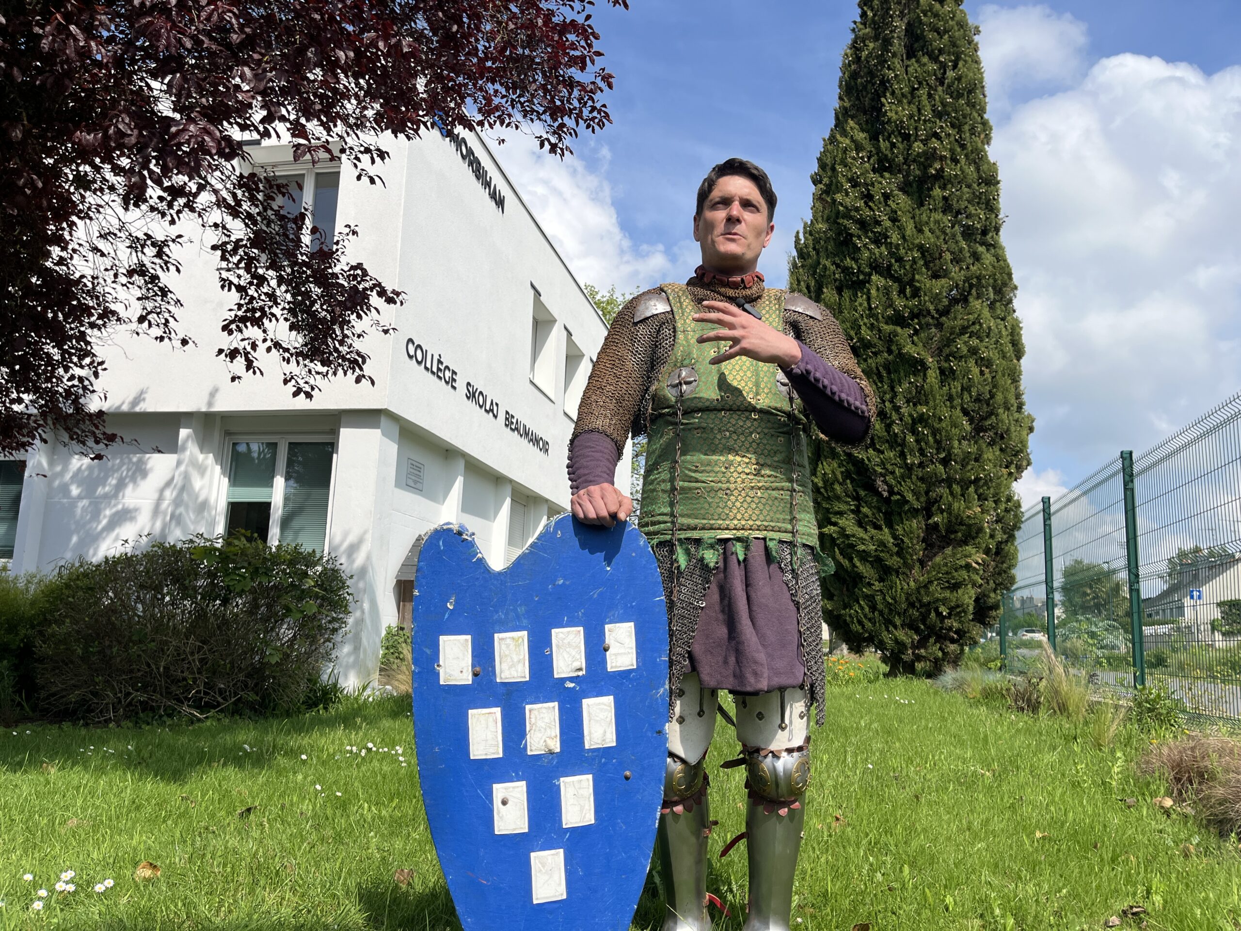 Jeudi et vendredi 17 et 18 avril, le collège Beaumanoir a accueilli le chevalier Beaumanoir. Pierre Le Floc’h, de l’association les Ateliers de l’histoire, est venu présenter aux classes de 5e et 4e l’équipement d’un chevalier du milieu du XIVe siècle, l’époque du Combat des Trente (1351) remporté par Jean de Beaumanoir contre des Anglais menés par Bemborough.
