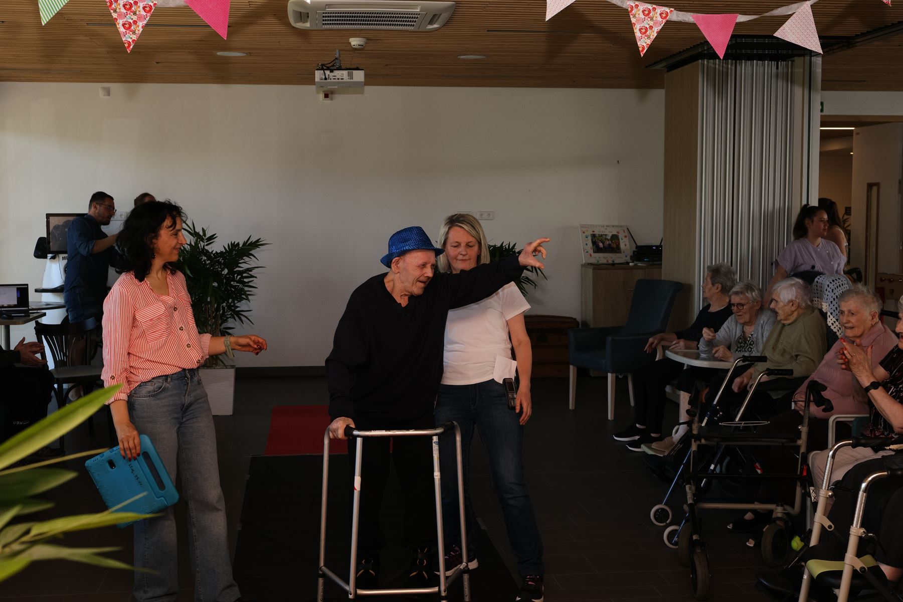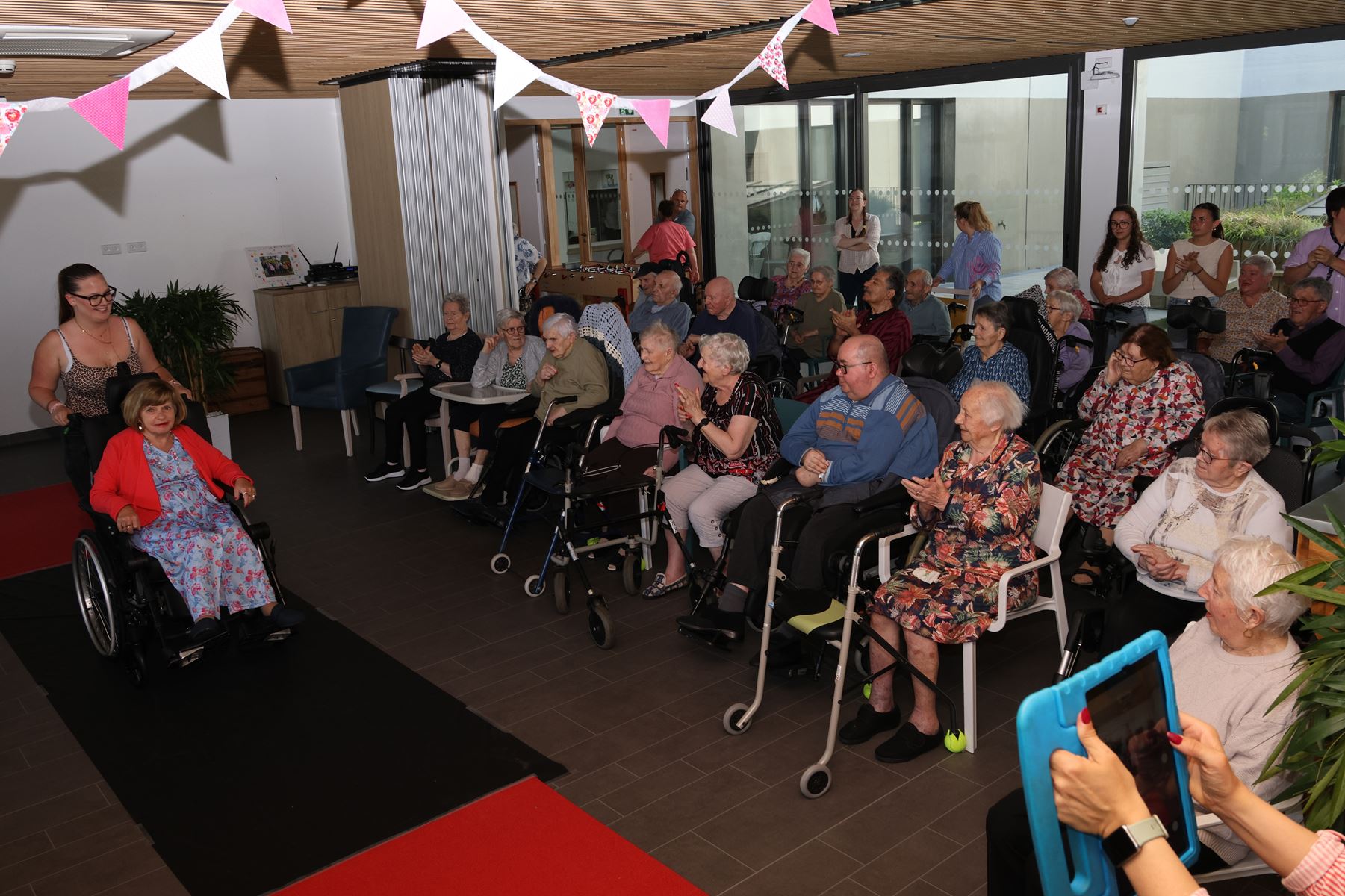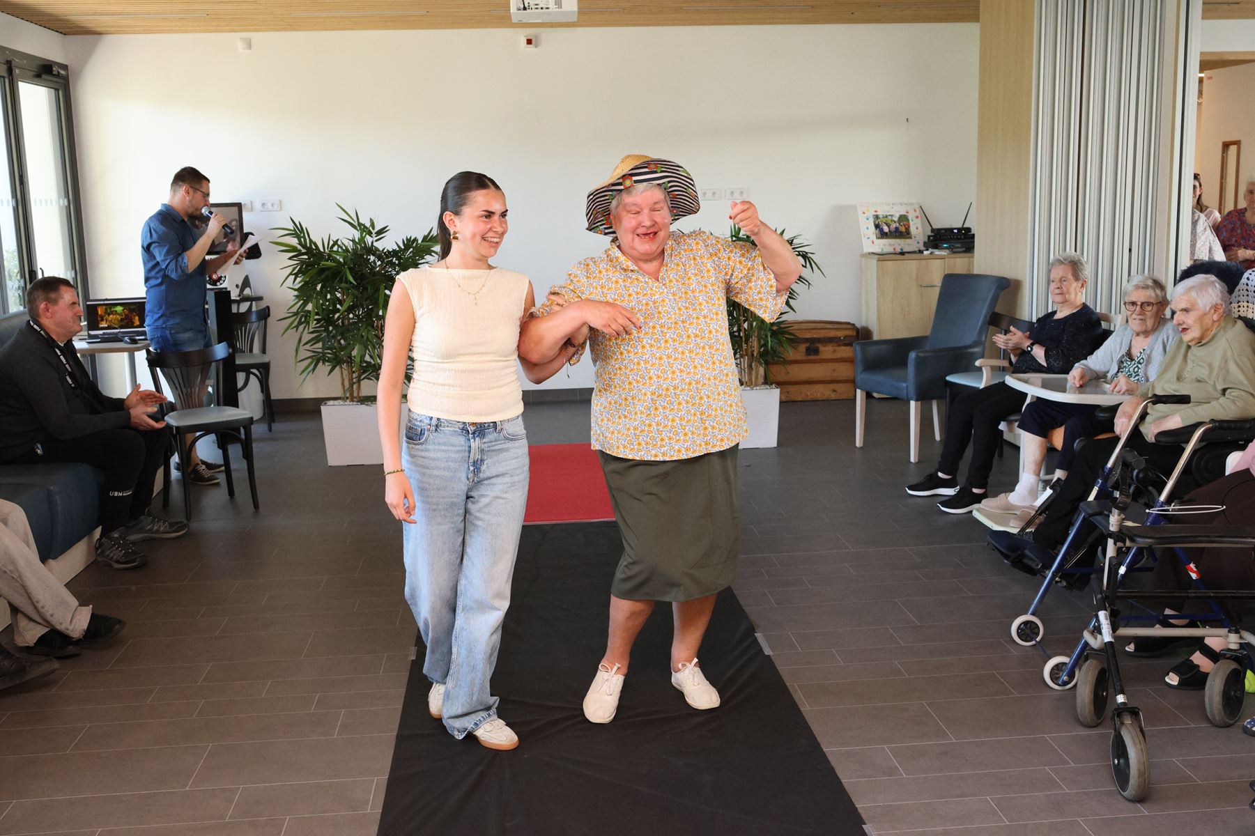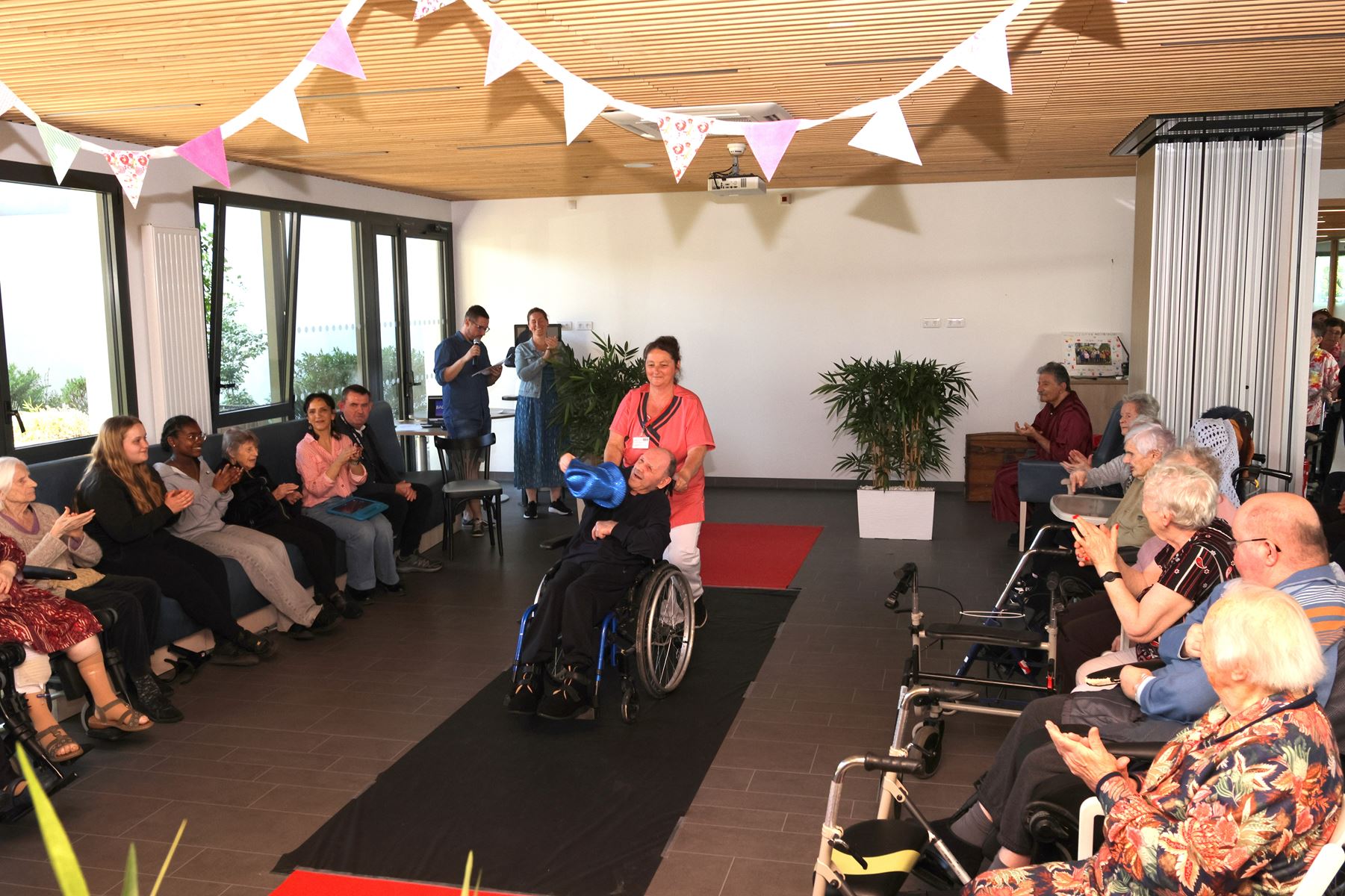 Mardi après-midi, les résidents de l’EHPAD de Josselin se sont réunis dans l’espace accueil réception animation pour participer ou regarder la seconde édition du défilé de mode de l’Hôpital de Josselin. « C’est une animation qui a été mise en place l’an passé et qui avait fortement séduit nos pensionnaires. Depuis ce matin grâce à une coiffeuse bénévole et les élèves du Lycée Ampère ils sont bichonnés coiffés maquillés et habillés, grâce au magasin Facil en fil. Et comme le hasard du calendrier, a fait que ce soit le jour d’anniversaire Anne Joubard, elle aura le privilège d’ouvrir le show avec grâce. C’est un moment primordial festif et intergénérationnel qui illumine de sourires nos résidents. Avec Aurélia et Virginie nous mettons tout en œuvre pour égailler leur quotidien en menant des actions de partage avec les écoles de la commune », explique Benjamin de l’équipe animation.
