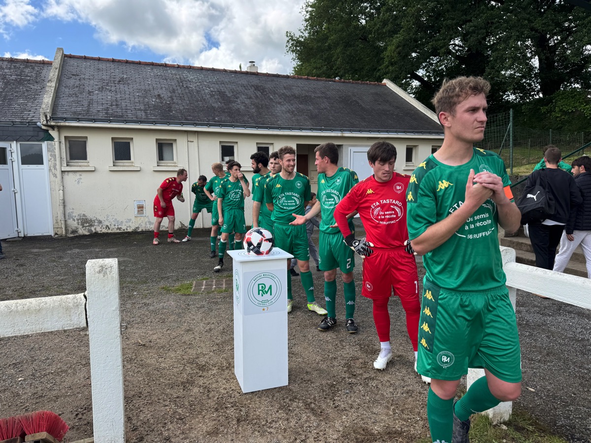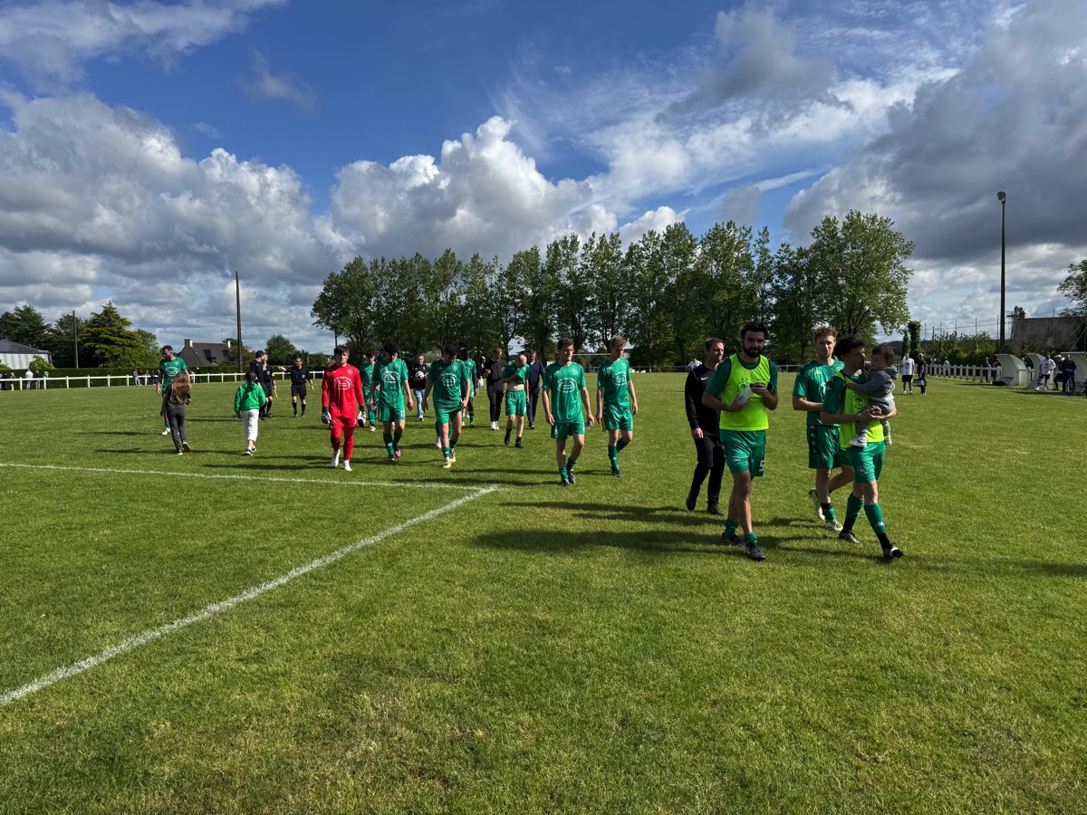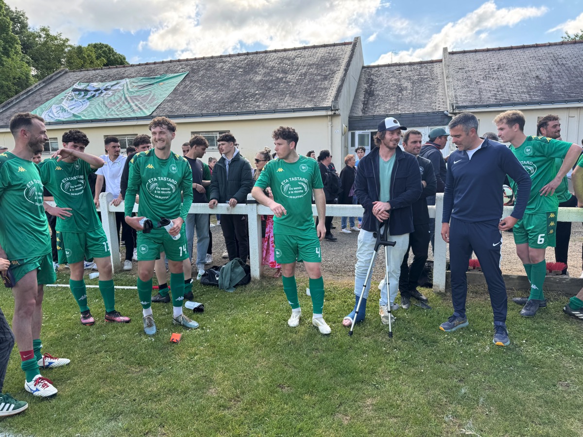 Que d’émotion dans le stade où une atmosphère étrange s’installe. Les joueurs qui ont fait une haie d’honneur à leurs adversaires et à leur entraineur sur le départ, Maxime Michel, ne laissent pourtant pas exploser leur joie. On sent une certaine gravité. Il faut que le président Anthony Poyac -qui a annoncé sa démission- leur rappelle que, oui, c’est bien vrai, ils joueront toujours en régionale 2 la saison prochaine. C’est alors la prise de conscience qui déclenche l’enthousiasme du stade, des joueurs, de l’encadrement et du public. Après tout, Ruffiac-Malestroit a quand même aligné dix victoires au cours de ce championnat.