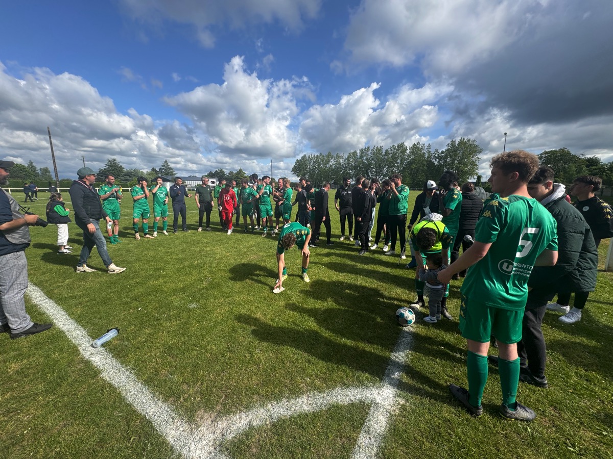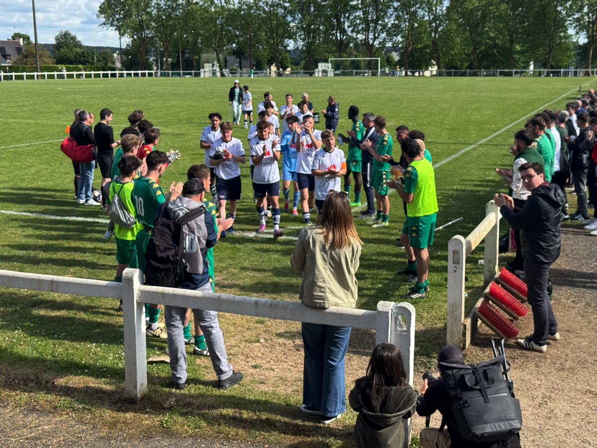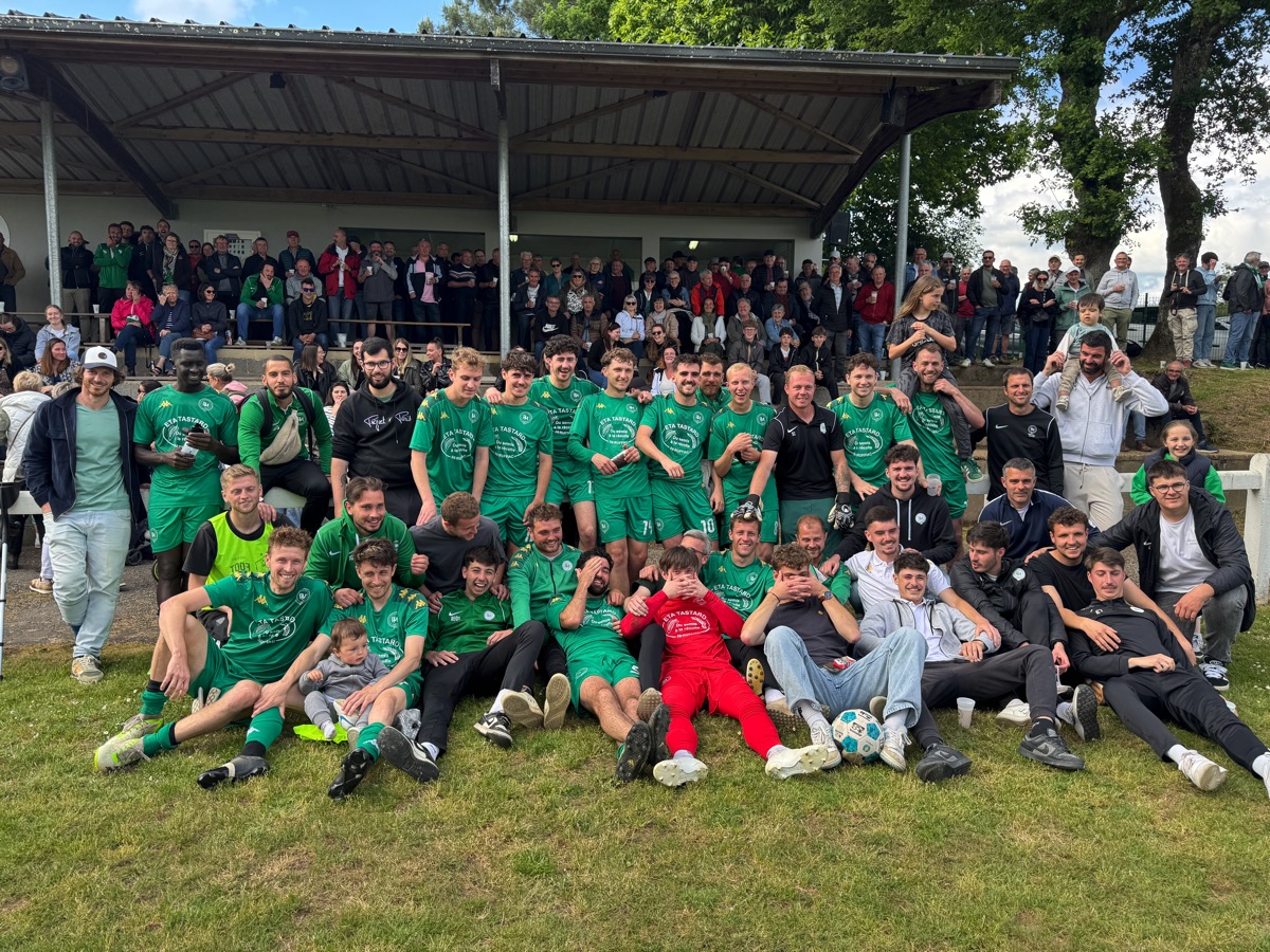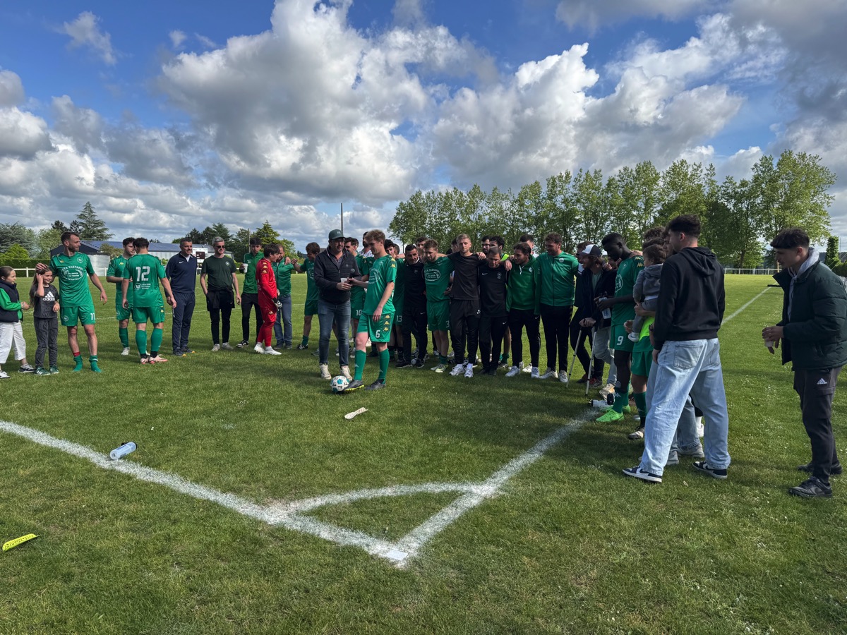 Que d’émotion dans le stade où une atmosphère étrange s’installe. Les joueurs qui ont fait une haie d’honneur à leurs adversaires et à leur entraineur sur le départ, Maxime Michel, ne laissent pourtant pas exploser leur joie. On sent une certaine gravité. Il faut que le président Anthony Poyac -qui a annoncé sa démission- leur rappelle que, oui, c’est bien vrai, ils joueront toujours en régionale 2 la saison prochaine. C’est alors la prise de conscience qui déclenche l’enthousiasme du stade, des joueurs, de l’encadrement et du public. Après tout, Ruffiac-Malestroit a quand même aligné dix victoires au cours de ce championnat.