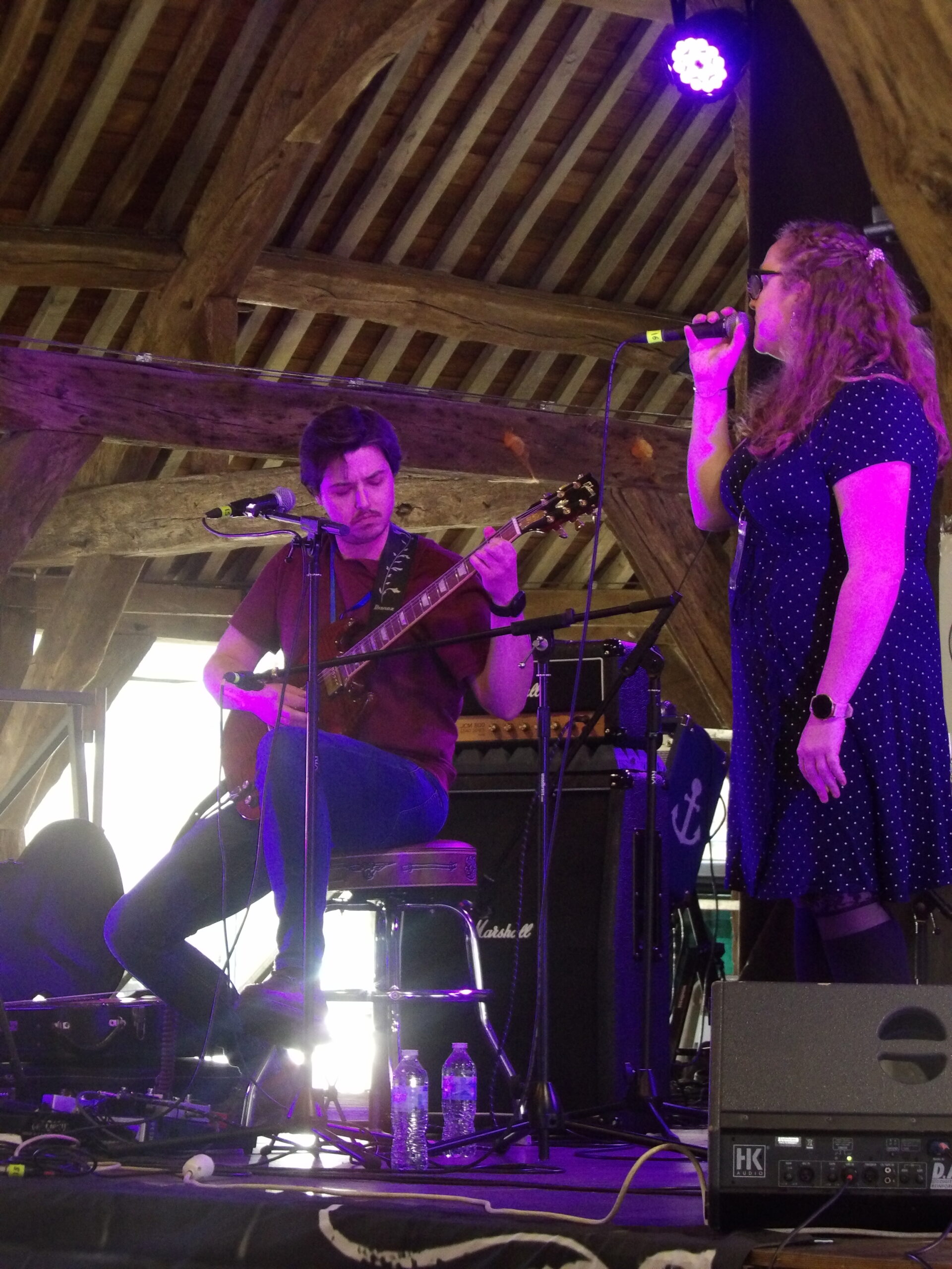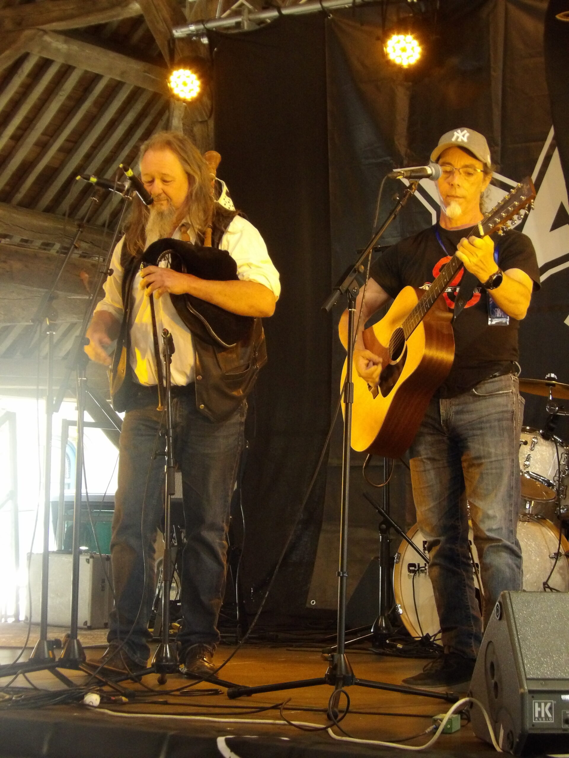 Le duo Dorcha Cobs Origin composé d’Anthony Masselin avec sa formation celtique et Topher Loudon, guitariste rockeur qui a tout appris dans la capitale de l’Irlande du Nord, Belfast, prend la suite en s’accaparant le micro pour nous faire voyager en Bretagne et en Irlande à travers des morceaux de style folk rock irish.