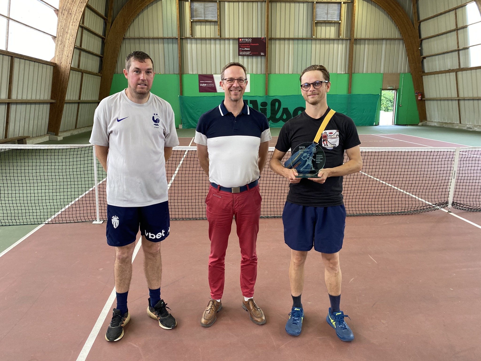 Simple Messieurs +35 ans : victoire d’Antoine Quinquis (15/2  TC Questembert) contre le très combatif Philippe Le Boursbasquet (15/3  TC Questembert), sous les encouragements d’un public nombreux. En demi-finales, ils s’étaient défaits respectivement de Ludovic Augusto (15/3  TC Muzillac) et Alexandre Long (15/3  TC Questembert).