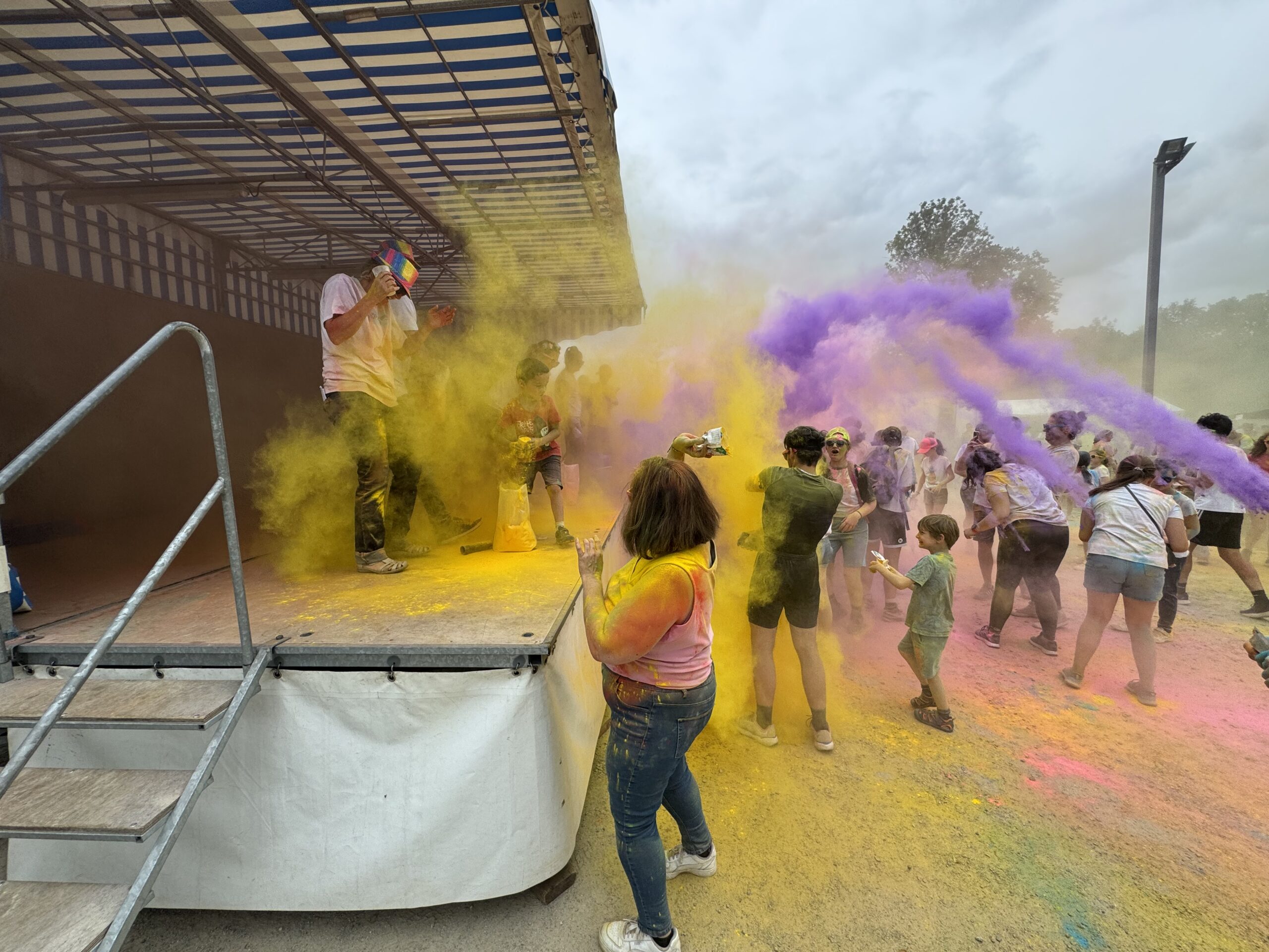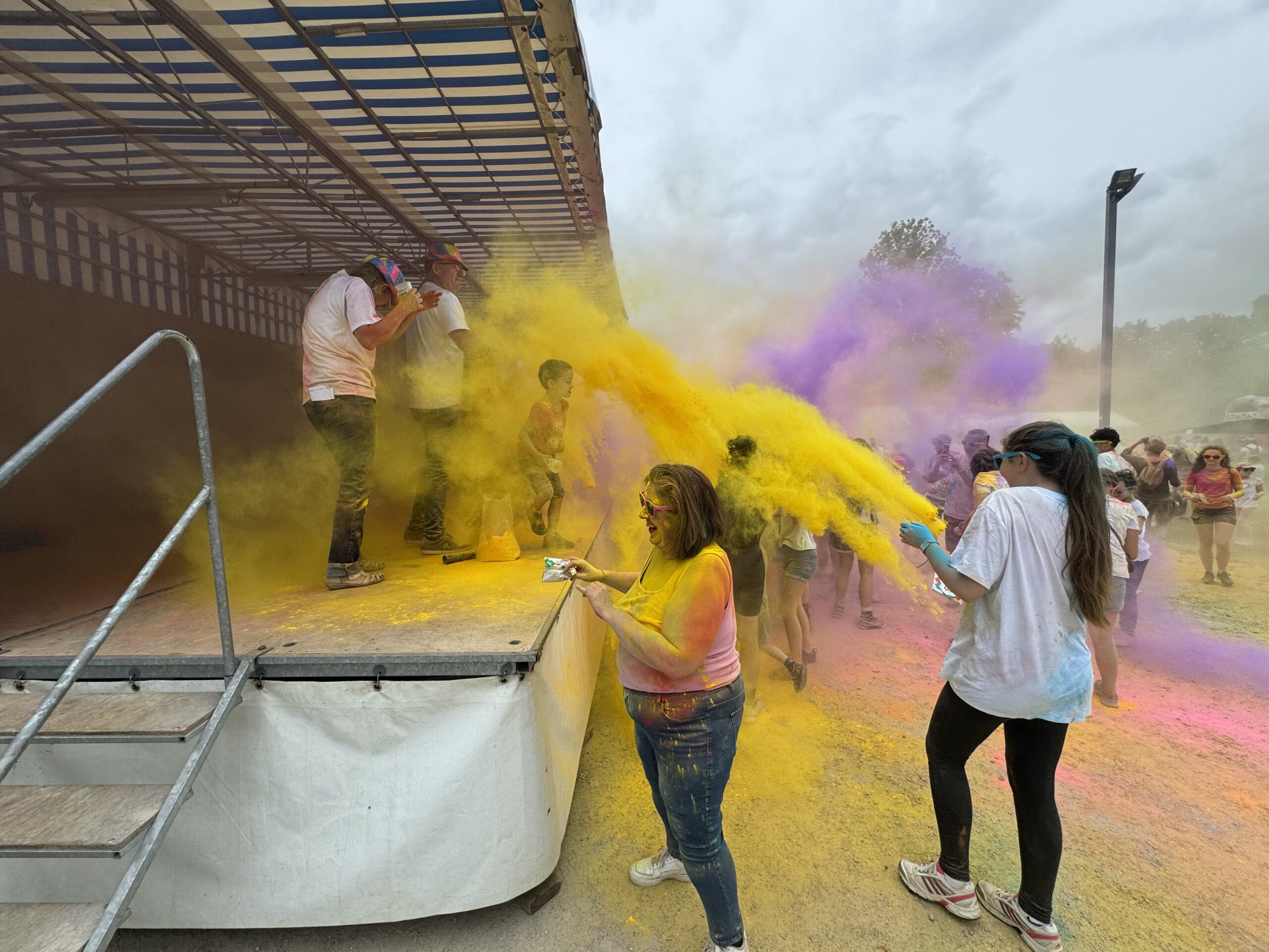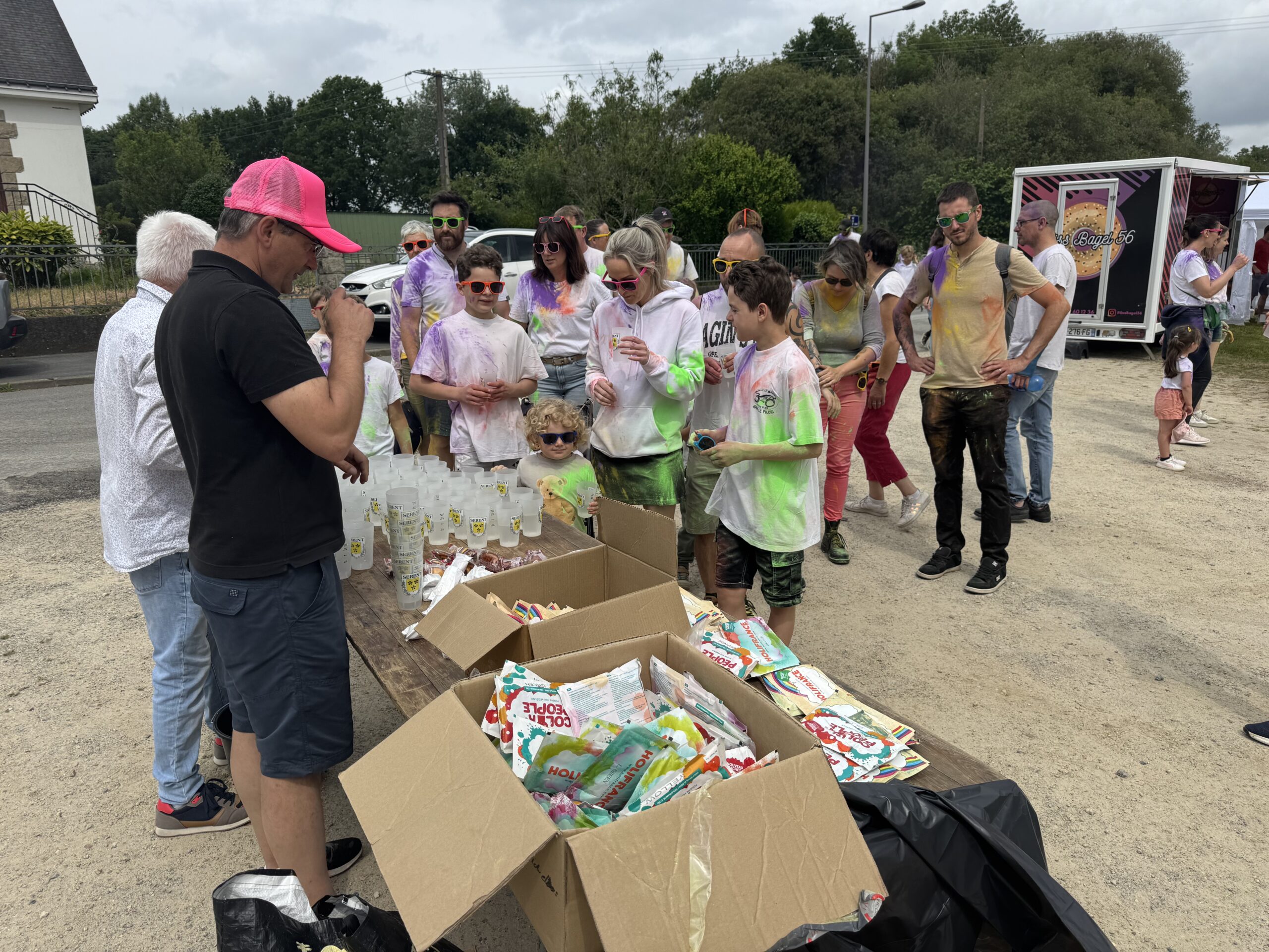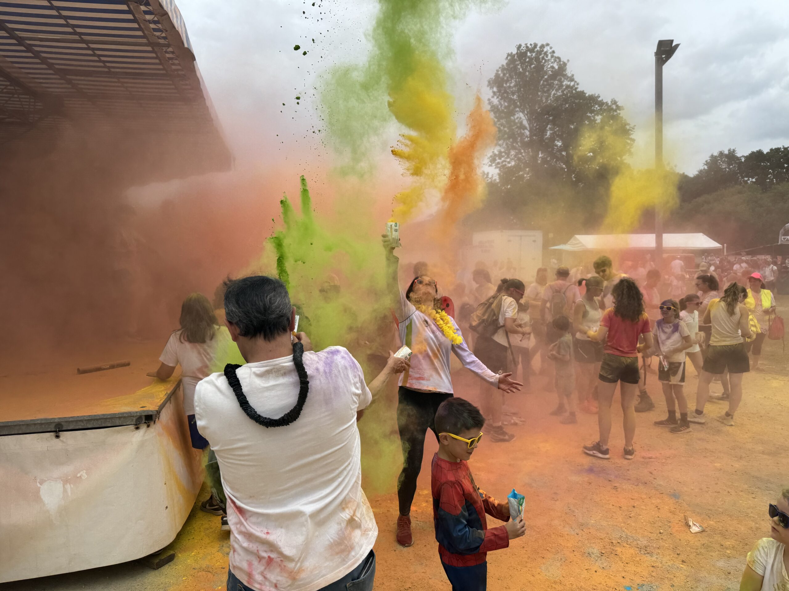 Mais l’évènement majeur de cette journée festive reste la balade colorée initiée par Sérent en son temps. Le principe est simple : les participants s’engage dans un parcours au cours duquel, des bénévoles les attendent pour les asperger de poudre colorée. Ce dimanche matin, une nouveauté était proposée avec la possibilité de parcourir deux circuits, l’un de 5 km et l’autre du double. Mais au final, tout le monde se retrouve sur le site du festival pour un grand lancer de poudre, apothéose de cette balade. L’après-midi est consacrée aux autres animations du F’Estival : structures gonflables, jeux en bois, échiquier géant avec un spectacle de la Compagnie « Les Moineaux Chanteurs » en milieu d’après-midi.