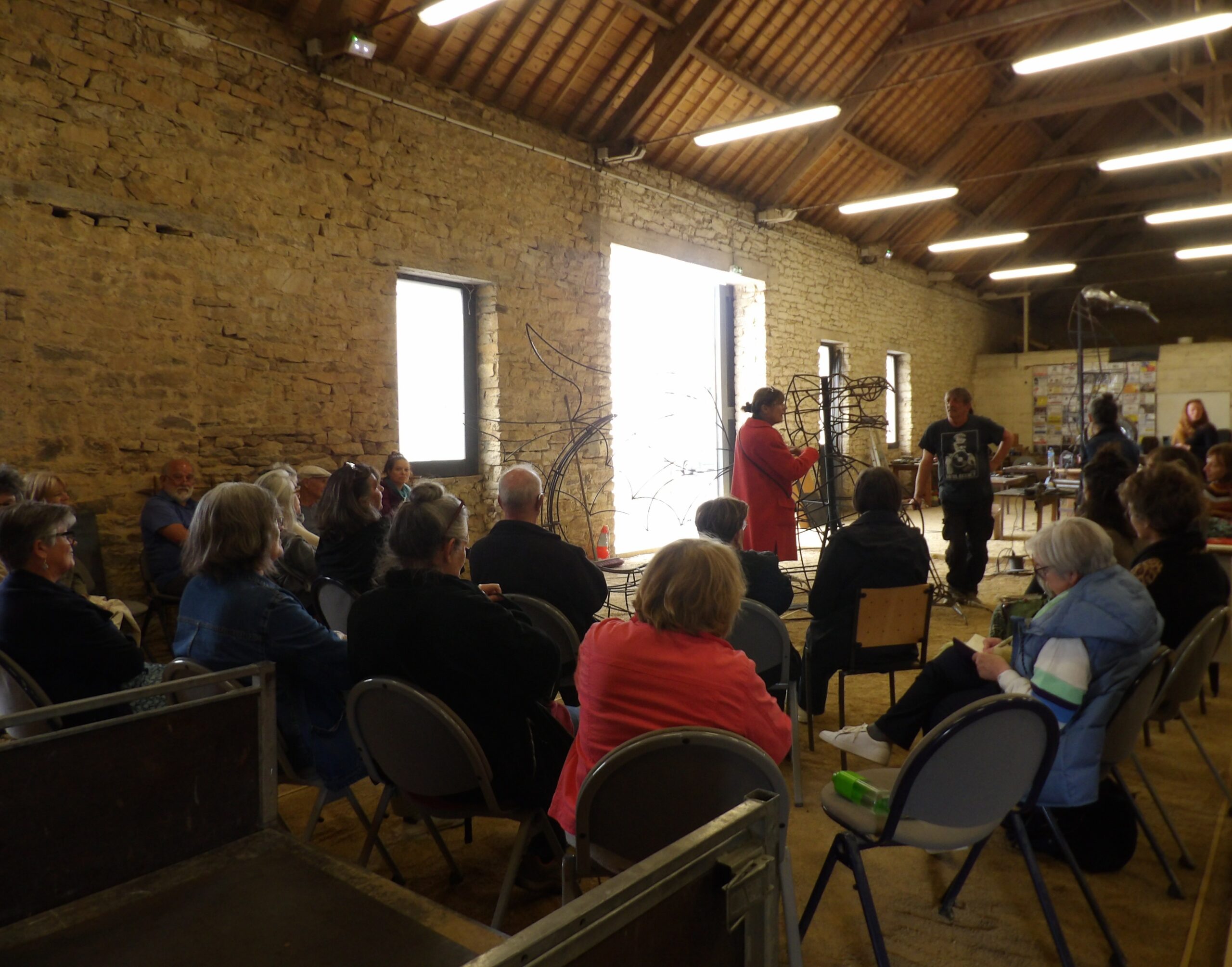 « On cherche des gens motivés qui ont envie de participer », lance Jean-Michel Rubio. Ce mercredi 4 juin 2025, cet artiste toulousain, et Jean-Luc Mas, son collaborateur soudeur, ont accueilli le public dans l’atelier Bédard, situé à Questembert. Jean-Michel Rubio a présenté le projet de 4 sculptures livresques qui comprend un dragon, un hippocampe, un dolmen et un arbre. C’est la suite d’un appel à projet émis en janvier dernier par la ville de Questembert. Sur les 71 dossiers reçus, c’est l’artiste toulousain qui a été choisi à l’unanimité. Par ailleurs, « ces formes ont été choisies pour représenter la région et ses mythes », explique-t-il. Elles seront exposées pendant 3 mois, à partir du mois de juillet, dans la commune. Lors de ce rendez-vous également animé par Sylviane Texier, adjointe à la culture, et Anaïs Briand, assistante culturelle, un appel à la participation pour la réalisation de ces sculptures ornées de livres a été émis. Une vingtaine de personnes étaient présentes, toutes très attentives et participatives. Et, déjà, quelques-unes se sont proposées pour apporter de leur aide.