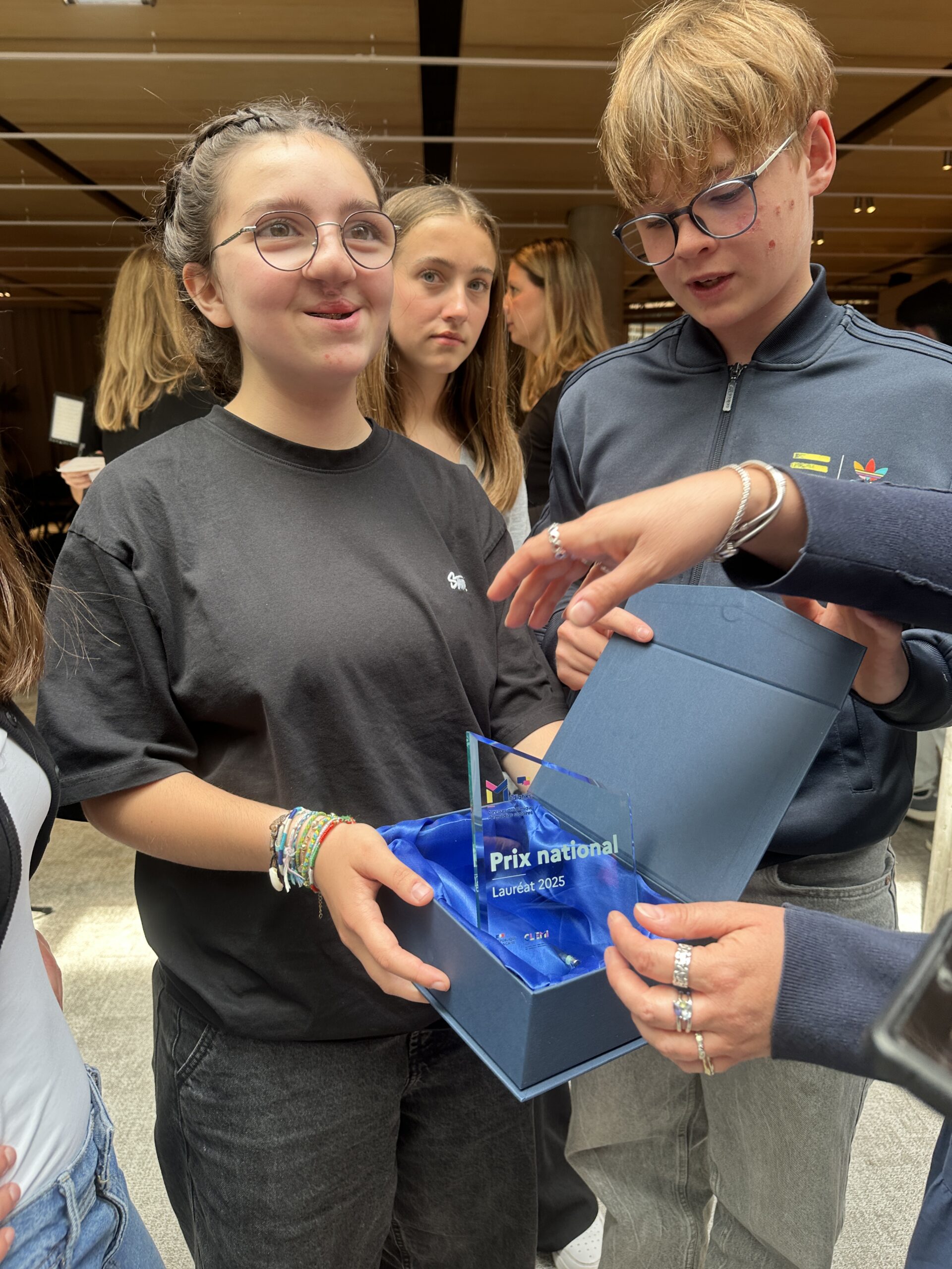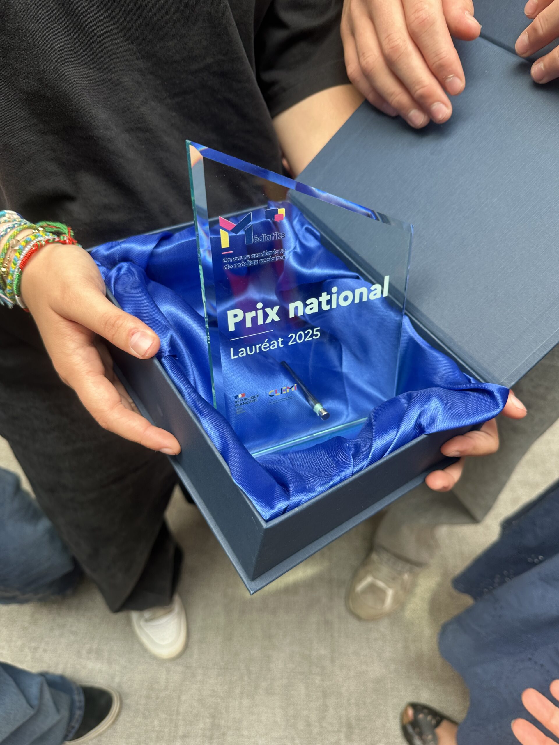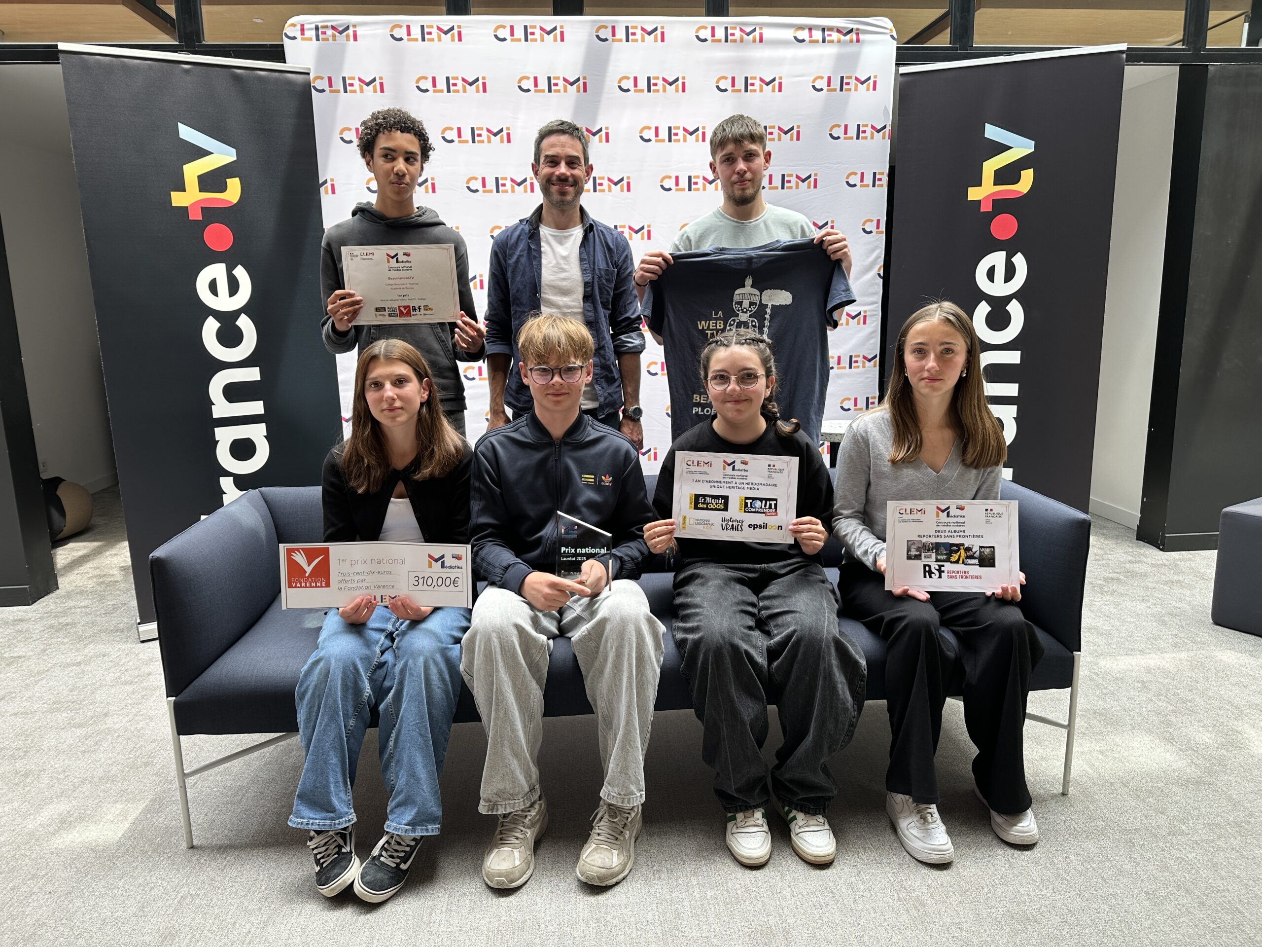 C’est avec une grande fierté que Les élèves de Beaumanews TV du collège Beaumanoir ont reçu le prix mediatiks national 2025 dans la catégorie webtv des mains de Julien Pain, journaliste à France TV. Le jury a salué la qualité de leur reportage consacré à M Bergamasco, qui a bien retranscrit l’émotion de cet échange.