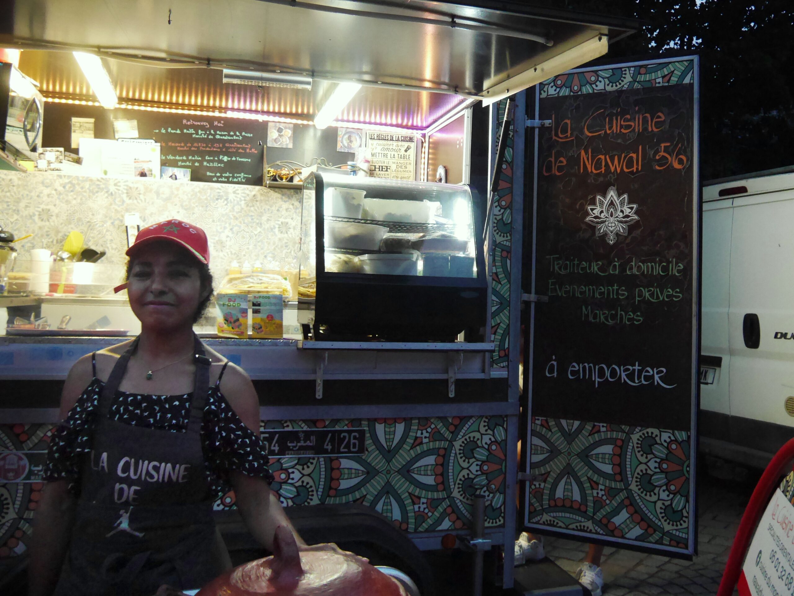 Pour Nawal de la cuisine de Nawal la soirée a mis un peu de temps à démarrer.”C’est toujours un peu le jeu du loto, on ne sait pas ce qui va se passer!” remarque-t-elle au sujet de l’affluence qui fluctue selon les circonstances (météo, emplacement…).