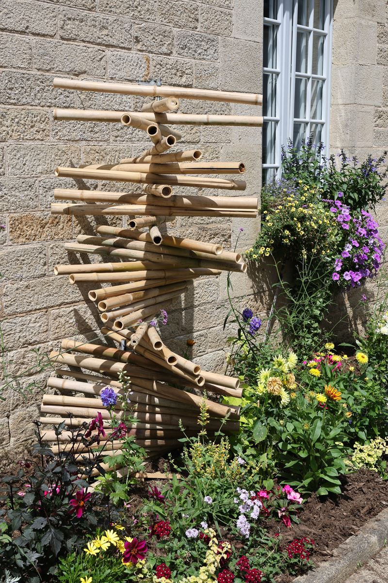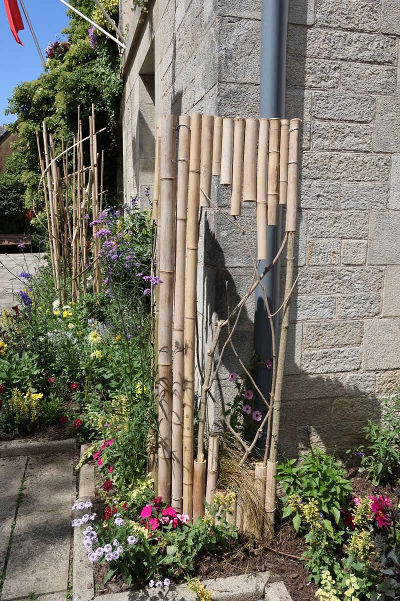 La commune de Josselin s’investit dans le développement du fleurissement qualitatif depuis 1998. En 2020, son embellissement floral lui a valu d’être enfin labellisée Villes et villages fleuris, 4 fleurs, mais aussi de décrocher le prix Zéro phyto. Quatre fleurs, c’est un label de prestige que la municipalité veut conserver. Pour cela, les service espaces verts et techniques sont à l’œuvre toute l’année pour faire de Josselin une ville fleurie et accueillante pour les touristes, mais aussi un lieu plaisant pour ses habitants. Cette année, ces services ont travaillé main dans la main pour concevoir une mise en volume du fleurissement grâce à des structures en bambou « made in Josselin ». La bambouseraie du bois d’amour leur a fourni la matière première. Restait aux agents de la ville d’y apposer leur créativité. Le résultat est remarquable allant jusqu’à une mise en lumière sur la place de la mairie, un plus pour les soirées de Festiv’été. Nicolas Jagoudet le maire est satisfait du travail réalisé. « Nous donnons carte blanche à Patrice Noël, responsable des services techniques et espaces verts pour le fleurissement de la commune avec comme directive le respect du label 4 fleurs. Le travail réalisé cette année sur les différents sites de la communes est remarquable et se dénote d’un fleurissement classique », estime le maire. Cet été, promeneurs et touristes pourront apprécier les structures de bambou qui cohabitent avec les fleurs, des œuvres d’une grande qualité visibles au lavoir, au square de Tard, place de la mairie, place de la Duchesse Anne, place Saint Martin et place Saint Nicolas. Les parcs et jardins et le fleurissement contribuent à la qualité de vie de la commune, leur gestion et leur entretien est une mission quotidienne du service technique dirigé par Patrice Noël. « Nous travaillons de plus en plus vers un fleurissement éco responsable avec l’utilisation de plantes vivaces, un fleurissement durable auquel nous ajoutons des annuelles dont la majeure partie sont issue de nos serres. Chaque année nous faisons pousser plus de 3500 pieds de plantes qui servent au fleurissement de la commune mais aussi au rempotage pour les particuliers. Chaque année nous essayons de nouvelles variétés en dirigeant nos choix vers des plantes moins gourmandes en eau. Pour l’arrosage quotidien nous disposons d’une réserve d’eau de 129 m3 et privilégions les plantations en pleine terre pour amoindrir les besoins en eau… Pour la cohérence des plates-bandes, nous optons sur l’association de trois couleurs », détaille ce dernier.