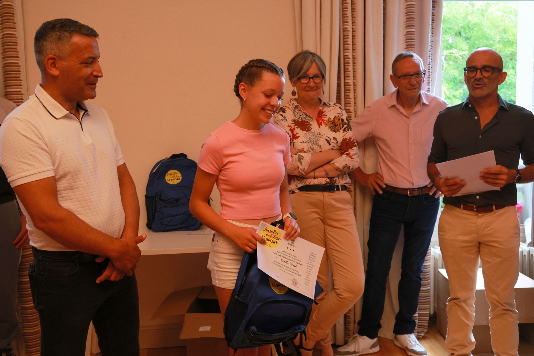 Samedi matin la municipalité de Josselin a organisé sa seconde cérémonie « Josselin célèbre le sport » en mettant à l’honneur ses jeunes sportifs, une cérémonie mise en place l’an dernier dans le cadre des Jeux Olympiques. Cédric Nayl, adjoint à la vie sportive a orchestré cette remise de diplômes, soulignant en ouverture que ce choix avait été établi en collaboration avec les présidents d’associations, clubs sportifs et directeurs des établissements scolaires josselinais. Les lauréats de l’année ont reçu de la part de la municipalité un diplôme « sportifs josselinais de l’année » et un sac à dos à l’effigie de la cérémonie.