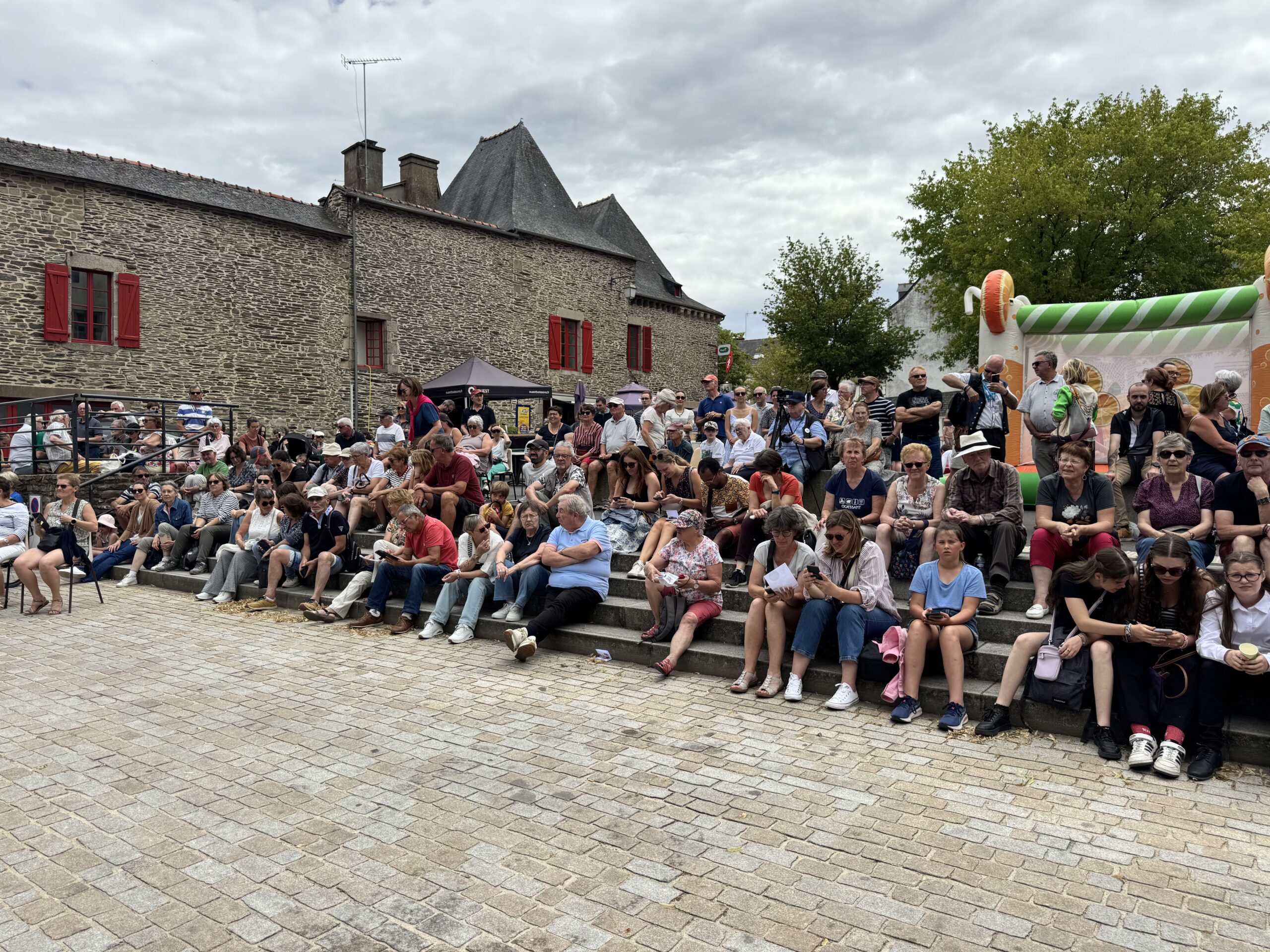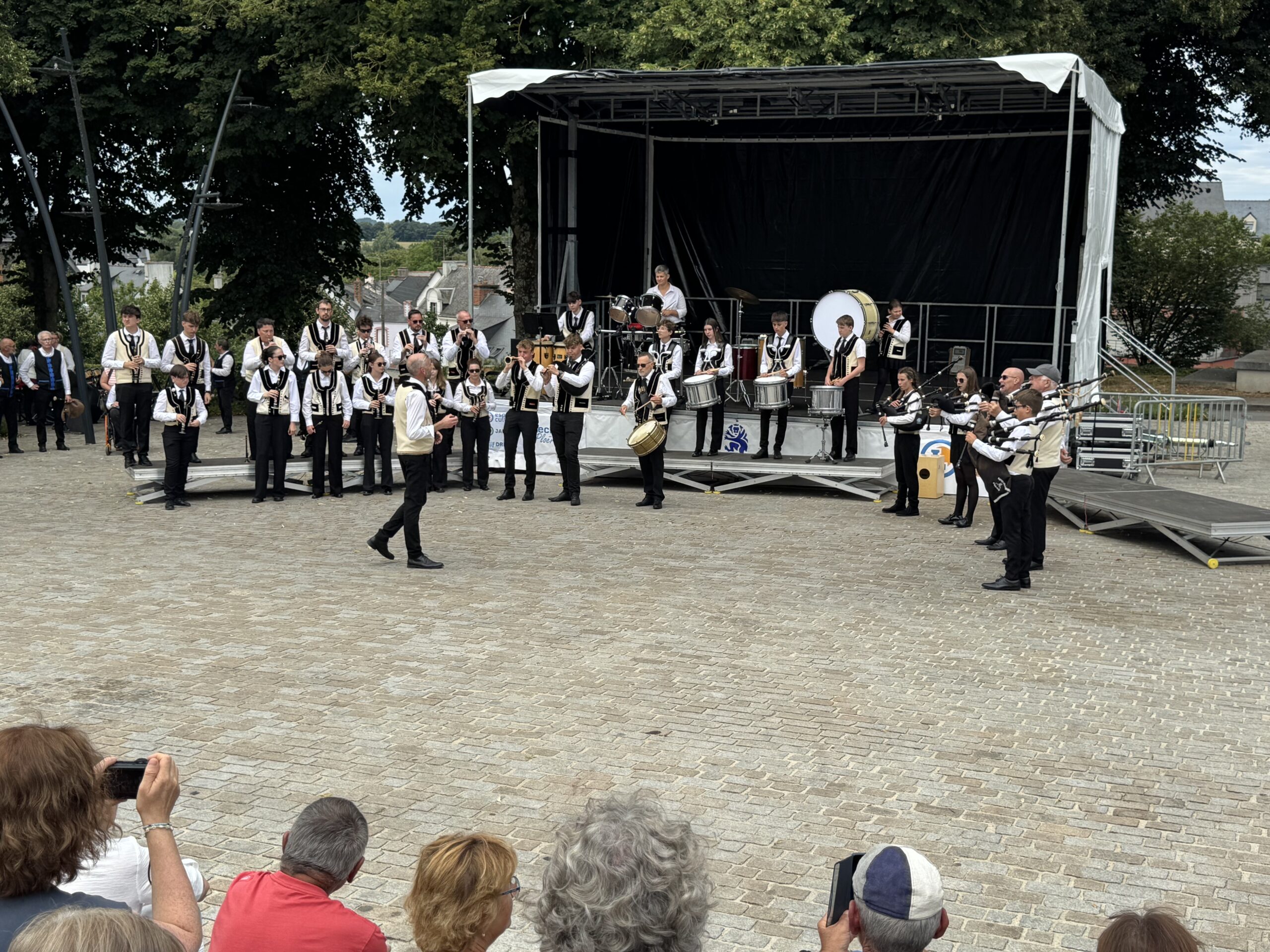 Pour ce 2è et dernier samedi d’animations destinées à célébrer les 1500 ans de la ville, 15 bagadoù se retrouvent sur la place du marché pour un concours qui n’en est pas un. En effet la fédération des sonneurs, Sonerion qui organise traditionnellement les concours officiels confrontée à des difficultés financières a décidé de faire une pause et de ne pas en organiser cet été. Mais c’est malgré tout en partenariat avec Sonerion que la ville de Ploërmel a organisé cette rencontre ce samedi 5 juillet. Et ainsi Ploërmel s’inscrit ainsi dans le calendrier officiels des concours. Elle recevra l’année prochaine encore ces bagadoù, ou plus précisément les bagadig, c’est à dire les écoles de bagad, cette fois en compétition officielle. C’est ce qu’a précisé Alain Hervé, conseiller municipal de Ploërmel, en charge de la culture.