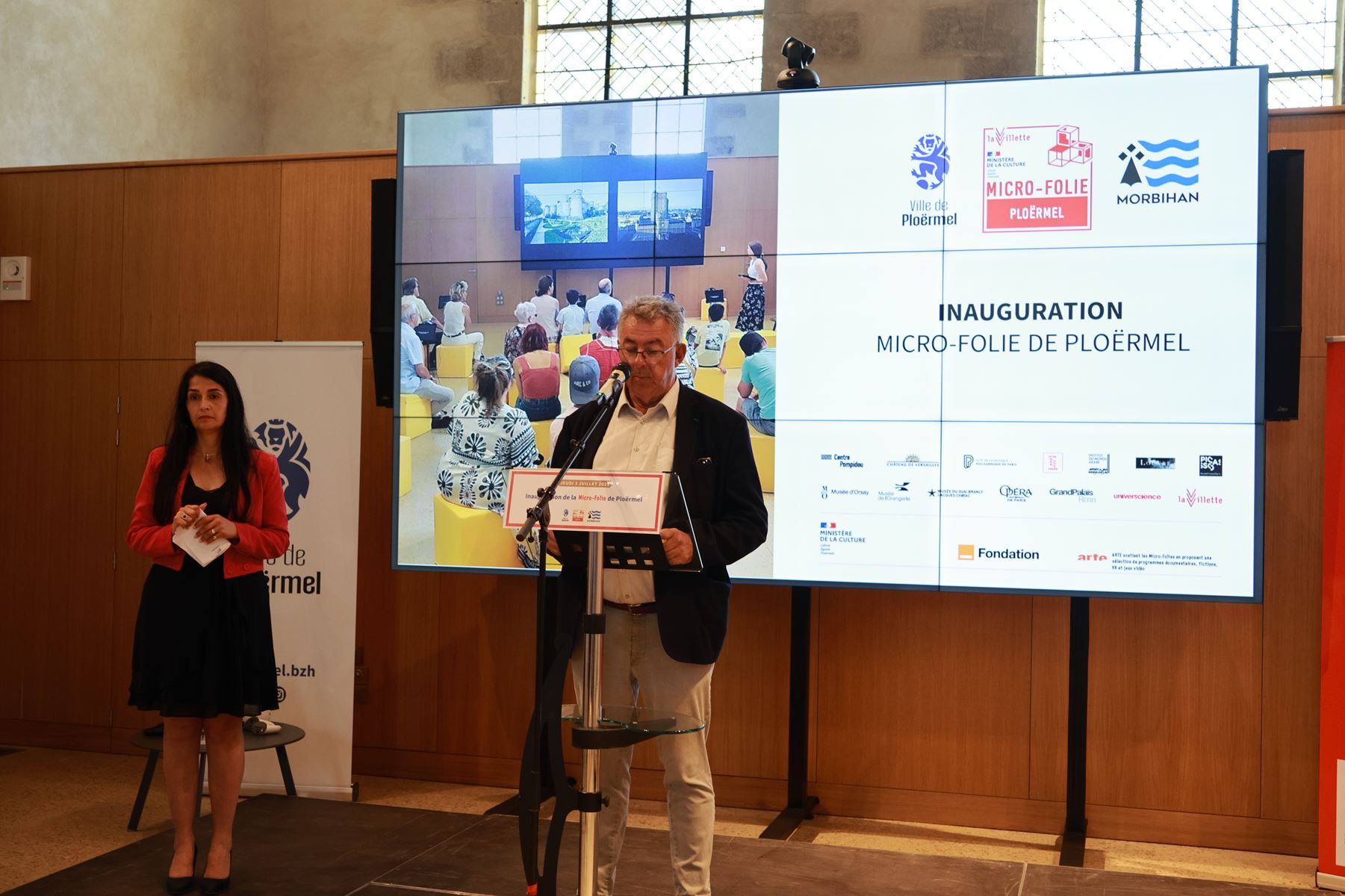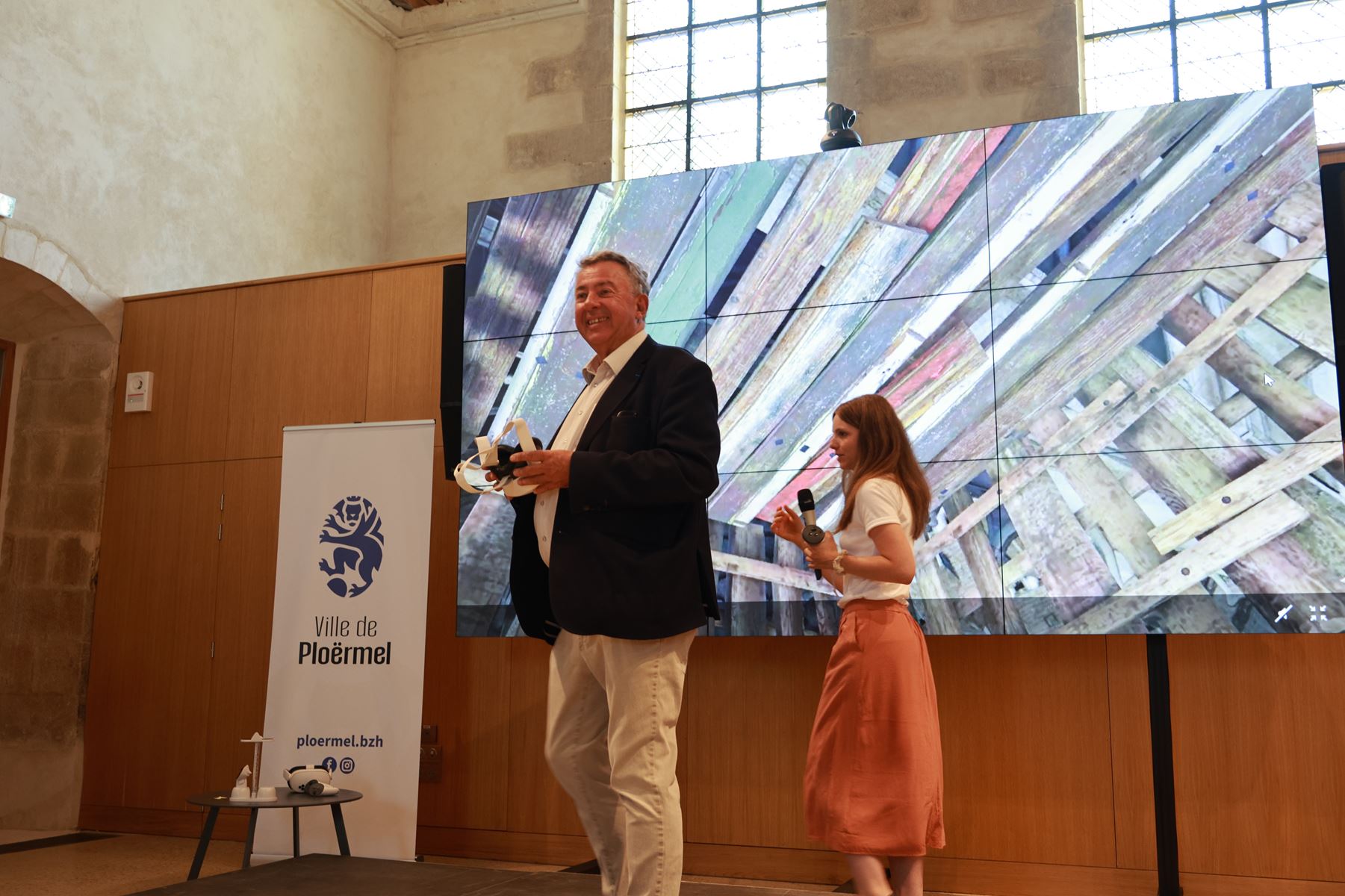 Mercredi en fin de matinée Patrick Le Diffon maire de Ploërmel a inauguré le dispositif culturel « Micro-folie » implanté à la chapelle des Carmélites de Ploërmel et ouvert au public depuis le mois de mai. Le projet Micro-Folie est un dispositif culturel de proximité porté par le ministère de la Culture et coordonné par La Villette en lien avec 12 établissements nationaux fondateurs. Son but est d’offrir à tous, un accès ludique aux œuvres des plus grands musées nationaux grâce au Musée numérique, cœur du dispositif. Celui-c- présente plus de 3 200 œuvres numérisées, issues du réseau de plus de 300 établissements culturels partenaires qu’ils soient nationaux, régionaux et internationaux. Durant l’inauguration Patrick Le Diffon a pu tester le système du casque de réalité virtuelle et découvrir Notre Dame de Paris, au XVIIIème siècle. « Donner l’accès à la connaissance, c’est ce que propose Micro-Folie, elle met à portée de main plus de 1500 ans, d’art, de culture, de science, d’histoire…Un lieu pour apprendre, découvrir s’émerveiller gratuitement, librement », a souligné le maire. La Micro folie mettra en avant un thème par mois. Ploermel est la 4è   Micro-Folie en Morbihan et la 14è en Bretagne. Ce dispositif ne se contente pas de mettre à disposition de tous, les richesses des musées, mais il ouvre aussi les portes vers d’autres horizons, concerts, théâtre…