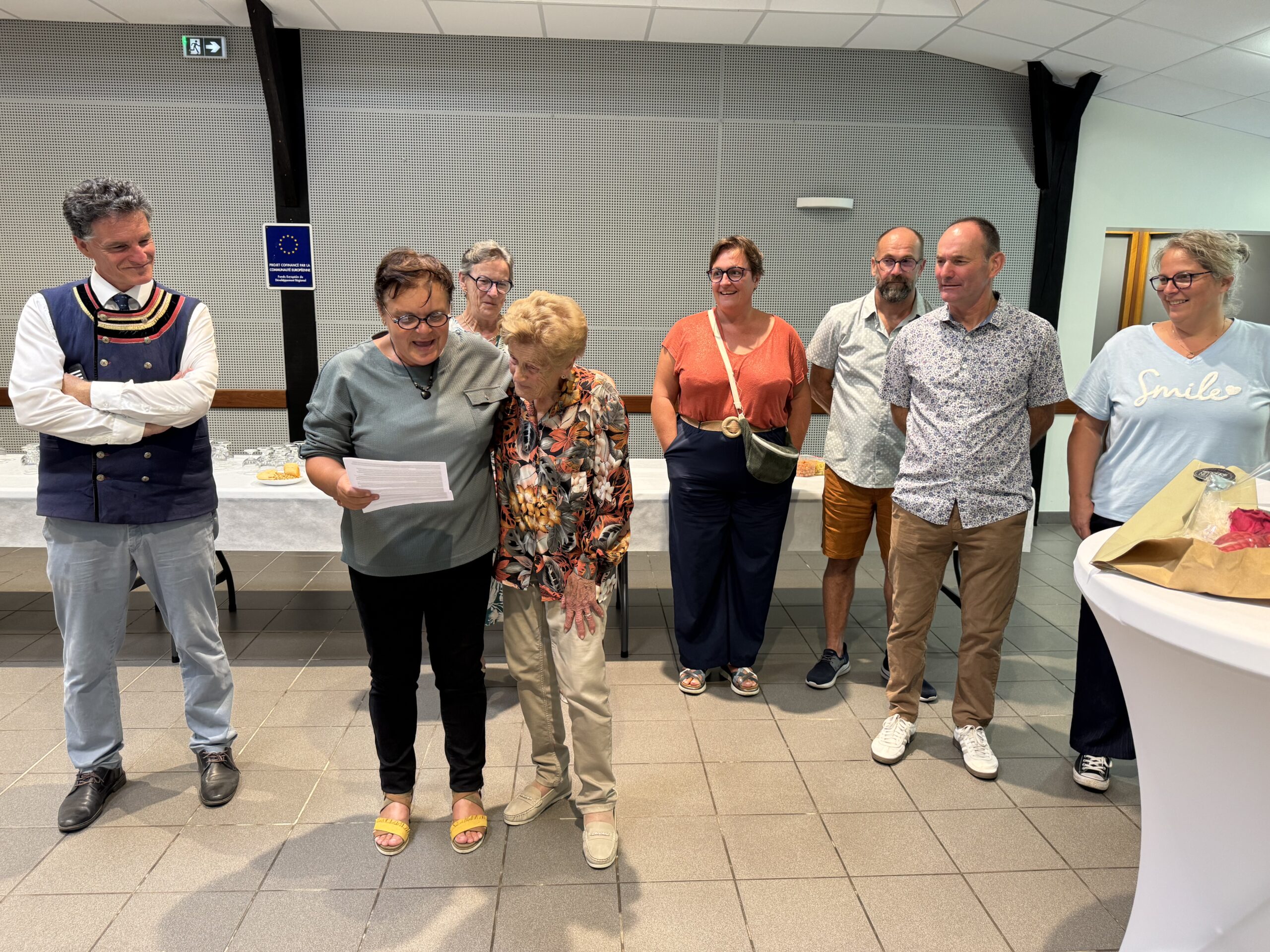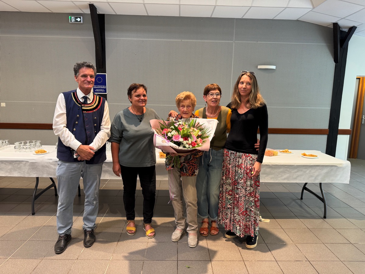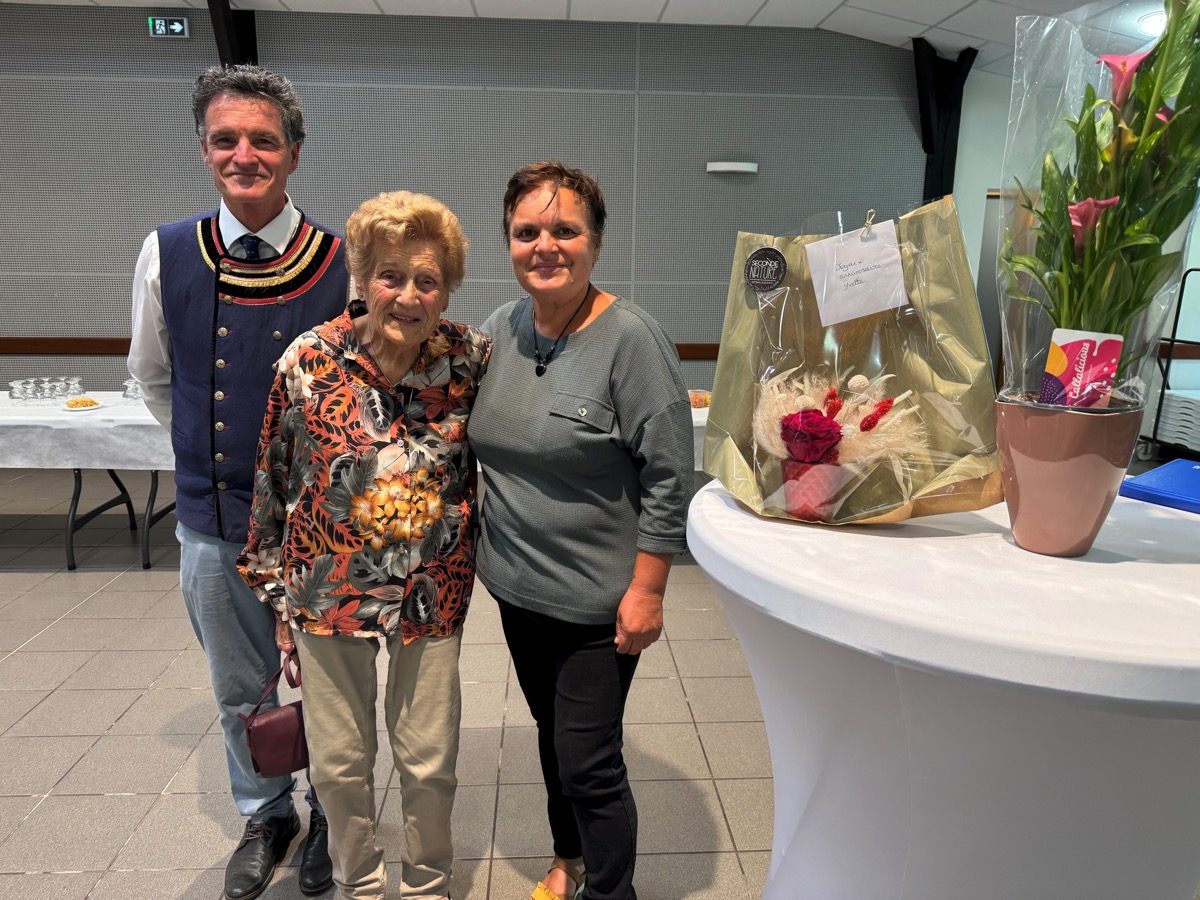 Gwen Guillerme a dit « la profonde admiration » de la municipalité pour cette première centenaire dont elle souligne la dignité, la force de caractère, la coquetterie. Elle a rappelé la passion d’Yvette pour le jardinage et les fleurs, mais aussi son goût pour peindre et repeindre sa maison dont elle prend grand soin. « Vous êtes une source d’inspiration pour nous… », a ajouté Gwen Guillerme. Les élu(e)s ont remis des bouquets à cette centenaire attachante qui a poursuivi les échanges avec les uns et les autres en partageant un riche moment de convivialité.