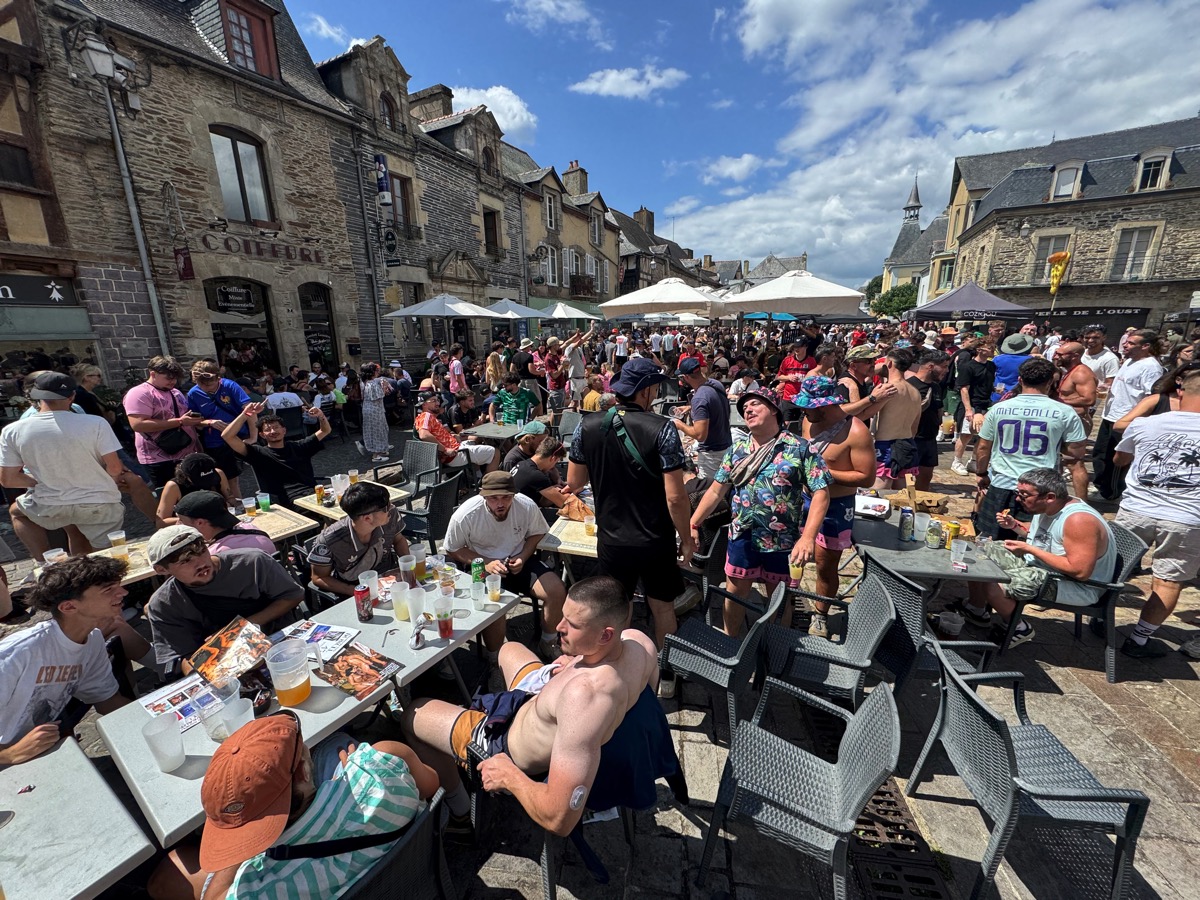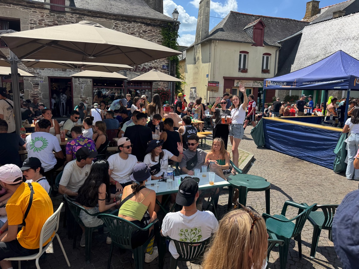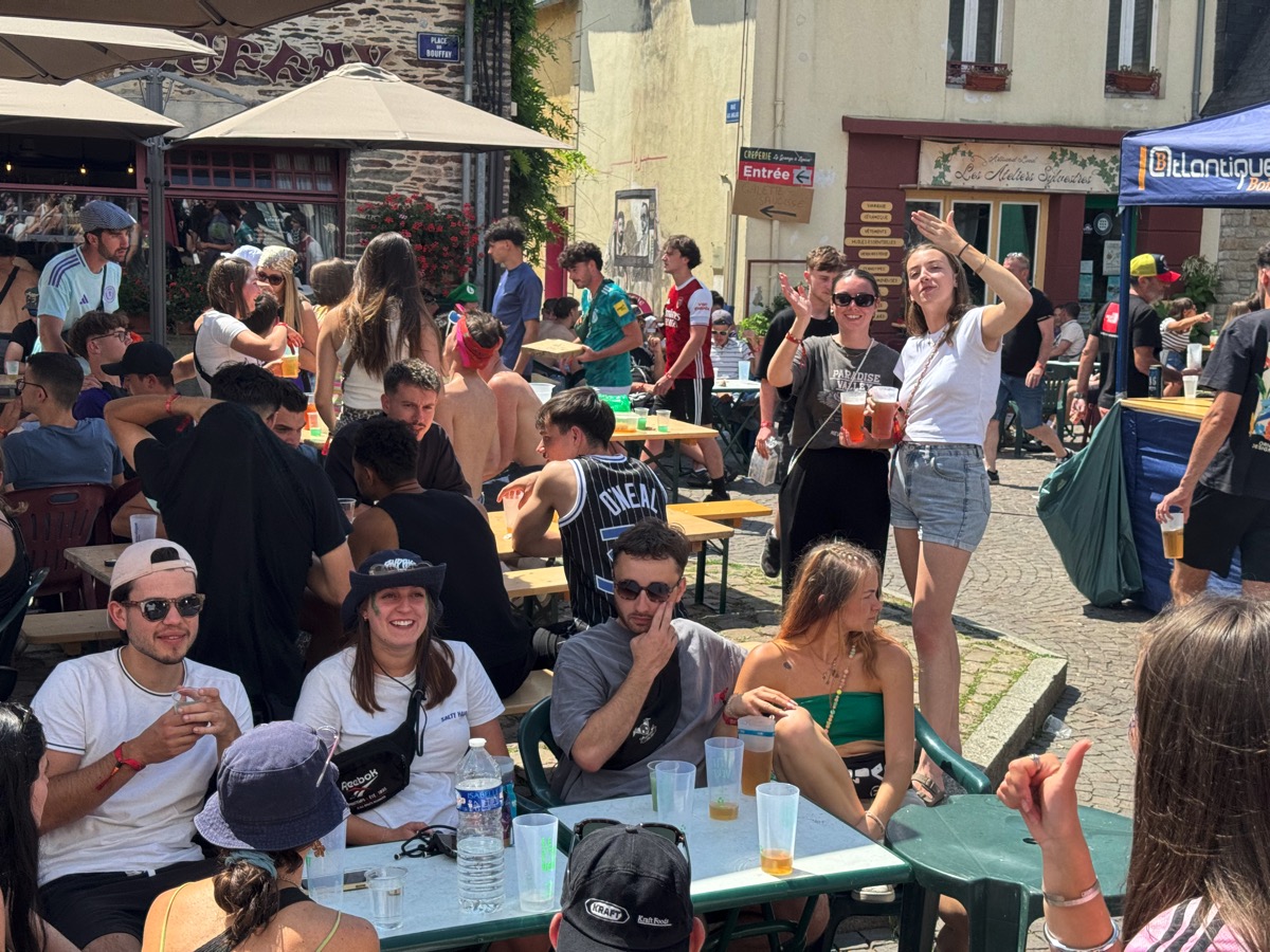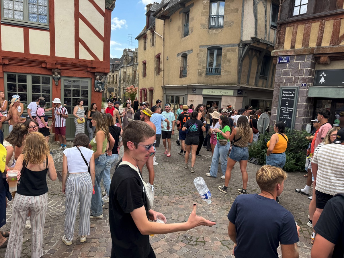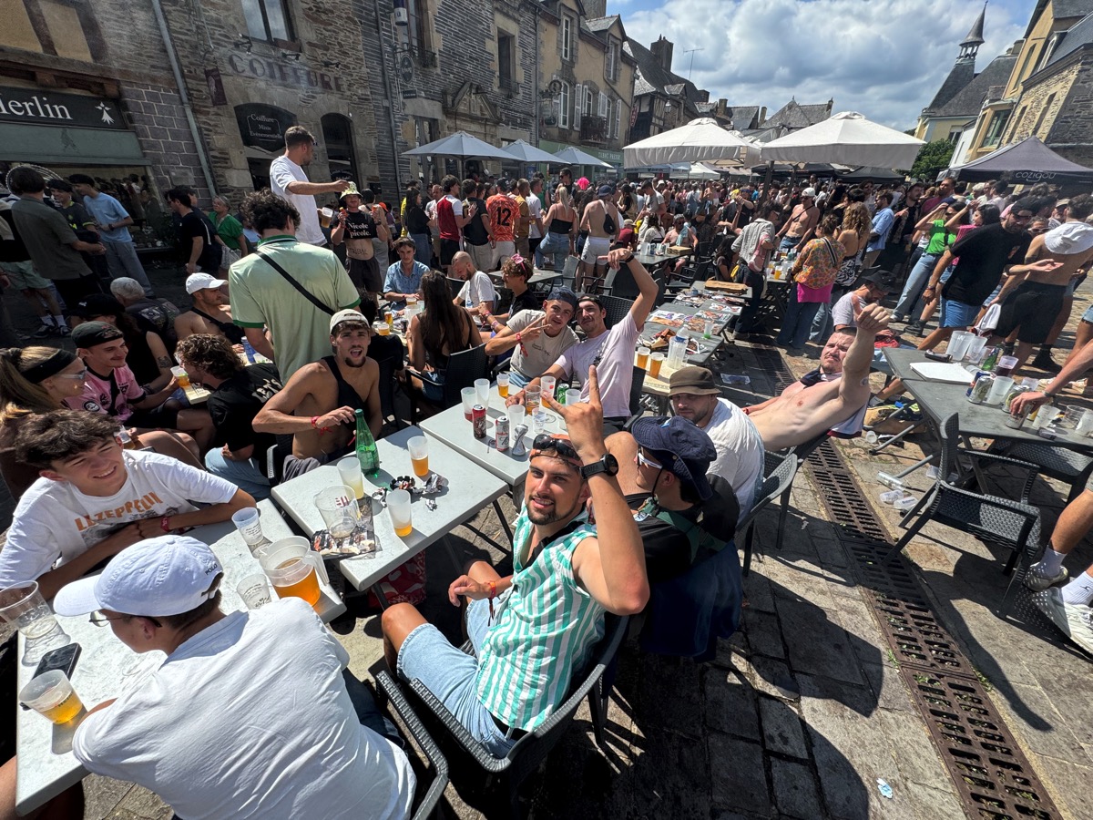 C’est presque un rituel. Chaque année, entre les deux soirées de vendredi et samedi, les festivaliers qui fréquentent le Pont du Rock se retrouvent dans les bars du centre ville et notamment de la place du Bouffay. Tradition respectée encore pour cette édition 2025, mais avec quelques nuances. Car de l’avis général, la foule était beaucoup moins dense dans le centre ville que les autres années, sans doute le reflet d’une fréquentation elle aussi moins importante qu’attendue au festival…