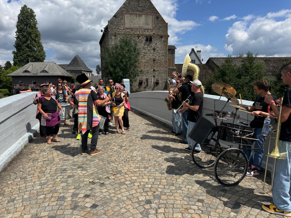 Pour distraire tout ce joli monde, la Batukacouac, le groupe de percussions afro-brésiliennes de Sérent s’est frayé un chemin dans le centre-ville. Des rythmes apparemment bien adaptés à la situation…