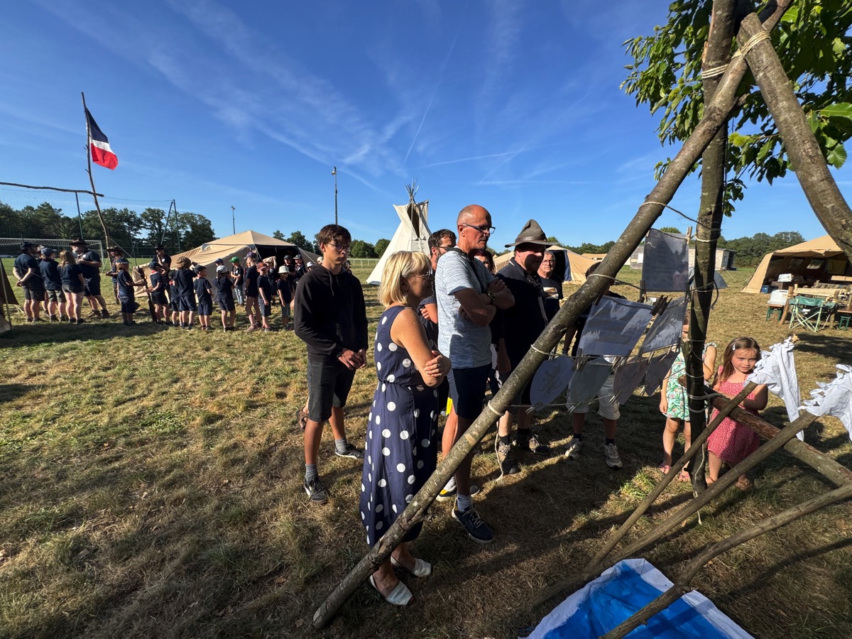 Pendant trois semaines le petit village de Cournon va résonner des rires et des chants d’une soixantaine de tentes dressées pour accueillir 80 jeunes et adultes venus vivre une aventure en plein air au rythme de la vie scoute. Ce camp, organisé par les Scouts et Guides Laïques (SGL), marque une étape importante pour cette association fondée en avril 2024 et déjà en plein essor. Ce jeudi soir, le maire de Cournon a officiellement inauguré l’ouverture de ce camp estival, accompagné d’élu(e)s et d’habitant(e)s invité(e)s à venir en découvrir le fonctionnement et l’organisation. Ils ont eu droit à une visite guidée et à assister à la levée des couleurs, un moment fort de la vie scoute.