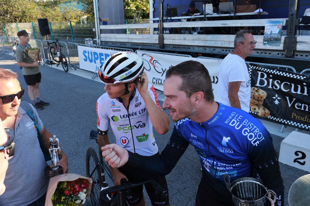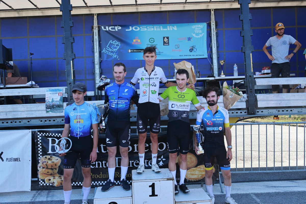 A ce moment de la course, comme bien souvent ici, une arrivée au sprint est envisagée mais dans le haut de la côte finale, deux hommes à la bataille avaient pris les devants et c’est au sommet qu’Augustin Le Galudec s’affranchit d’Olivier Maudouit de l’ASPTT Rennes pour s’imposer et décrocher sa première victoire de la saison. Pour la troisième place c’est un mano a mano entre trois coureurs. La dernière marche du podium revient à Baptiste Allain de l’OC Locminé. Ewen Dahirel (18è) est le premier Josselinais.