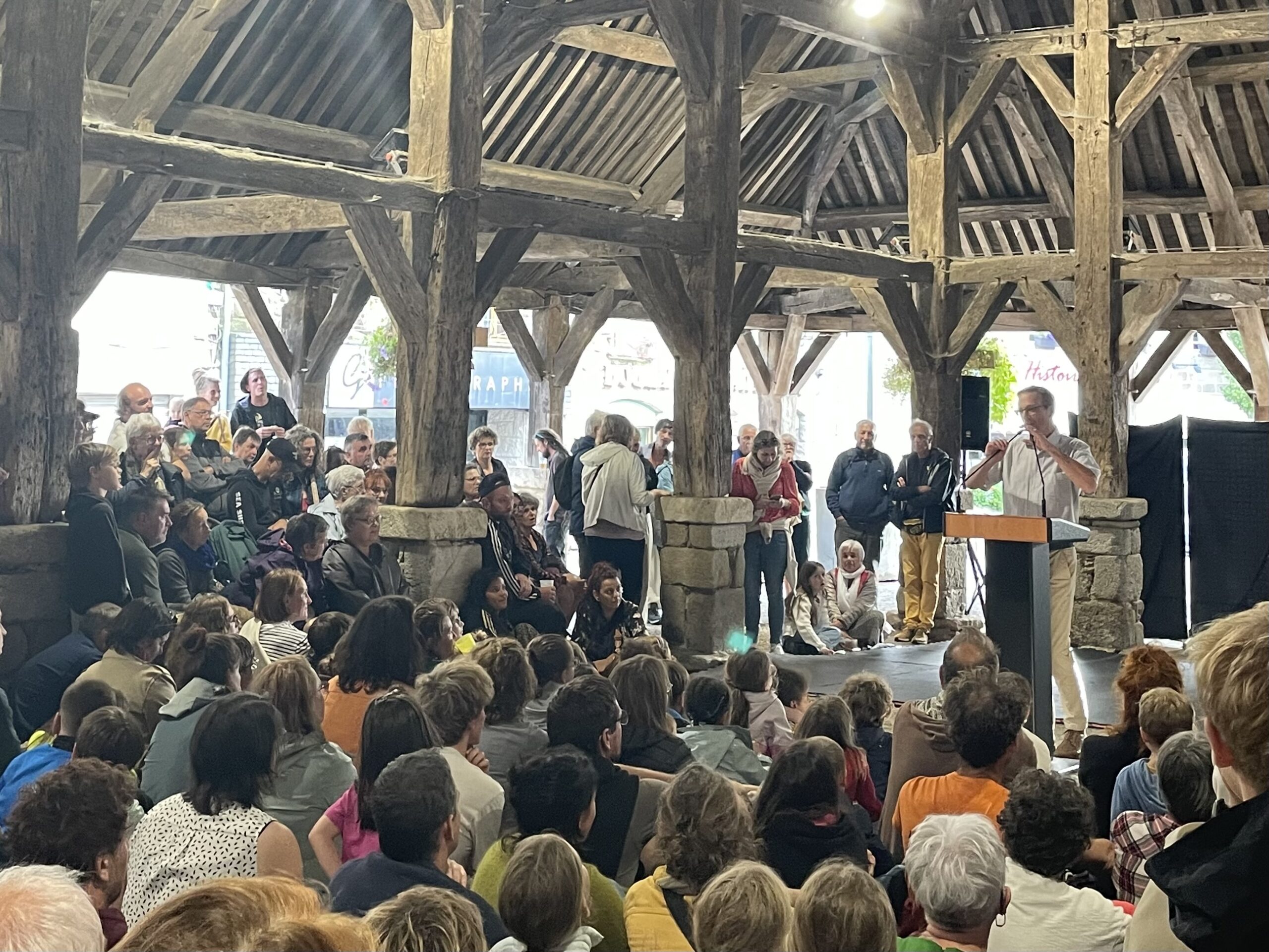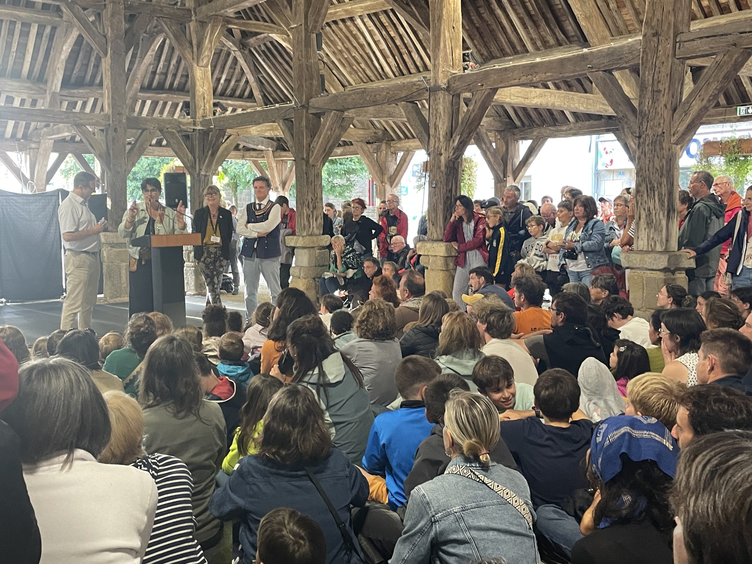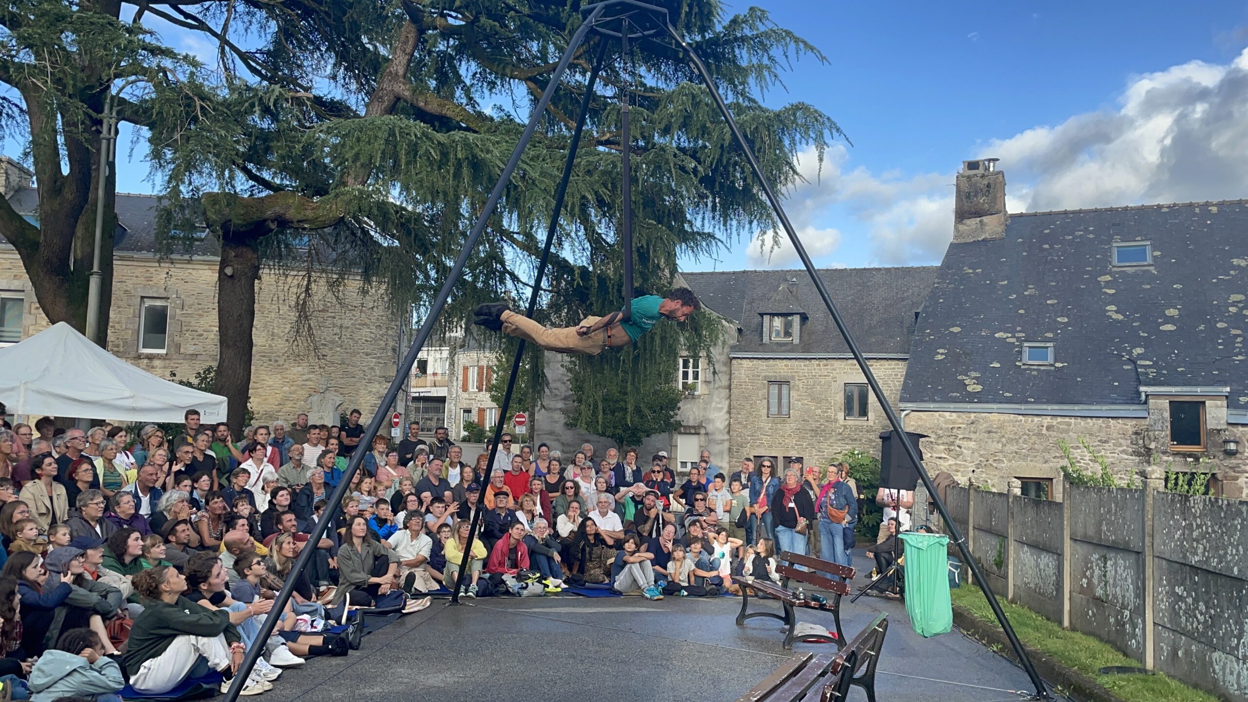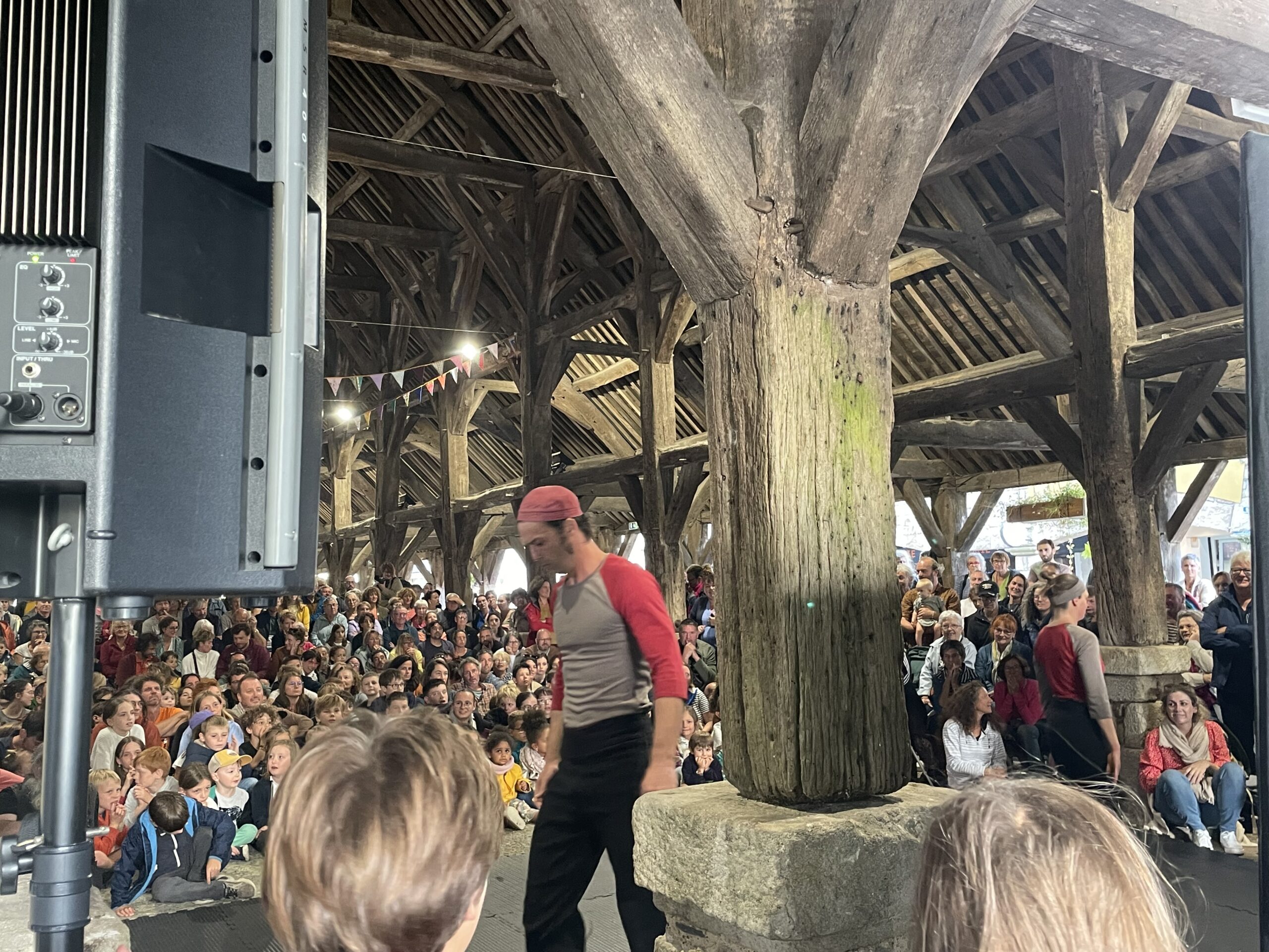 « Il pleut, on va pas le faire. Il pleut, on va le faire », résume Boris Le Maire, maire de Questembert dans sa prise de parole. La munipalité a finalement pris le parti pris de maintenir le festival quoiqu’il en pleuve! Ce choix souligne l’engagement de l’équipe municipale et bénévole dans la volonté de proposer « une fête partagée, gratuite quand elle le peut », indique le maire. Dans le spectacle de 18h, l’intervenant de la compagnie La Dépliante évoquait le rôle crucial du monde associatif dans son métier. Ici c’est la municipalité, accompagnée par les associations locales qui organise.