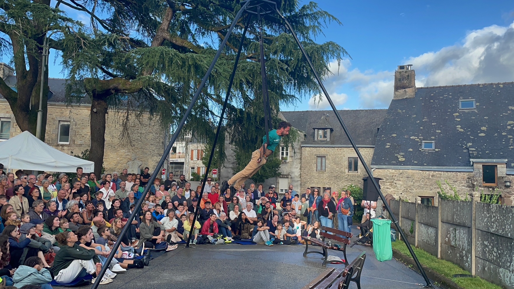 La fin de journée du samedi a été particulièrement arrosée alors que la compagnie Les Sanglés et En corps en l’air, tournoyaient dans le ciel dans leur spectacle Gagarine is not dead.