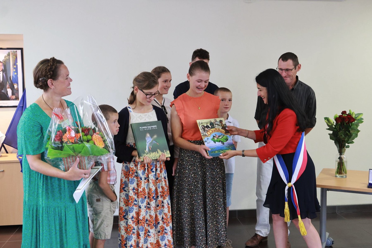 La municipalité de Campénéac a organisé une cérémonie pleine d’émotion dans la salle du conseil municipal, ce samedi 30 août. Entourée de son mari Jérôme et de leurs six enfants, Dominique Orjubin a reçu la médaille de l’Enfance et des Familles, remise au nom du préfet du Morbihan par la maire et conseillère départementale, Hania Renaudie.