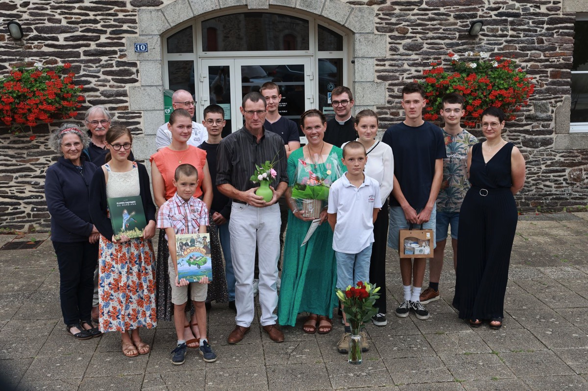 La maire a ensuite retracé le parcours du couple Orjubin, de leur rencontre à leur mariage, qualifié « d’évidence » par Jérôme. De cette union sont nés six enfants : Mathilde (2007), Pierre-Judicaël (2009), Louise (2010), Blandine (2012), Joseph (2014) et Barnabé (2016). Une vie de famille intense et riche, que la cérémonie a permis de mettre en lumière.