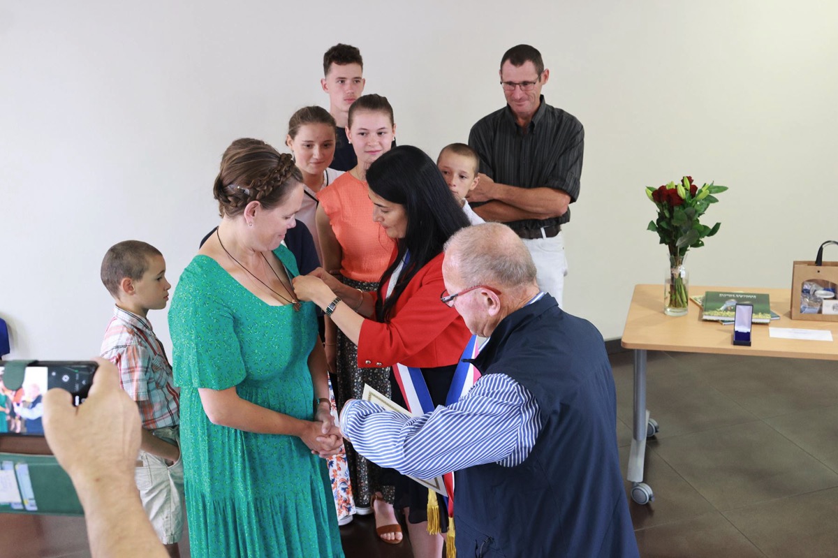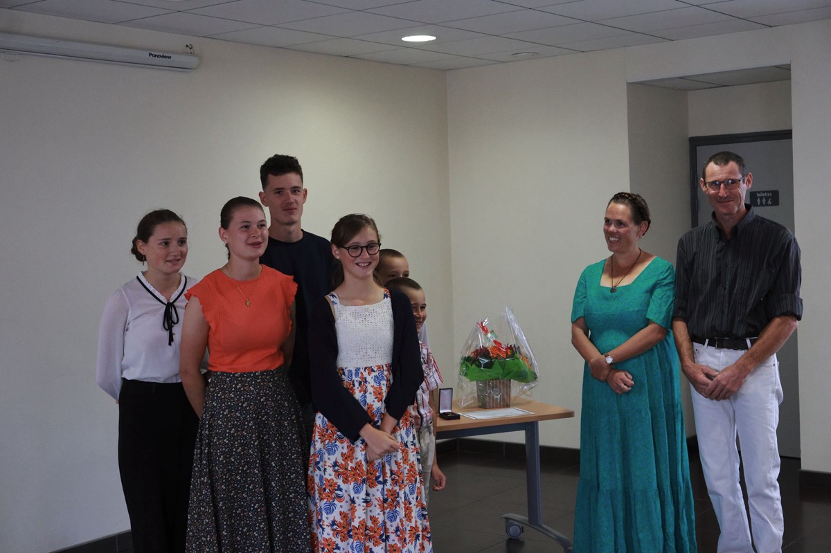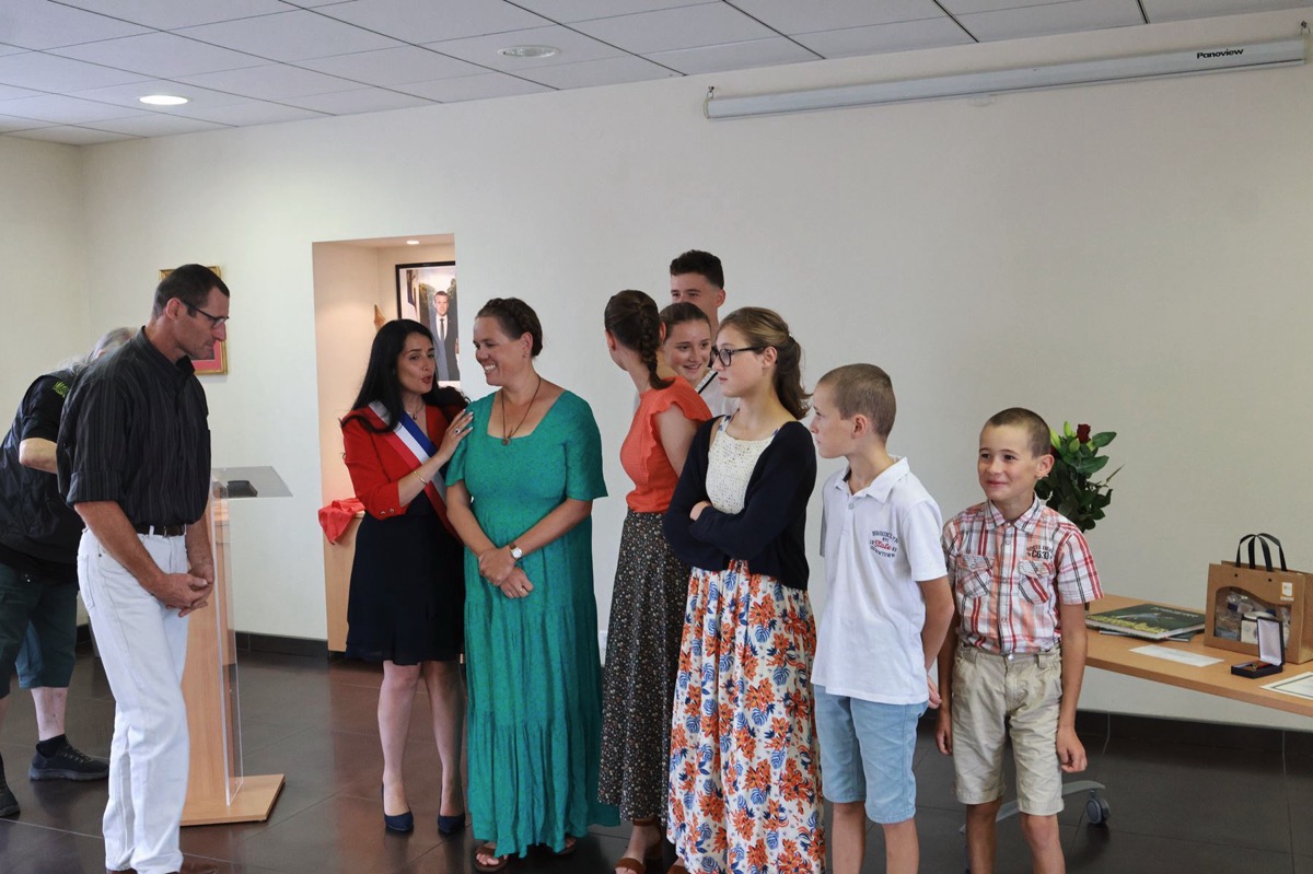 Très émue, Dominique a reçu cette distinction sous les applaudissements de ses proches et des élus présents. Son mari Jérôme n’a pas manqué de témoigner toute son admiration : « Je suis ému de l’amour et de l’énergie que tu as donnés pour bâtir cette vie de famille. »