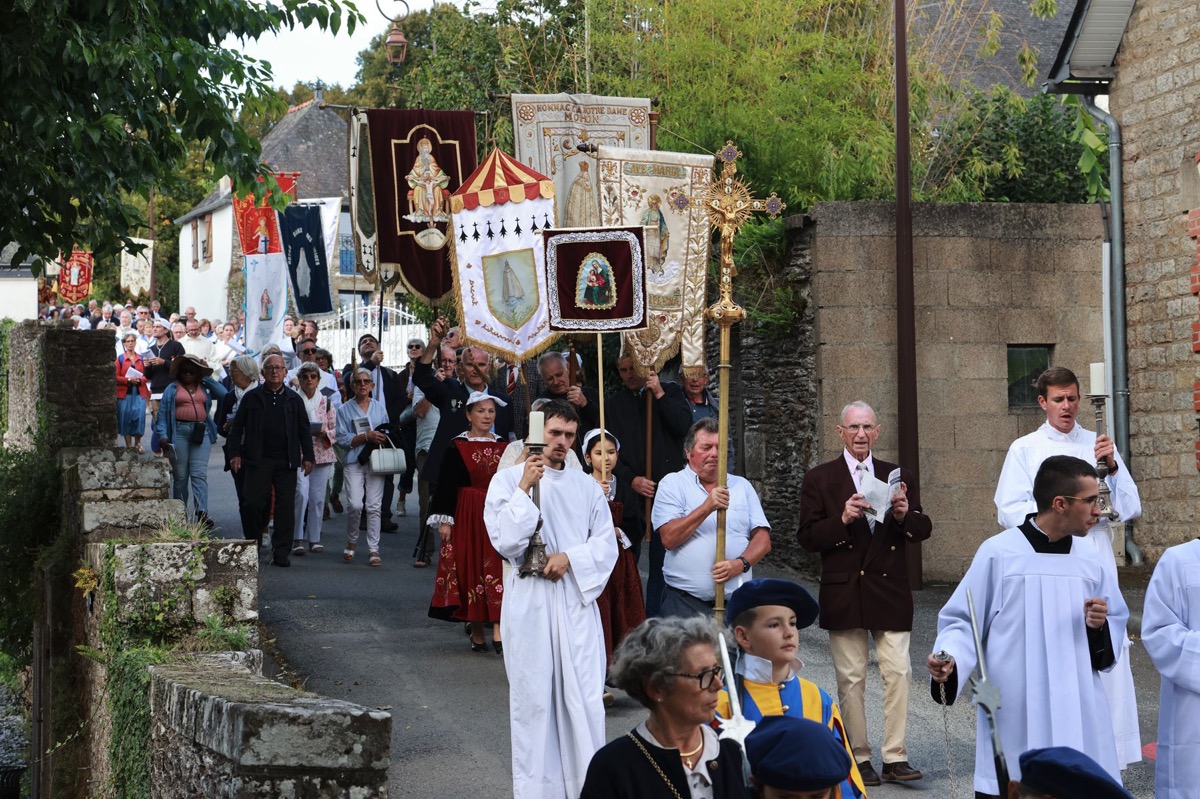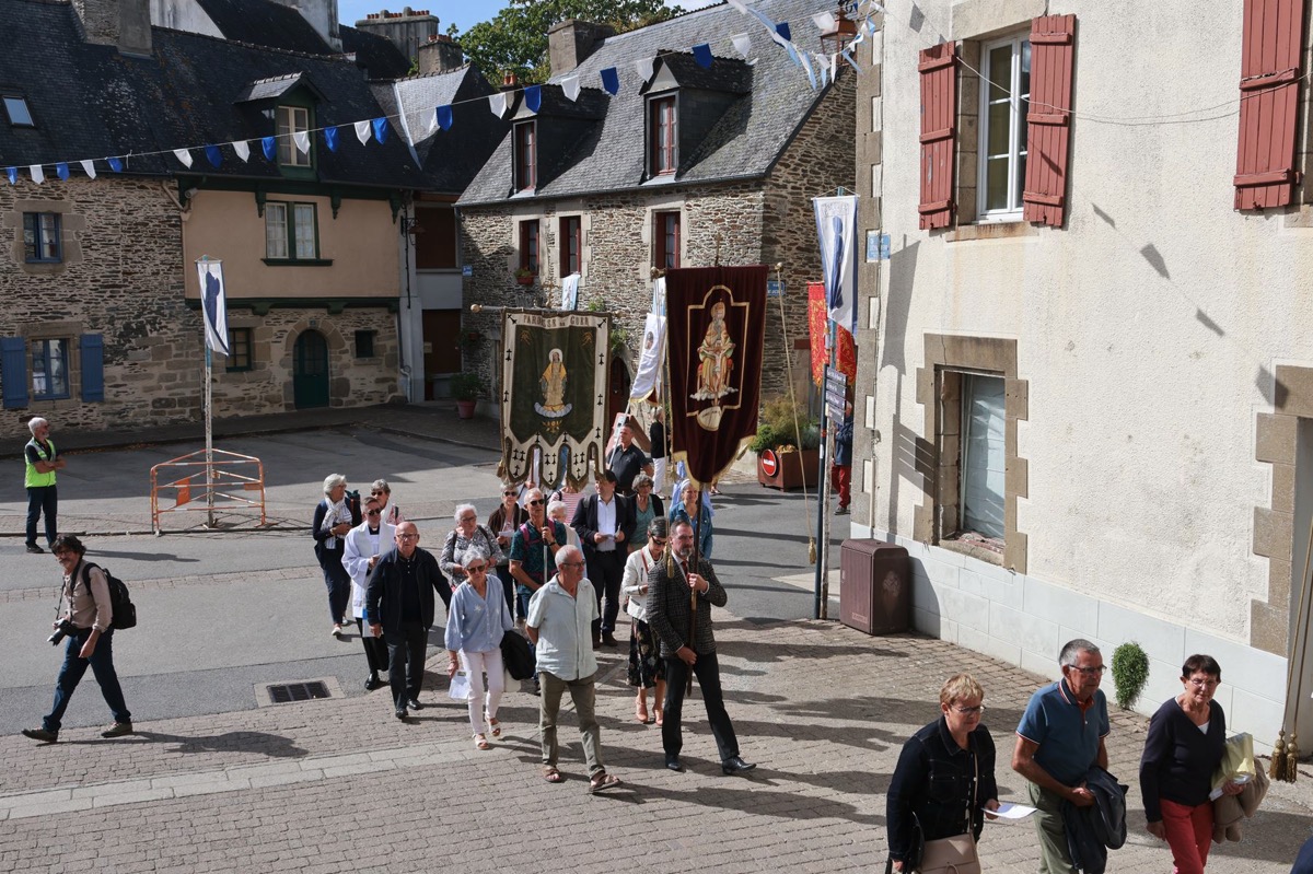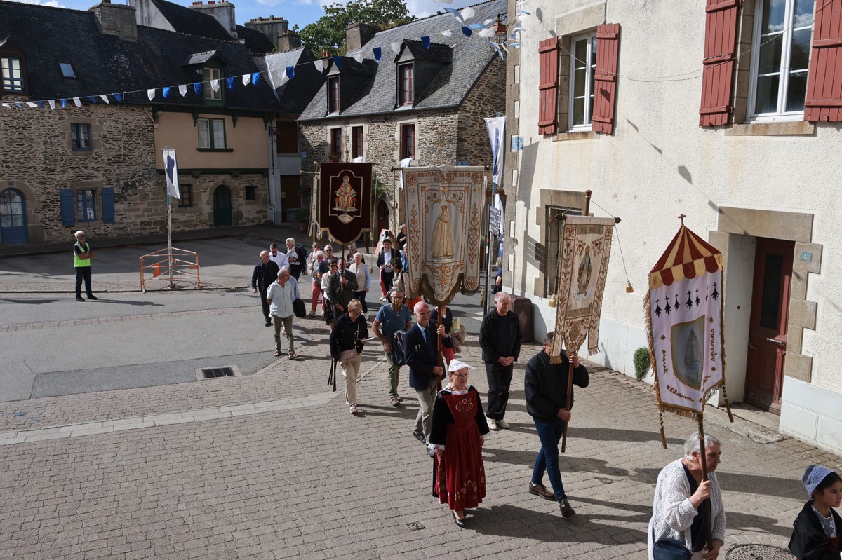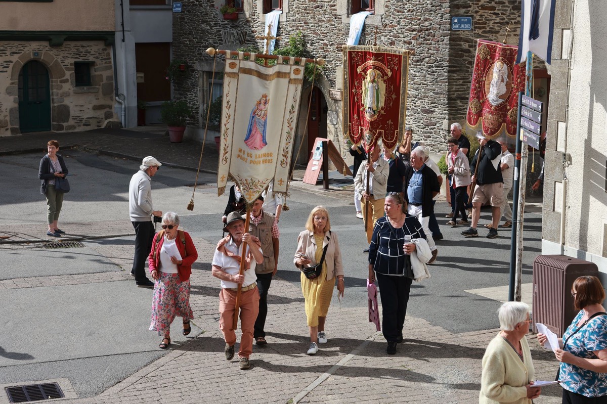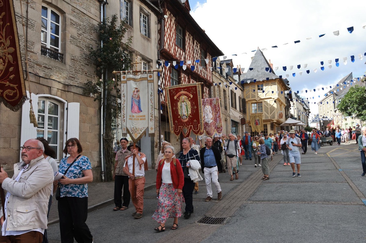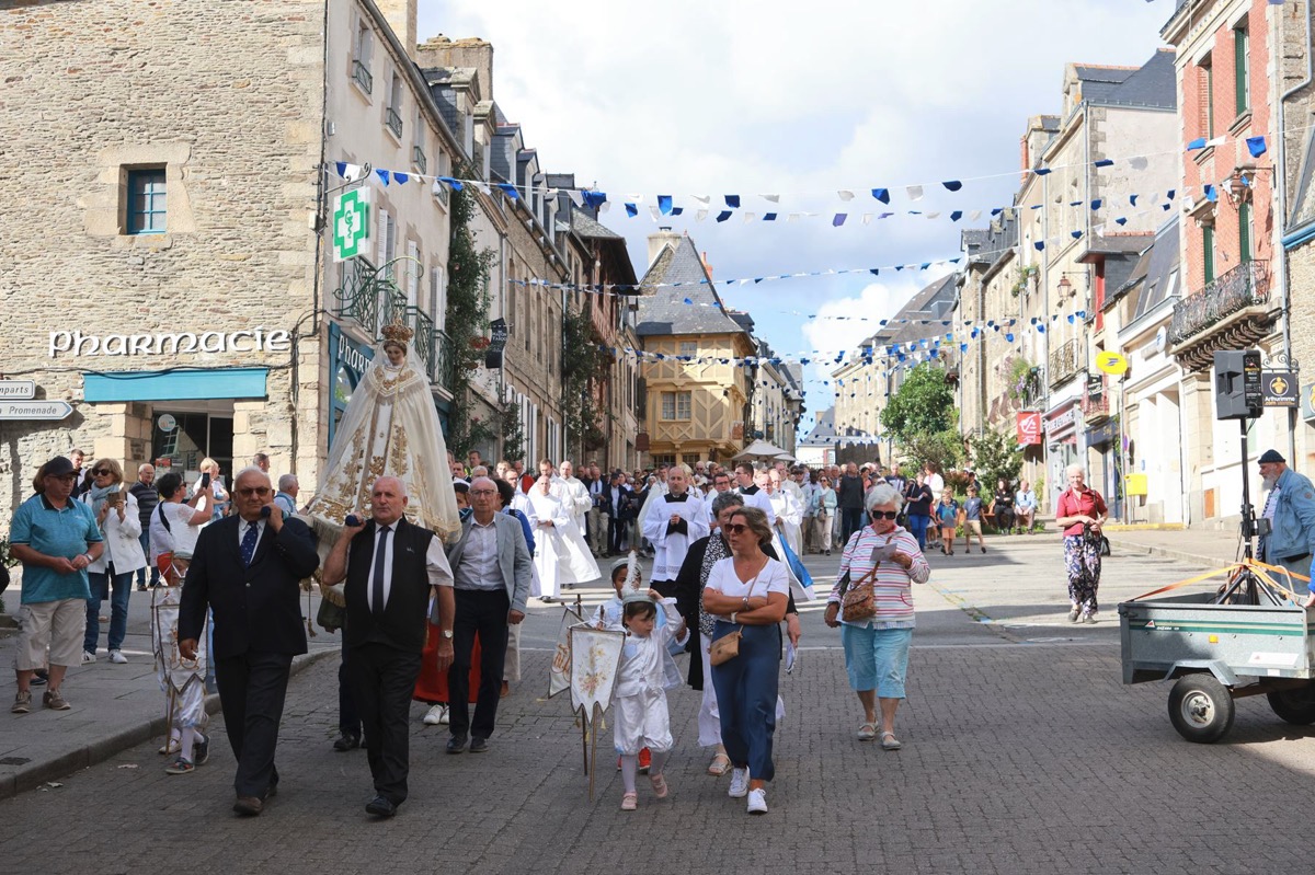 La cité millénaire de Josselin a été fortement visité dimanche et lundi avec le rendez-vous du Grand Pardon de Notre Dame du Roncier. C’était la 1217 ème édition de ce rendez-vous très enraciné dans le cœur des paroisses du Pays de Ploërmel et jusqu’à celles de Saint Anne d’Auray. Lundi matin la foule est venue nombreuse pour la messe de 11 h place Saint Martin. Une cérémonie présidée par l’évêque de Vannes, Raymond Centène, et animée par l’ancien recteur de Saint-Anne d’Auray, le père André Guillevic. De nombreux fidèles ont aussi participé aux cérémonies de Chapelet et Vêpres de l’après-midi avant la procession de retour,de la statue au cœur de la basilique avec sa messe de clôture. Ce pélerinage repose sur la légende qui veut qu’en 808, un paysan découvre une statue de la Vierge Marie dans un buisson de ronces. Il emporte cette statue chez lui mais la retrouve le lendemain dans le buisson. Un phénomène qui se reproduit à plusieurs reprises. Le paysan construit à cet endroit un oratoire en ronces où il place la statue. C’est là que son enfant aveugle retrouve la vue. Ce sera le début du culte de Notre Dame du Roncier. Et c’est à cet endroit que sera bâtie la basilique que l’on connait aujourd’hui.