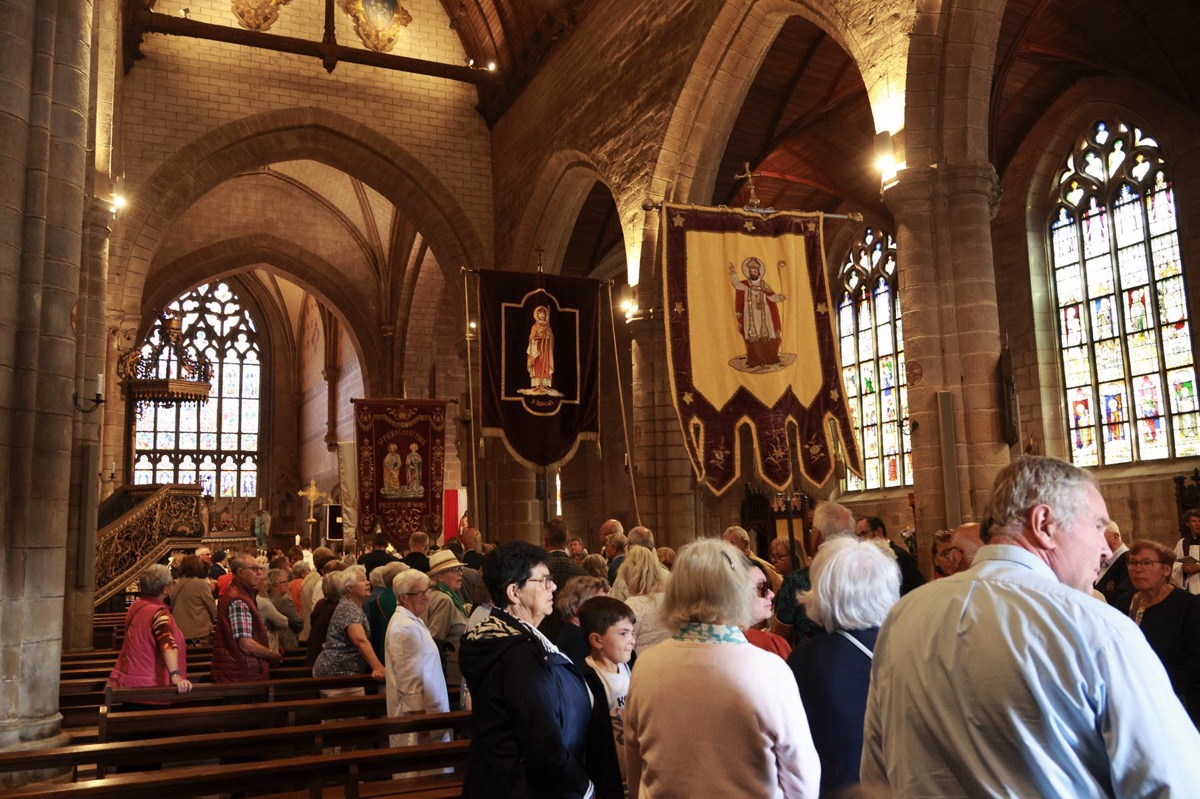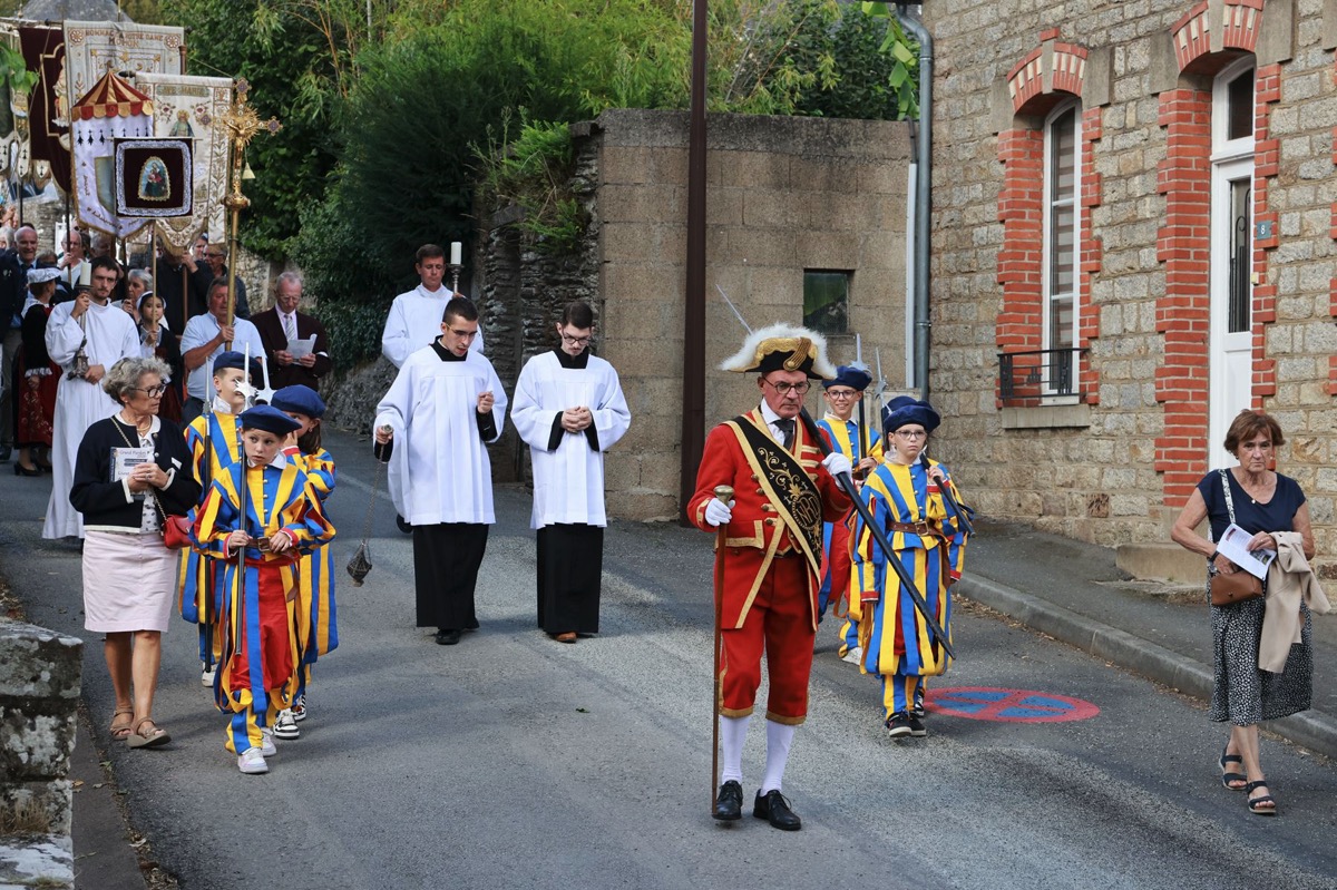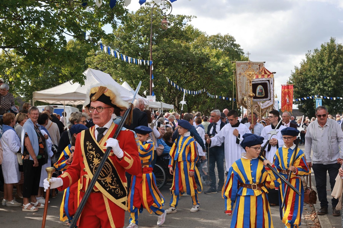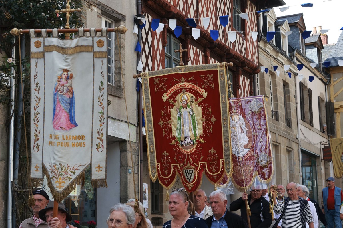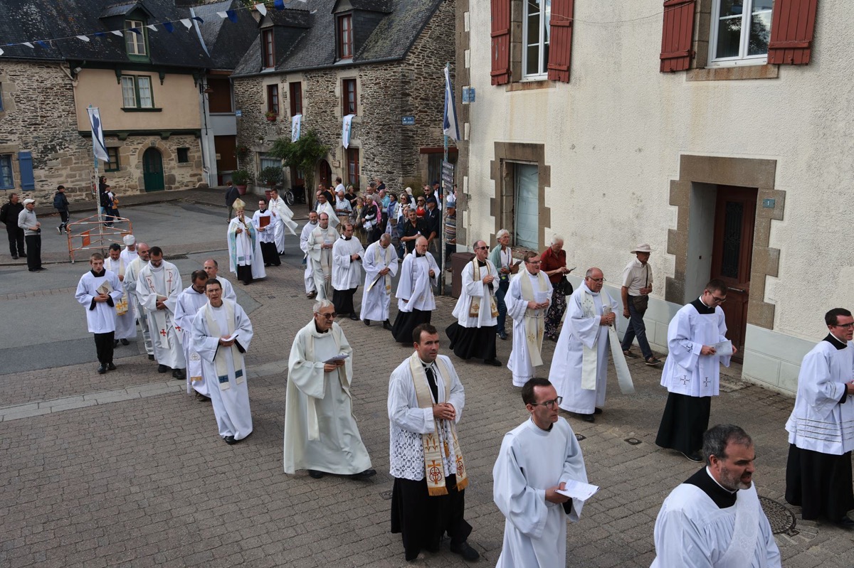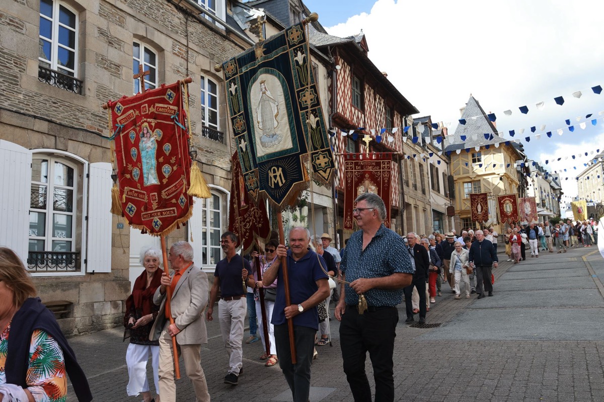La cité millénaire de Josselin a été fortement visité dimanche et lundi avec le rendez-vous du Grand Pardon de Notre Dame du Roncier. C’était la 1217 ème édition de ce rendez-vous très enraciné dans le cœur des paroisses du Pays de Ploërmel et jusqu’à celles de Saint Anne d’Auray. Lundi matin la foule est venue nombreuse pour la messe de 11 h place Saint Martin. Une cérémonie présidée par l’évêque de Vannes, Raymond Centène, et animée par l’ancien recteur de Saint-Anne d’Auray, le père André Guillevic. De nombreux fidèles ont aussi participé aux cérémonies de Chapelet et Vêpres de l’après-midi avant la procession de retour,de la statue au cœur de la basilique avec sa messe de clôture. Ce pélerinage repose sur la légende qui veut qu’en 808, un paysan découvre une statue de la Vierge Marie dans un buisson de ronces. Il emporte cette statue chez lui mais la retrouve le lendemain dans le buisson. Un phénomène qui se reproduit à plusieurs reprises. Le paysan construit à cet endroit un oratoire en ronces où il place la statue. C’est là que son enfant aveugle retrouve la vue. Ce sera le début du culte de Notre Dame du Roncier. Et c’est à cet endroit que sera bâtie la basilique que l’on connait aujourd’hui.