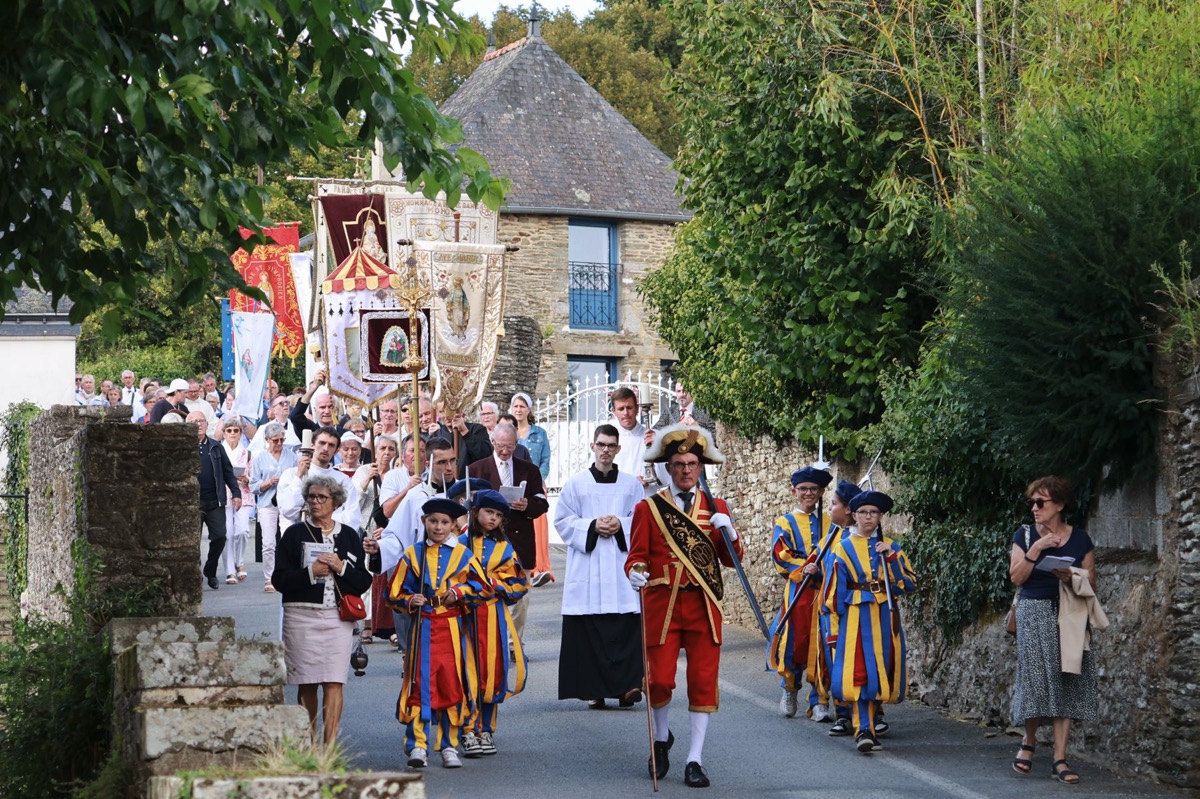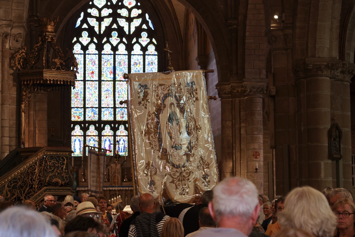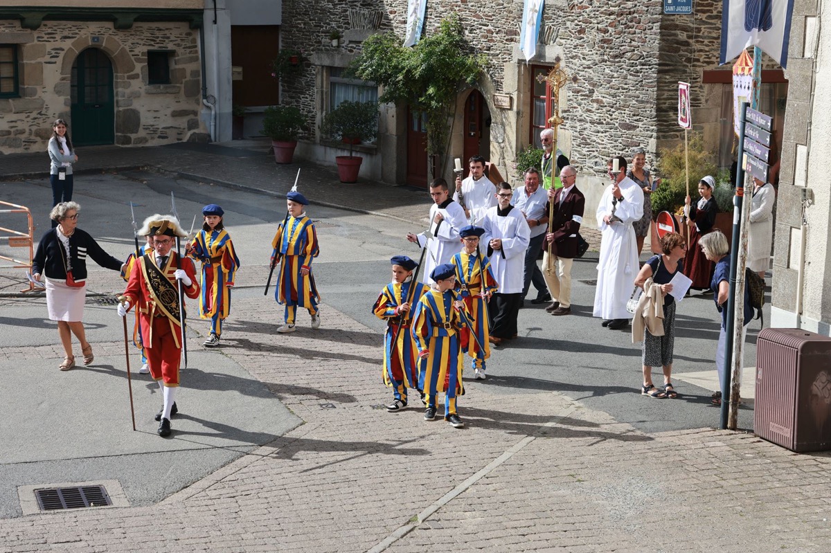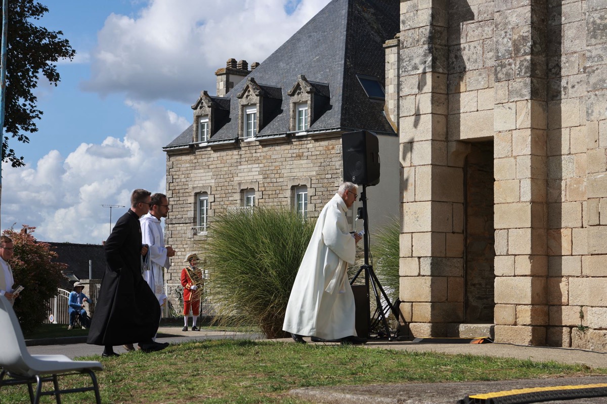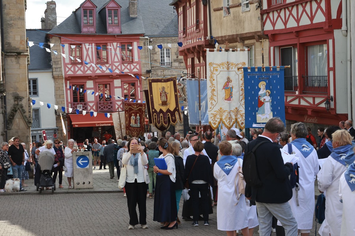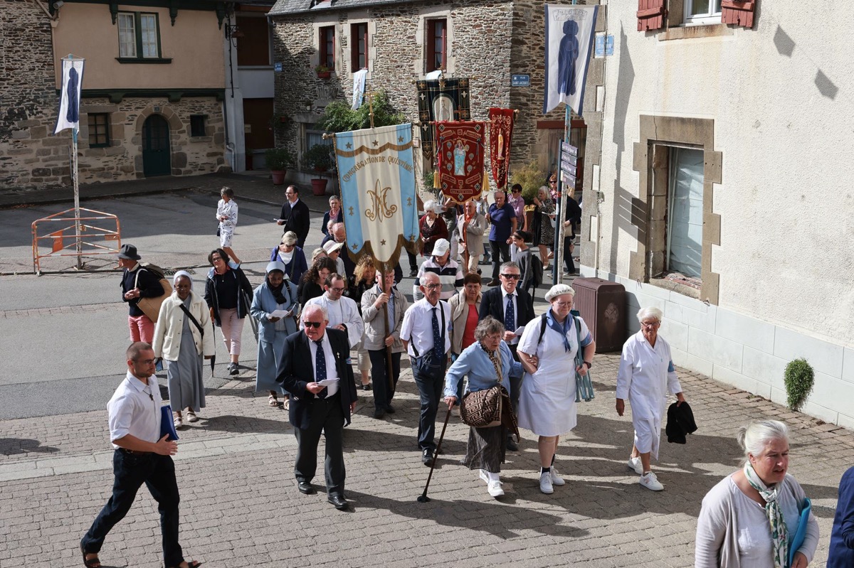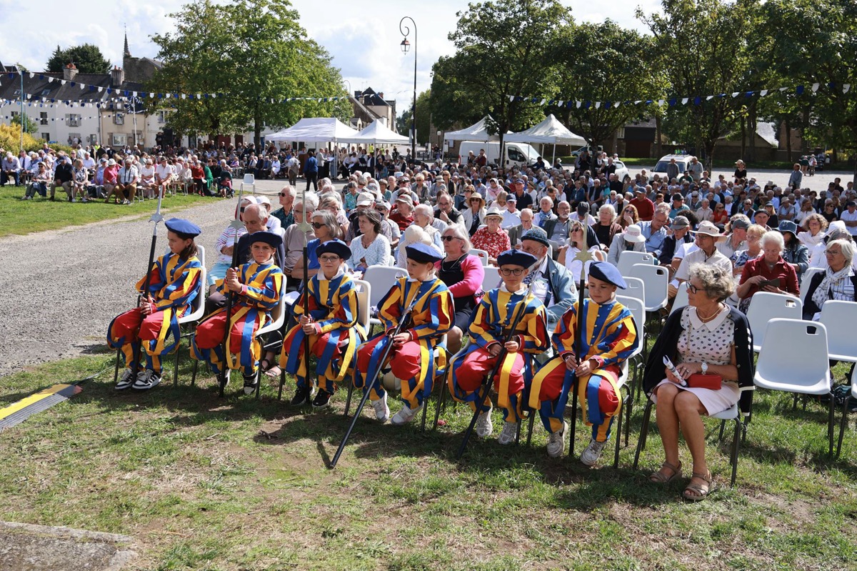 La cité millénaire de Josselin a été fortement visité dimanche et lundi avec le rendez-vous du Grand Pardon de Notre Dame du Roncier. C’était la 1217 ème édition de ce rendez-vous très enraciné dans le cœur des paroisses du Pays de Ploërmel et jusqu’à celles de Saint Anne d’Auray. Lundi matin la foule est venue nombreuse pour la messe de 11 h place Saint Martin. Une cérémonie présidée par l’évêque de Vannes, Raymond Centène, et animée par l’ancien recteur de Saint-Anne d’Auray, le père André Guillevic. De nombreux fidèles ont aussi participé aux cérémonies de Chapelet et Vêpres de l’après-midi avant la procession de retour,de la statue au cœur de la basilique avec sa messe de clôture. Ce pélerinage repose sur la légende qui veut qu’en 808, un paysan découvre une statue de la Vierge Marie dans un buisson de ronces. Il emporte cette statue chez lui mais la retrouve le lendemain dans le buisson. Un phénomène qui se reproduit à plusieurs reprises. Le paysan construit à cet endroit un oratoire en ronces où il place la statue. C’est là que son enfant aveugle retrouve la vue. Ce sera le début du culte de Notre Dame du Roncier. Et c’est à cet endroit que sera bâtie la basilique que l’on connait aujourd’hui.