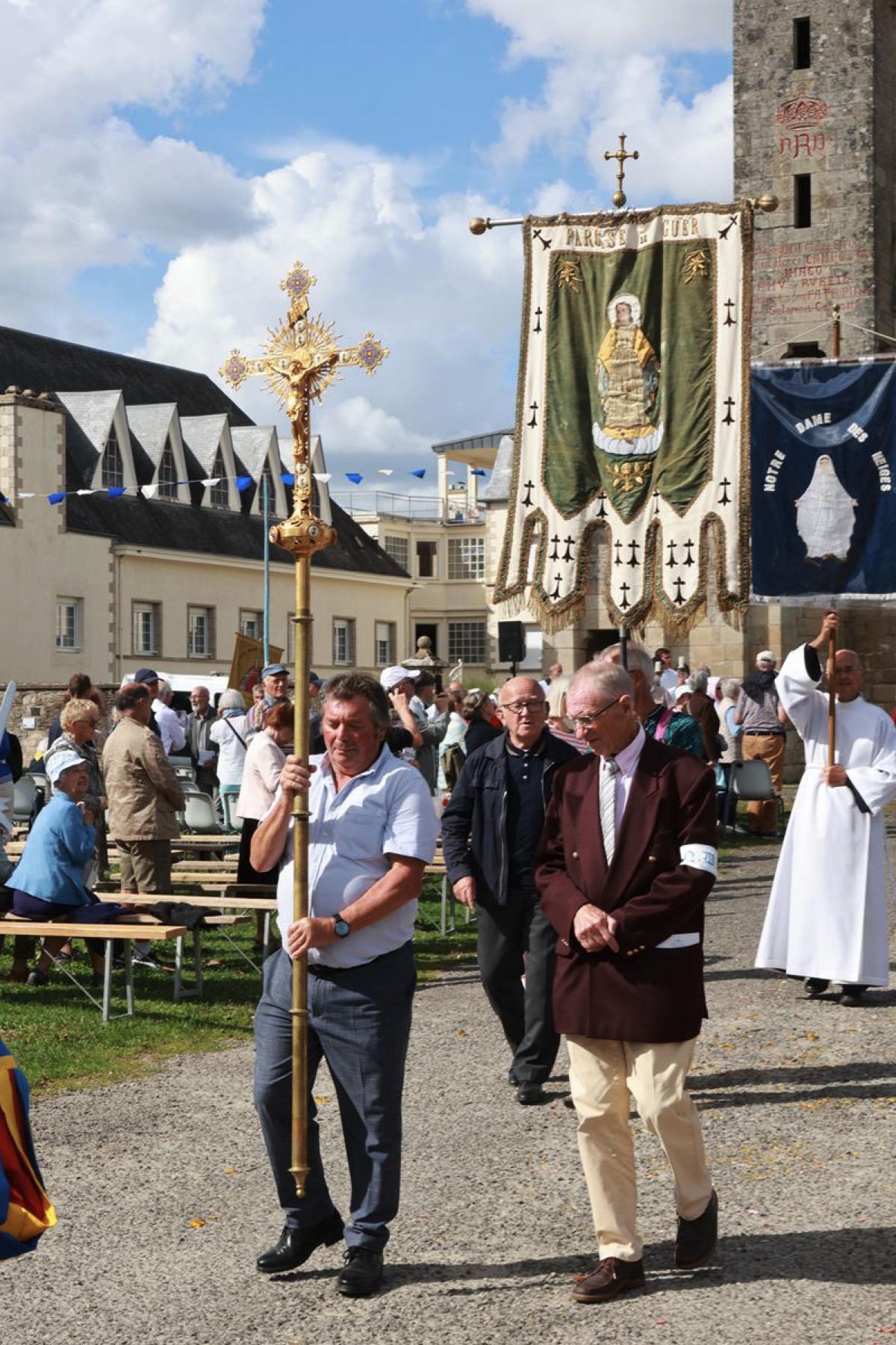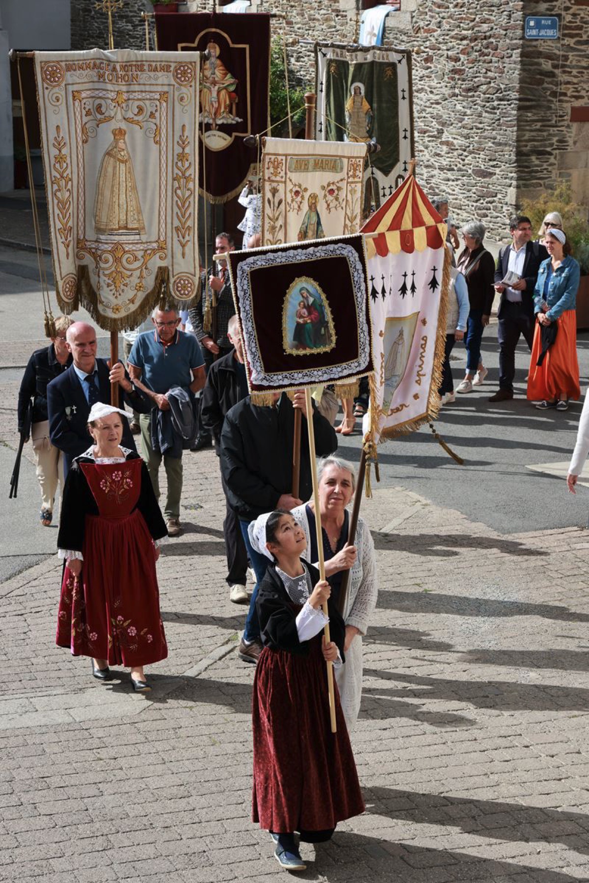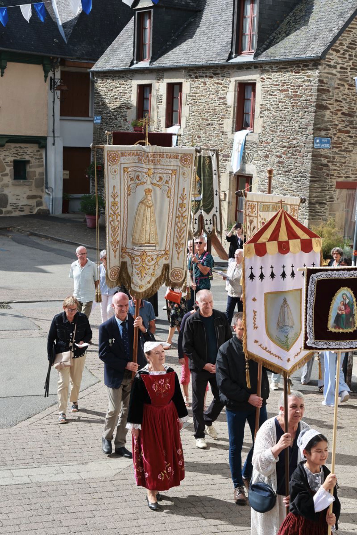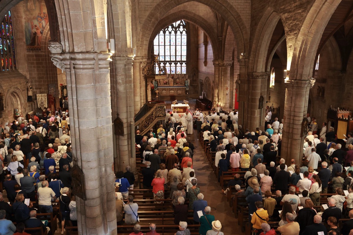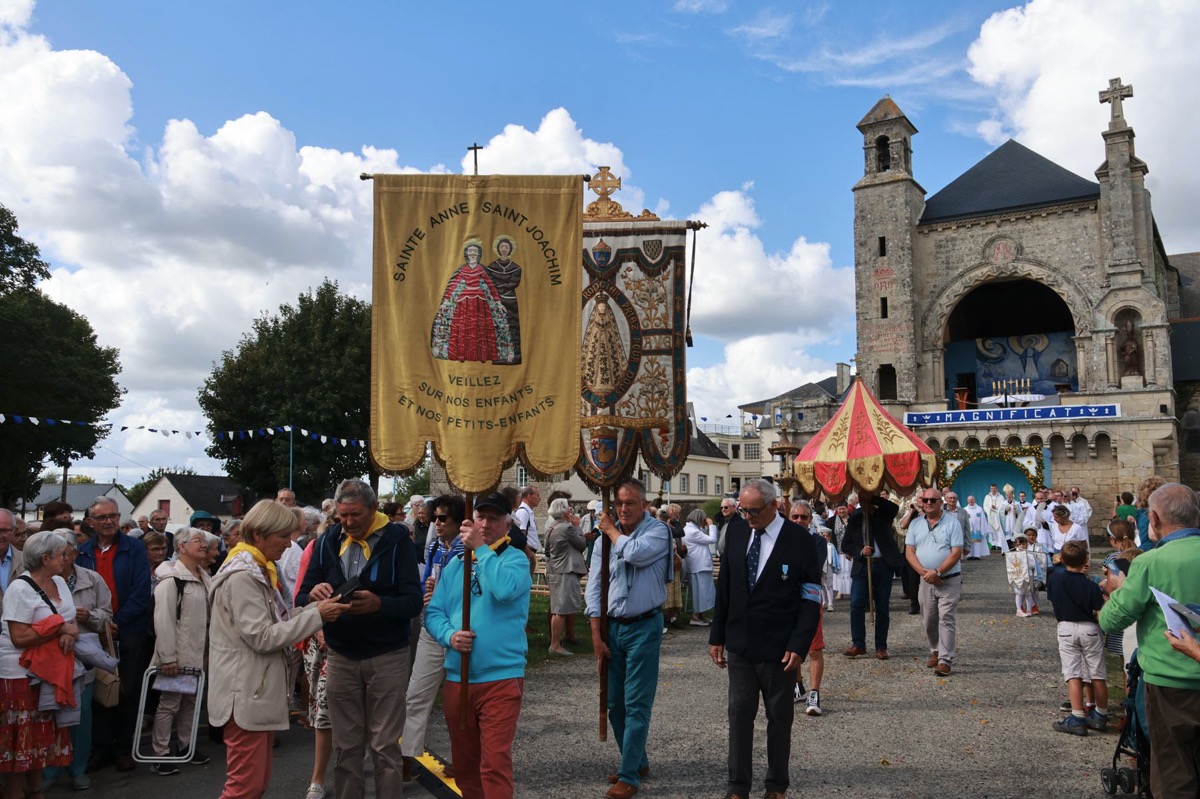 La cité millénaire de Josselin a été fortement visité dimanche et lundi avec le rendez-vous du Grand Pardon de Notre Dame du Roncier. C’était la 1217 ème édition de ce rendez-vous très enraciné dans le cœur des paroisses du Pays de Ploërmel et jusqu’à celles de Saint Anne d’Auray. Lundi matin la foule est venue nombreuse pour la messe de 11 h place Saint Martin. Une cérémonie présidée par l’évêque de Vannes, Raymond Centène, et animée par l’ancien recteur de Saint-Anne d’Auray, le père André Guillevic. De nombreux fidèles ont aussi participé aux cérémonies de Chapelet et Vêpres de l’après-midi avant la procession de retour,de la statue au cœur de la basilique avec sa messe de clôture. Ce pélerinage repose sur la légende qui veut qu’en 808, un paysan découvre une statue de la Vierge Marie dans un buisson de ronces. Il emporte cette statue chez lui mais la retrouve le lendemain dans le buisson. Un phénomène qui se reproduit à plusieurs reprises. Le paysan construit à cet endroit un oratoire en ronces où il place la statue. C’est là que son enfant aveugle retrouve la vue. Ce sera le début du culte de Notre Dame du Roncier. Et c’est à cet endroit que sera bâtie la basilique que l’on connait aujourd’hui.