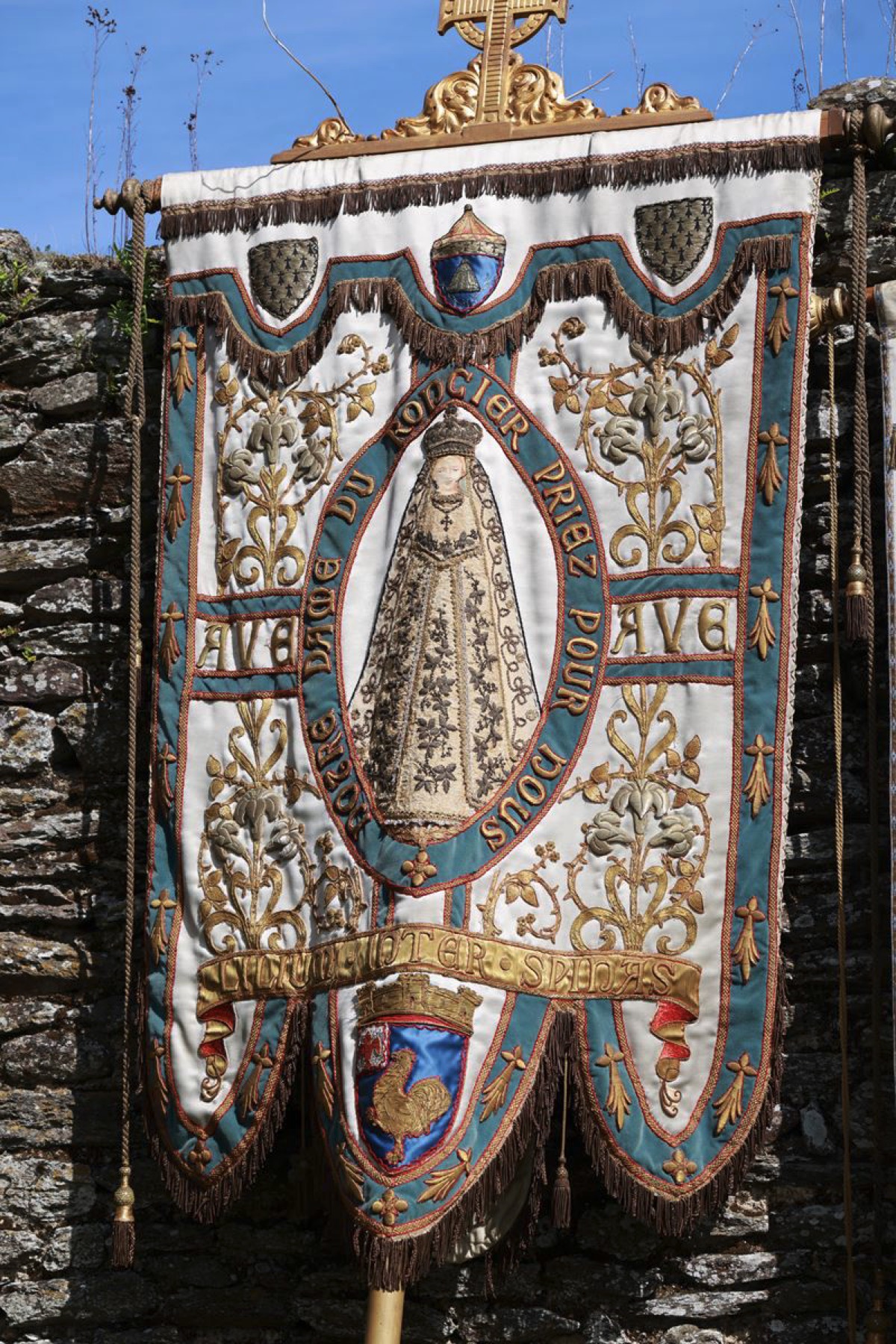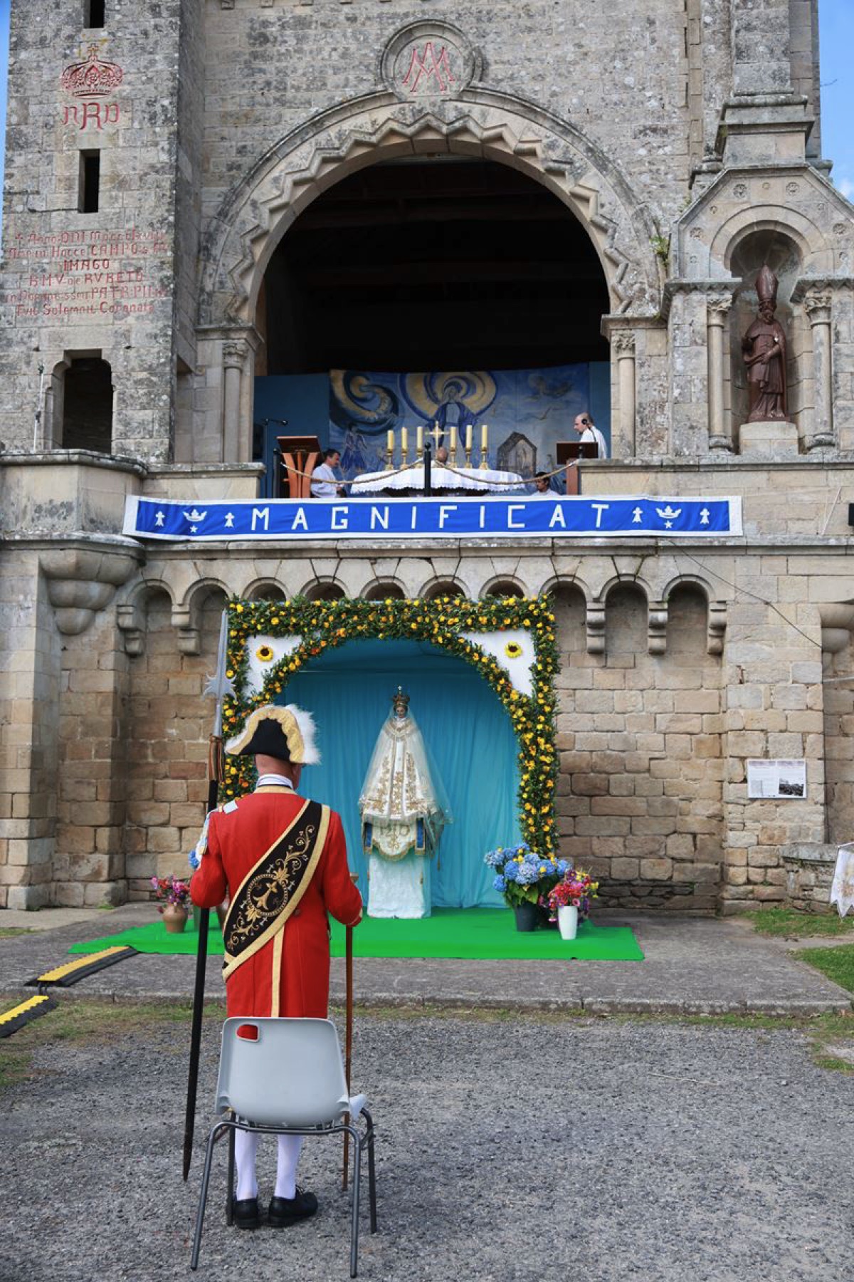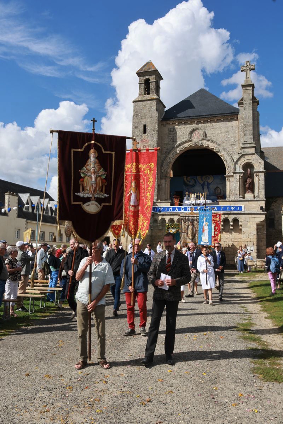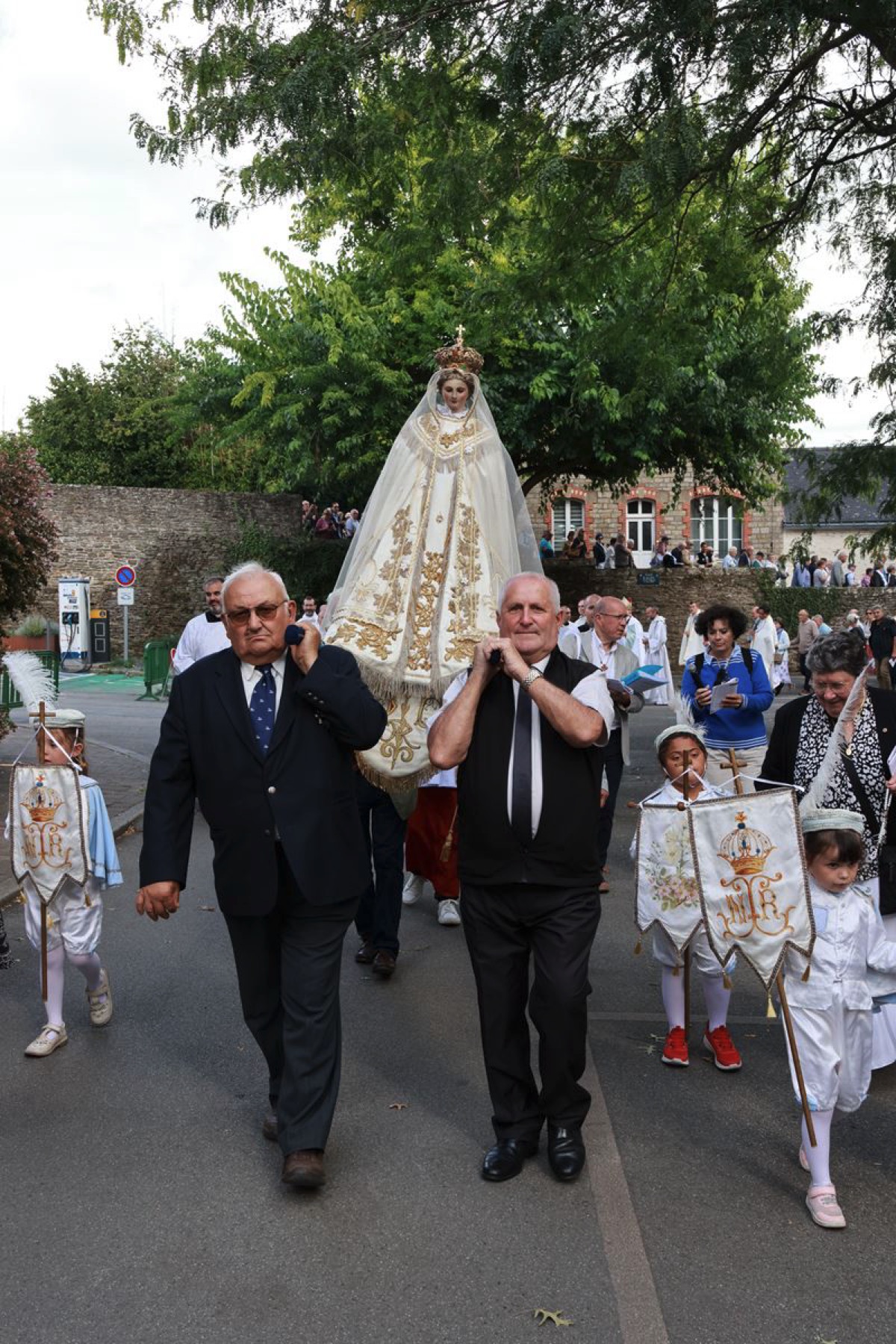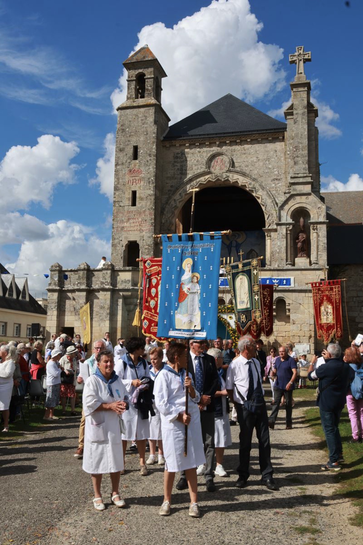 La cité millénaire de Josselin a été fortement visité dimanche et lundi avec le rendez-vous du Grand Pardon de Notre Dame du Roncier. C’était la 1217 ème édition de ce rendez-vous très enraciné dans le cœur des paroisses du Pays de Ploërmel et jusqu’à celles de Saint Anne d’Auray. Lundi matin la foule est venue nombreuse pour la messe de 11 h place Saint Martin. Une cérémonie présidée par l’évêque de Vannes, Raymond Centène, et animée par l’ancien recteur de Saint-Anne d’Auray, le père André Guillevic. De nombreux fidèles ont aussi participé aux cérémonies de Chapelet et Vêpres de l’après-midi avant la procession de retour,de la statue au cœur de la basilique avec sa messe de clôture. Ce pélerinage repose sur la légende qui veut qu’en 808, un paysan découvre une statue de la Vierge Marie dans un buisson de ronces. Il emporte cette statue chez lui mais la retrouve le lendemain dans le buisson. Un phénomène qui se reproduit à plusieurs reprises. Le paysan construit à cet endroit un oratoire en ronces où il place la statue. C’est là que son enfant aveugle retrouve la vue. Ce sera le début du culte de Notre Dame du Roncier. Et c’est à cet endroit que sera bâtie la basilique que l’on connait aujourd’hui.