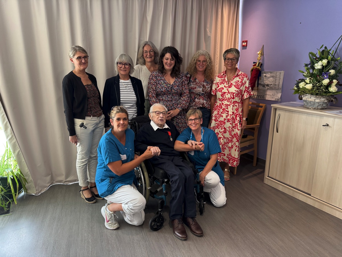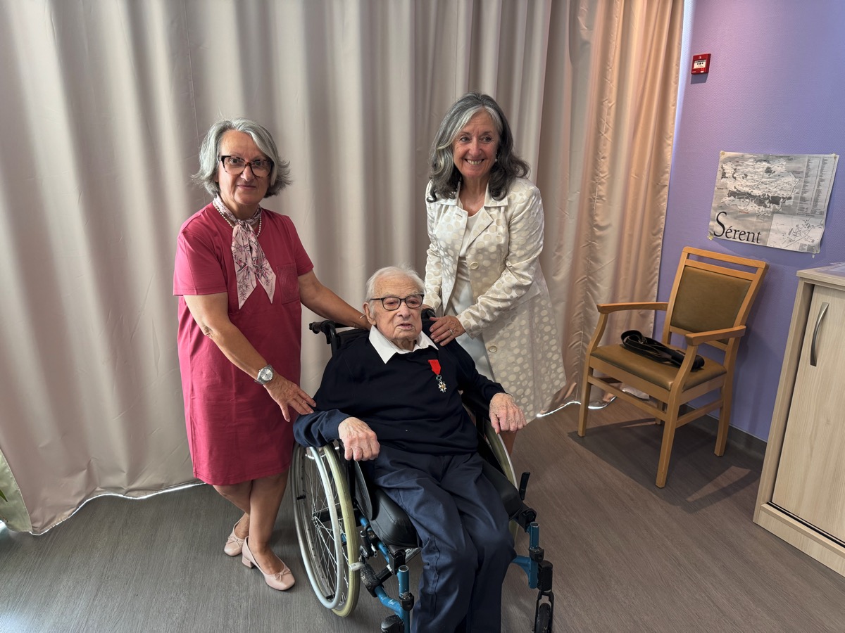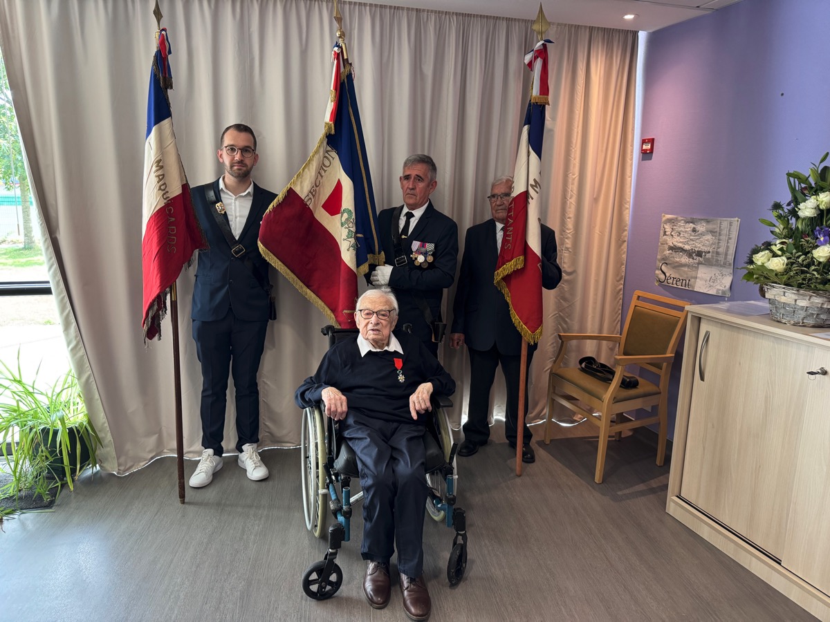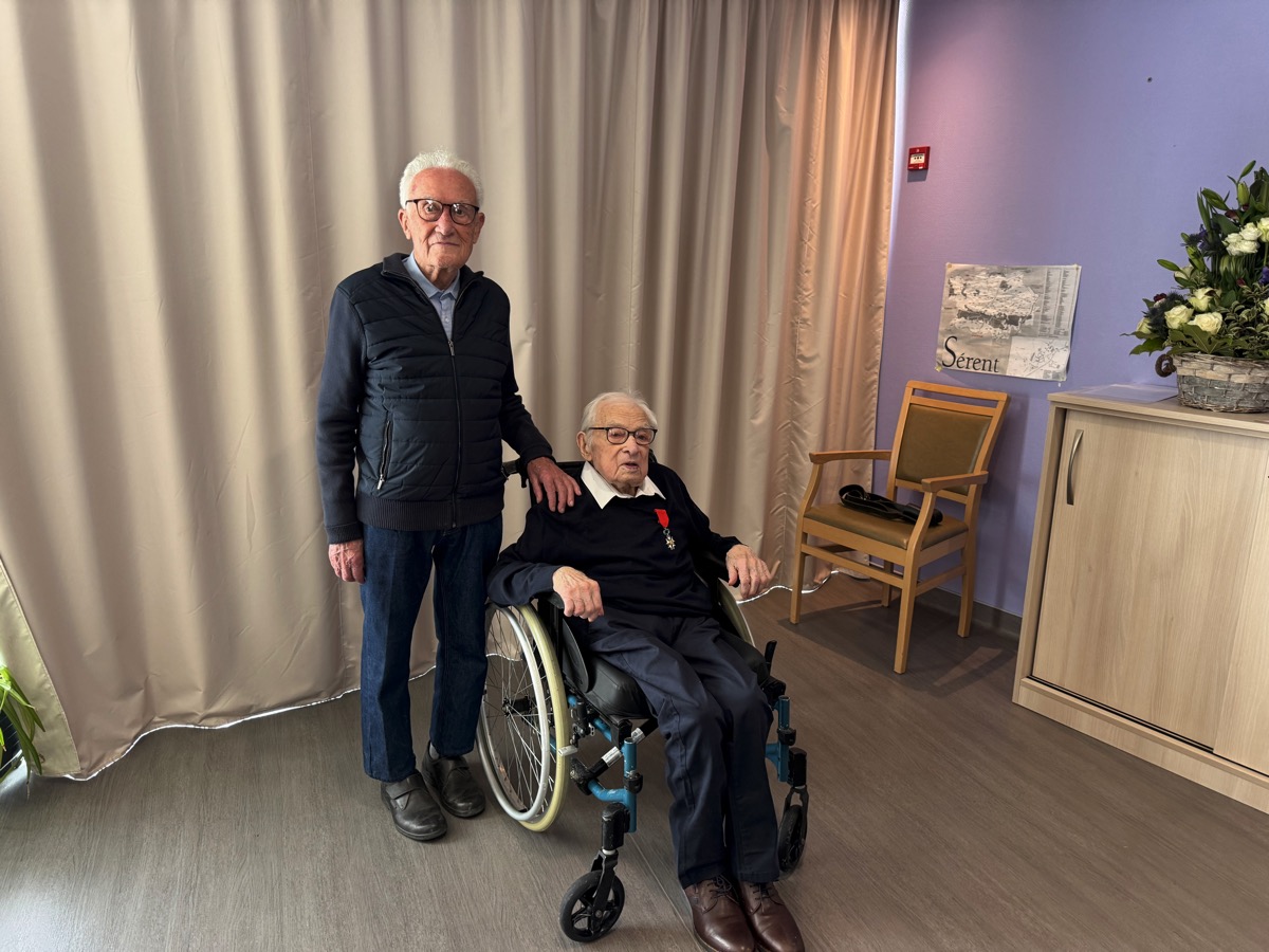 Beaucoup d’émotion ce lundi matin dans la salle de l’EHPAD de Sérent, où réside désormais Marcel Trégaro. À 102 ans, cet ancien résistant a reçu les insignes de Chevalier de la Légion d’honneur, la plus haute distinction française, au nom du Président de la République. La cérémonie s’est déroulée à l’EHPAD de Sérent où est hébergé Marcel Trégaro, en présence de sa famille, de la maire de Sérent, Rozenn Guégan, du député Paul Molac, du Général Philippe Prévost, président de la section des membres de la Légion d’Honneur du Morbihan, du Général Daniel Brûlé, commandeur de la Légion d’honneur et président de l’ordre national du mérite, Anne Geslin, directrice de l’office national des anciens combattants du Morbihan. Marcel Trégaro fait partie des deux centenaires du Morbihan -le 2è est à Lorient- fait chevalier de la légion d’Honneur lors de la promotion du 4 juillet 2025 à l’occasion du 80è anniversaire de la fin de la seconde guerre mondiale.
