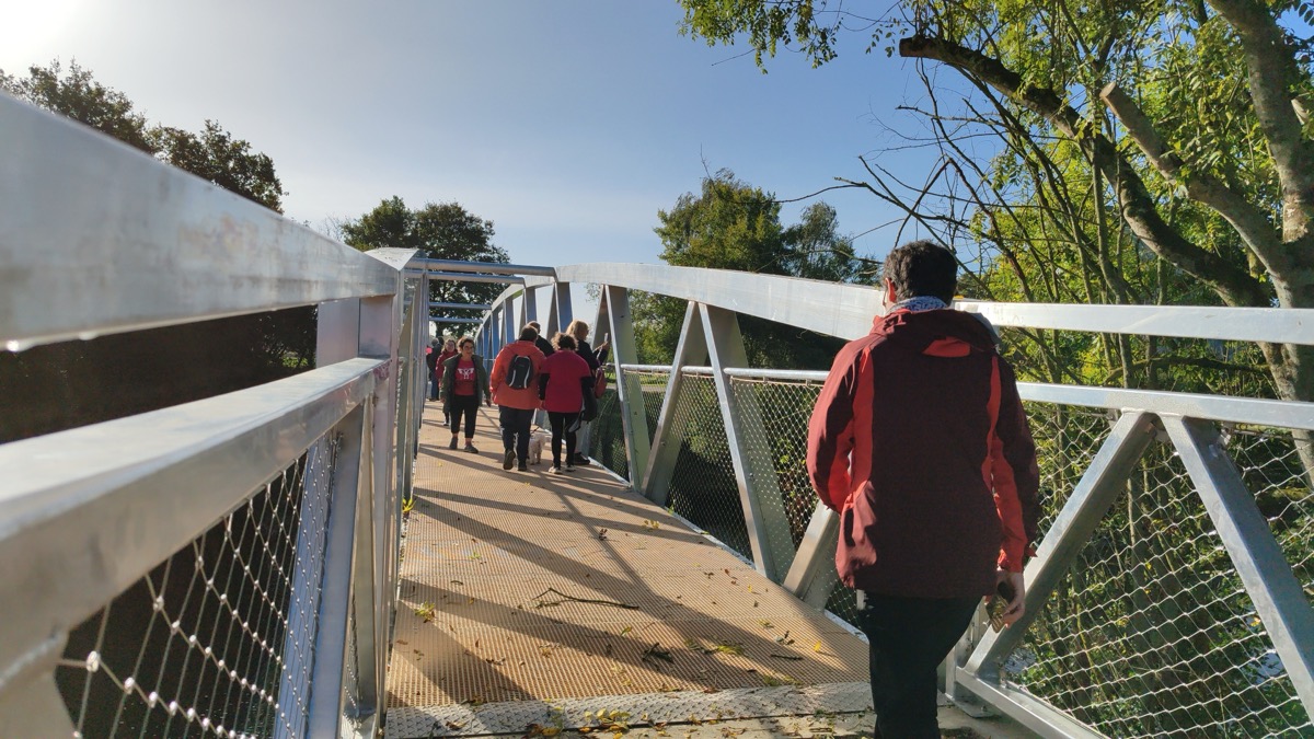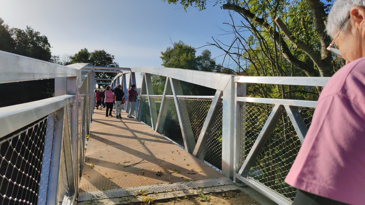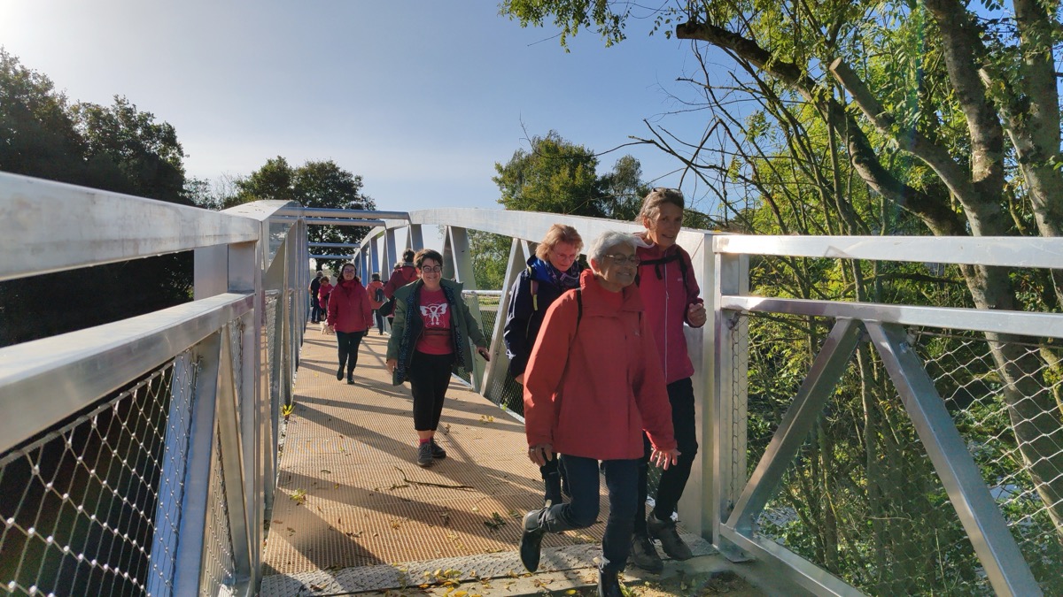 Après le coup de vent nocturne et très pluvieux, le ciel s’est dégagé pour permettre aux participant(e)s à la marche rose organisée par la municipalité de Saint-Abraham de prendre le départ sous le soleil pour un parcours inédit. Cette année, en effet, le groupe était invité à découvrir la passerelle de La Née, inaugurée il y a quelques jours et qui relie les communes de saint-Abraham et de Saint-Marcel. Le cortège s’est donc rendu jusqu’à la passerelle, a franchi l’Oust pour faire demi-tour et regagner le centre de Saint-Abraham. Une balade inédite et très appréciée qui s’est déroulée dans une ambiance familiale. Un détour par la passerelle qui a rallongé le parcours de près de 3 kilomètres, que les randonneurs ont avalé sans sourciller. Autre nouveauté de cette édition 2025, le départ et l’arrivée se sont déroulés non pas devant la mairie mais devant le bar Le Charleston, repris il y a quelques mois et qui a offert l’apéro-rose aux marcheurs(euses). Cette marche rose était organisée au profit de La Malestroyenne qui se déroulera le dimanche 25 octobre prochain.